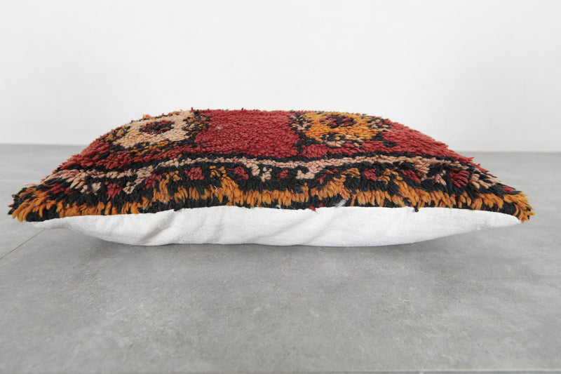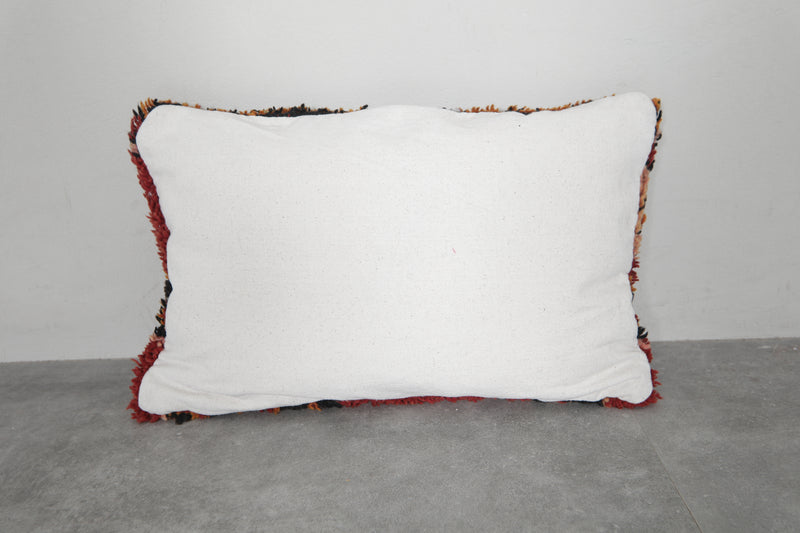 Add texture and warmth to your home with this handwoven Moroccan wool pillow. Featuring vibrant floral patterns in red, orange, and black tones, this shaggy design brings cozy charm and cultural flair to any space. Perfect for sofas, beds, or chairs, it’s both functional and decorative. Dimensions: 16.5 x 23.6 inches.