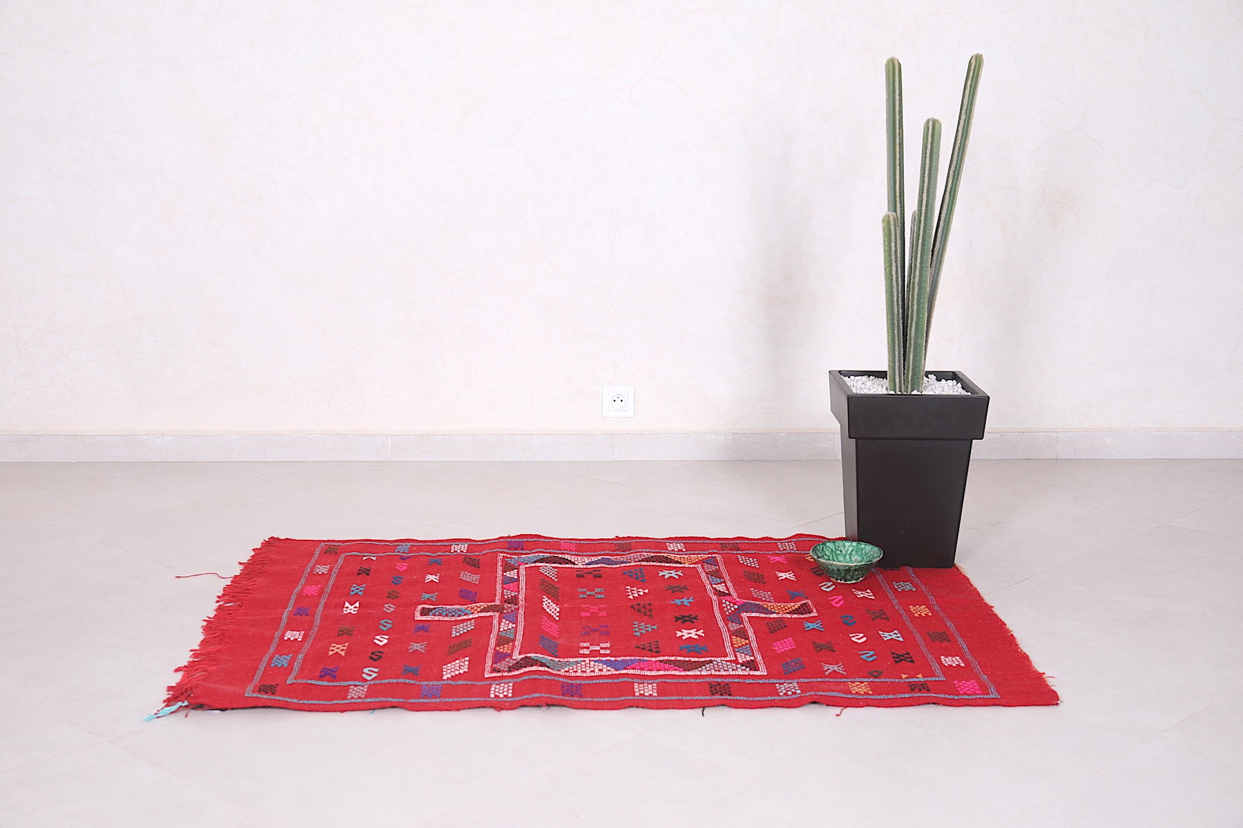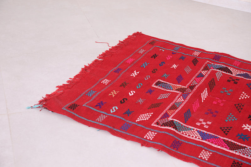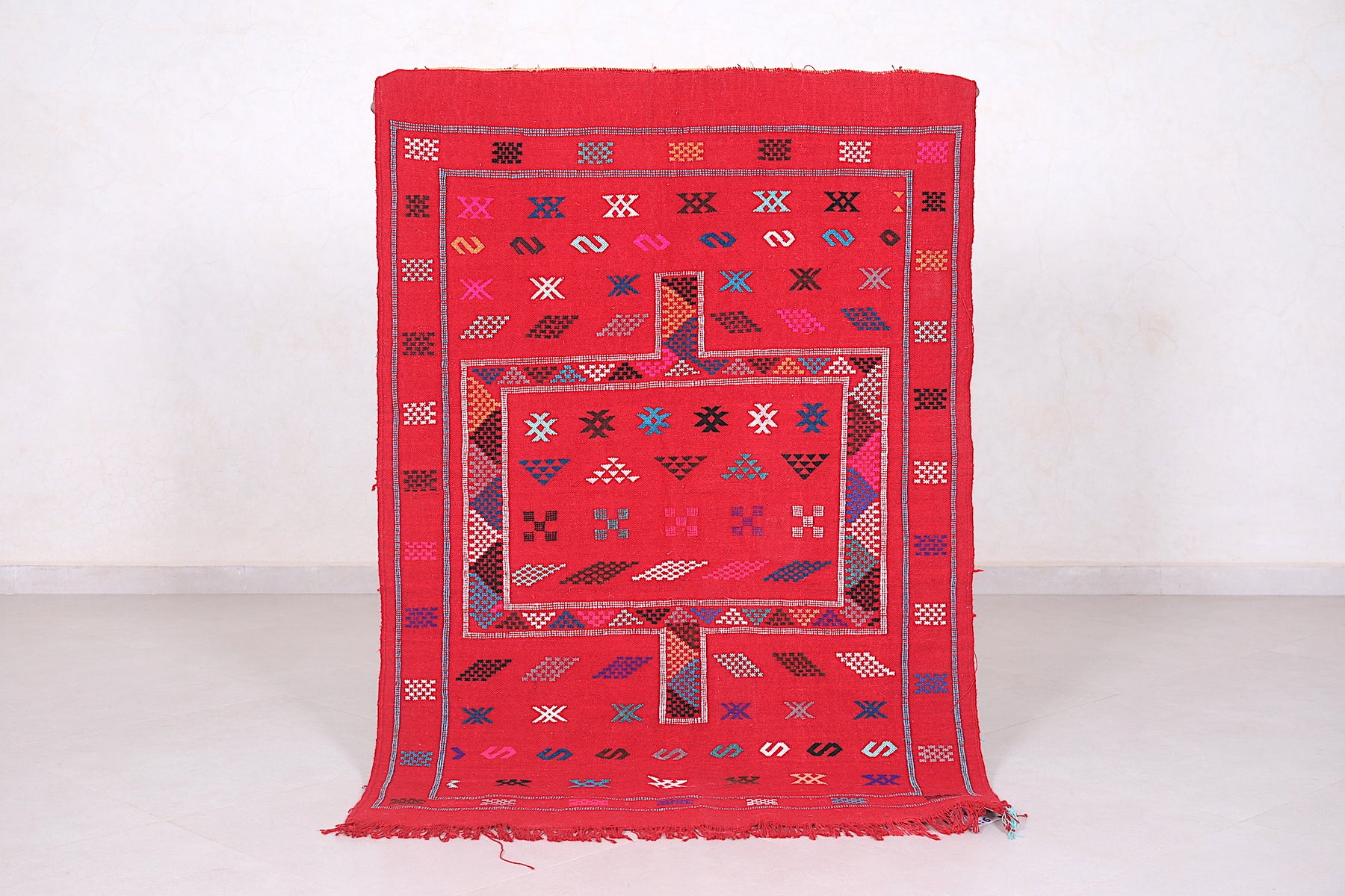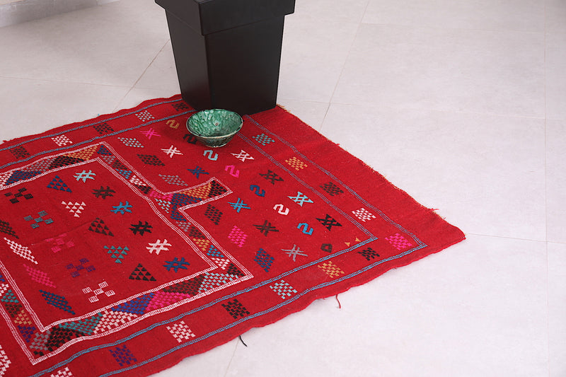 Handwoven Red Kilim Rug 3.4 FT x 4.8 FT - Vibrant Moroccan Decor