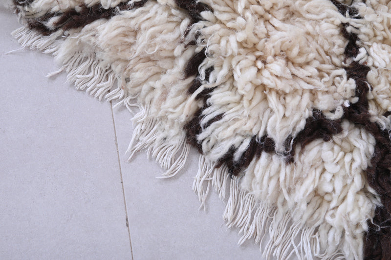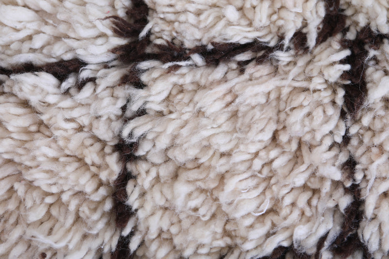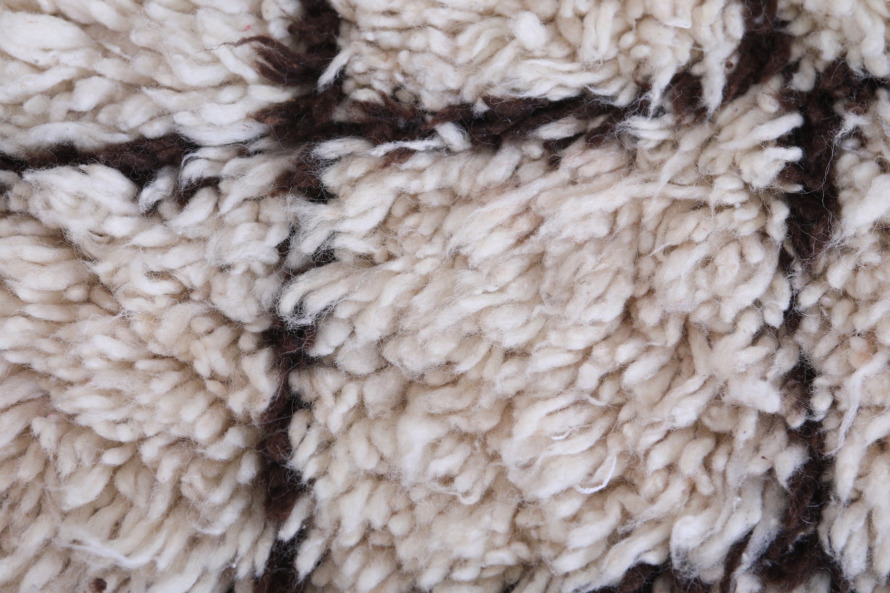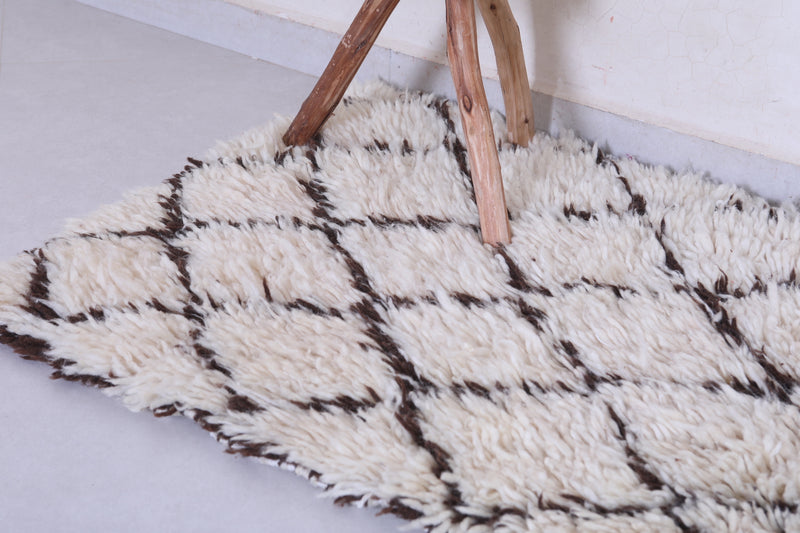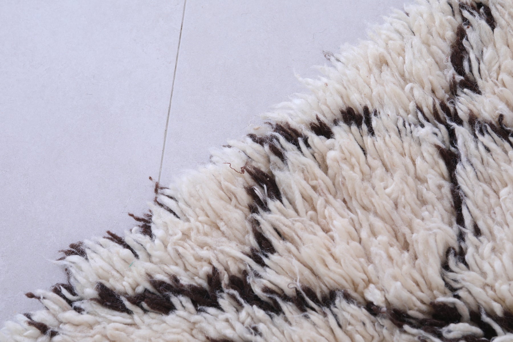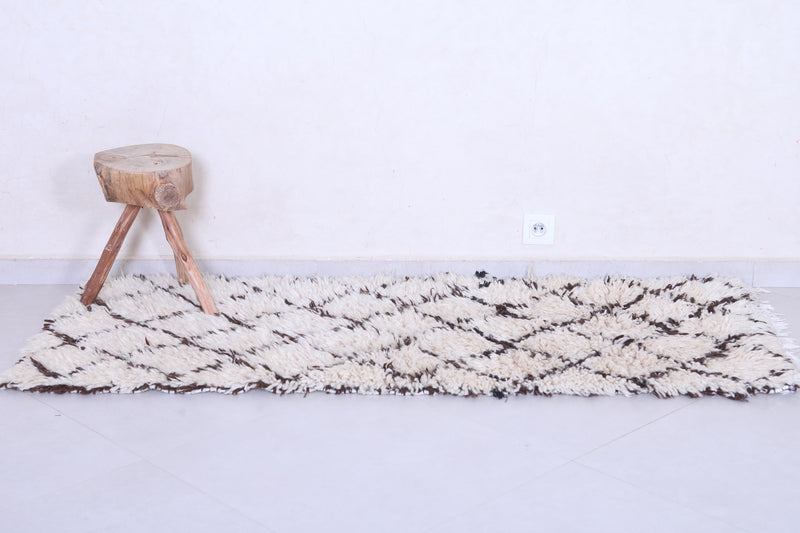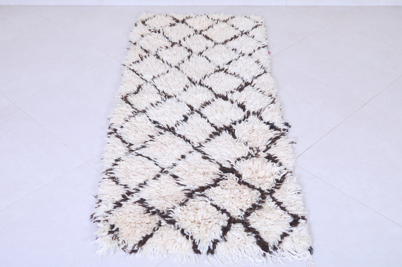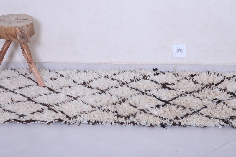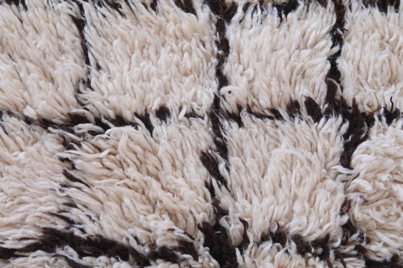 Upgrade your space with this Handwoven Vintage Moroccan Runner Rug, measuring 2.4 FT x 5.8 FT. Featuring a timeless black diamond lattice on an ivory base, this plush, high-pile rug blends traditional Berber craftsmanship with modern sophistication—ideal for entryways, narrow halls, or minimalist interiors.