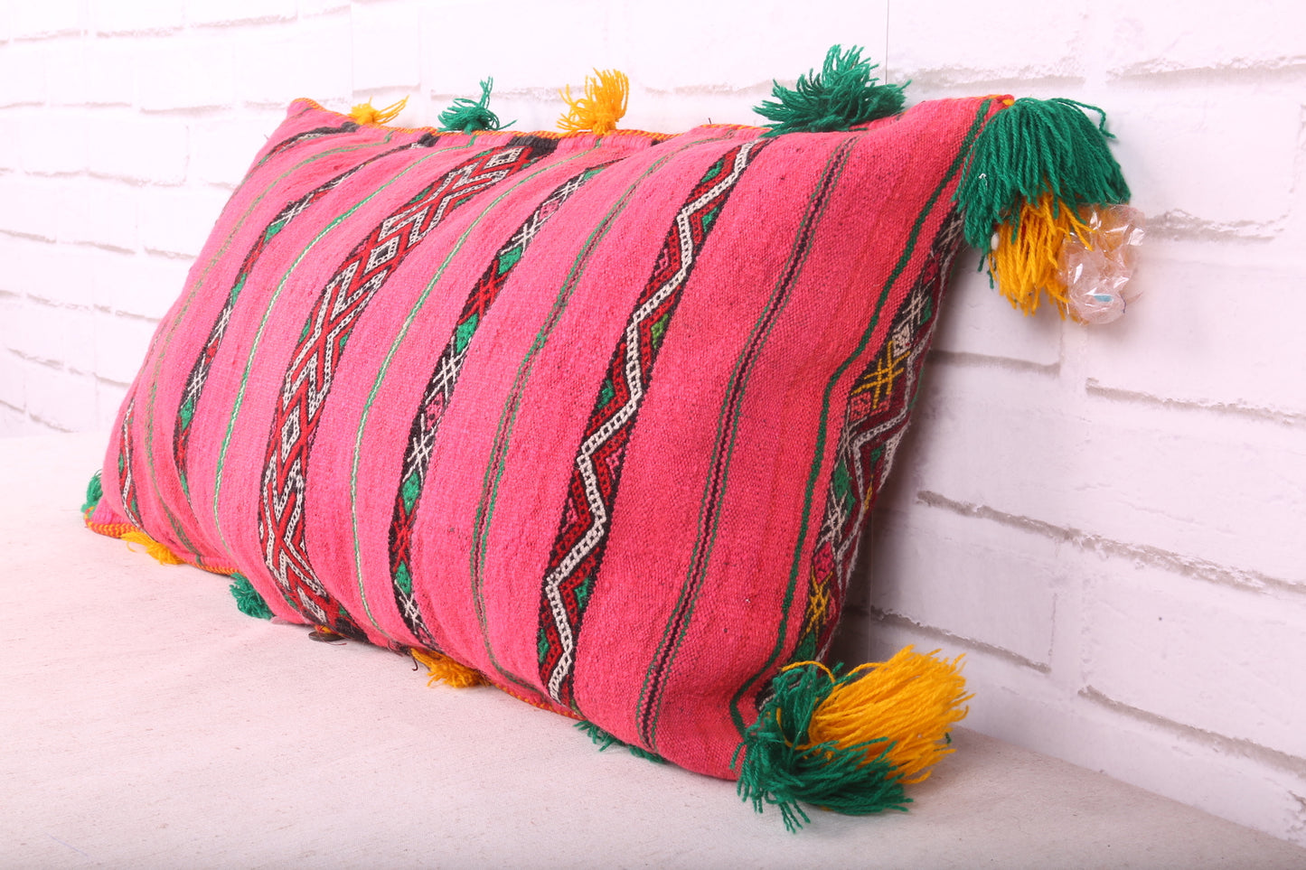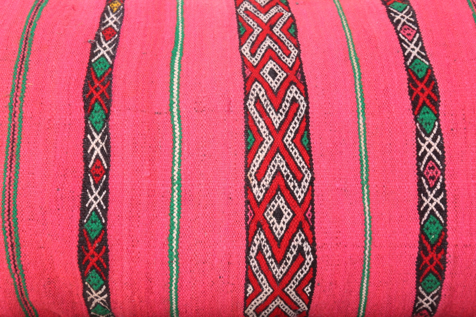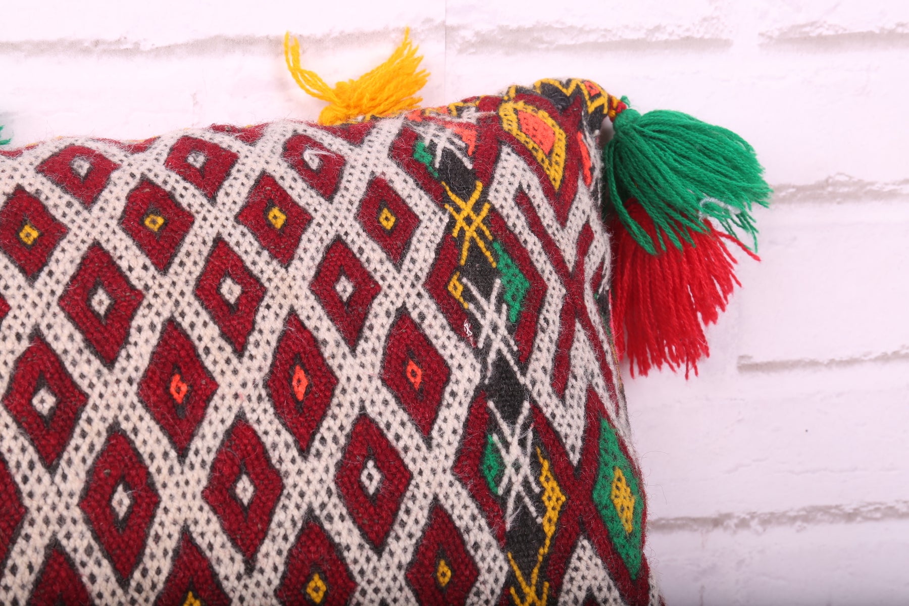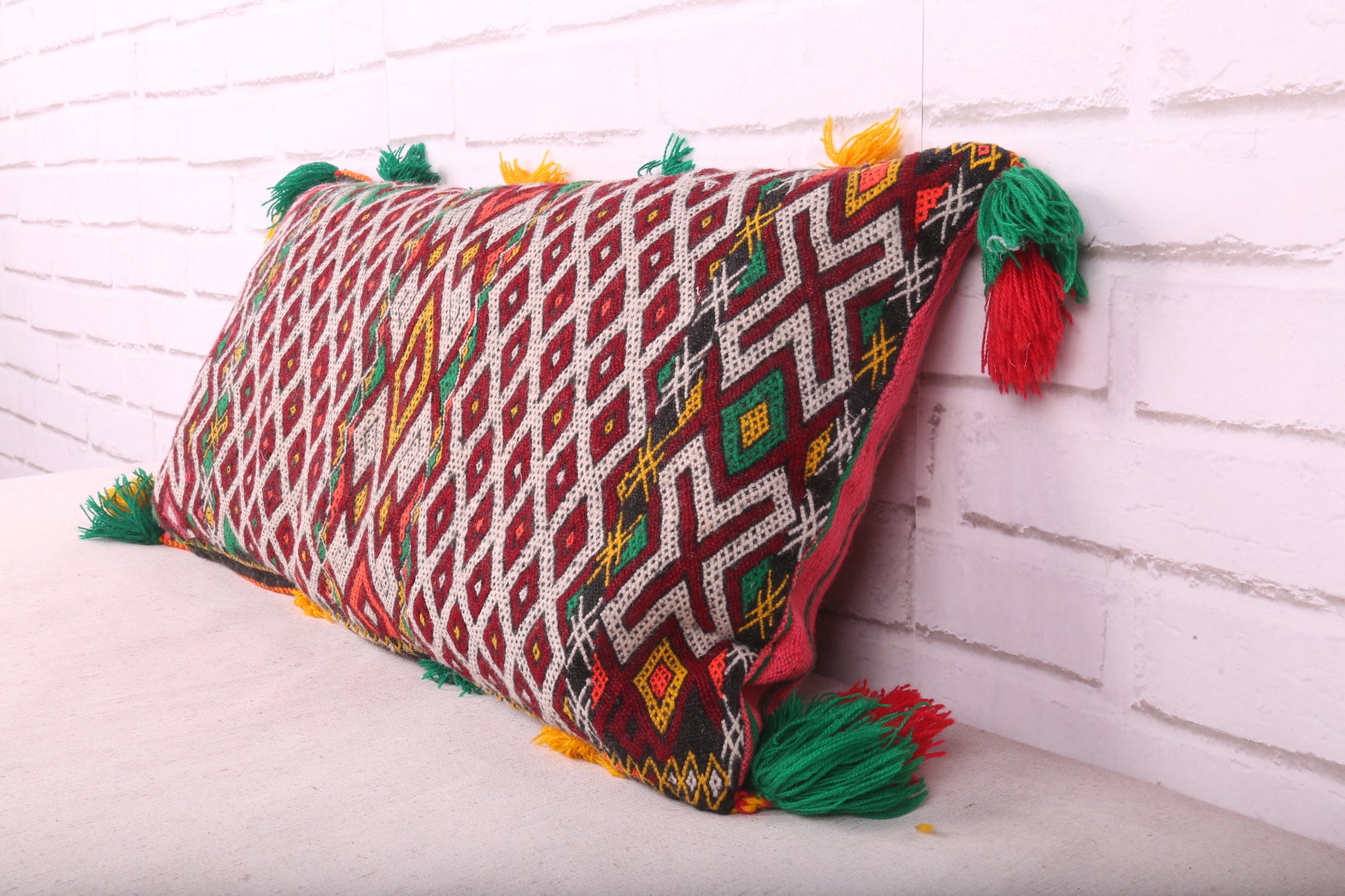 This pillow is handcrafted perfection, a work of art for your home. Hand-knotted by skilled artisans, each vibrant thread is woven with care to create a colorful mosaic of pattern and texture. No two are exactly alike. Its casual kilim style and mix of rich jewel tones evoke a bohemian spirit, while its generous size provides plush comfort and support for lounging. Whether gracing a sofa, chair or bed, this pillow transforms any space into a stylish sanctuary. An heirloom-quality showpiece that will stand the test of time, it's the perfect gift for the design-minded soul in your life or a special treat for yourself. Made to be lived on, this pillow beckons you to kick back, relax and enjoy life's simple pleasures. After all, handmade treasures like this don't come around every day.