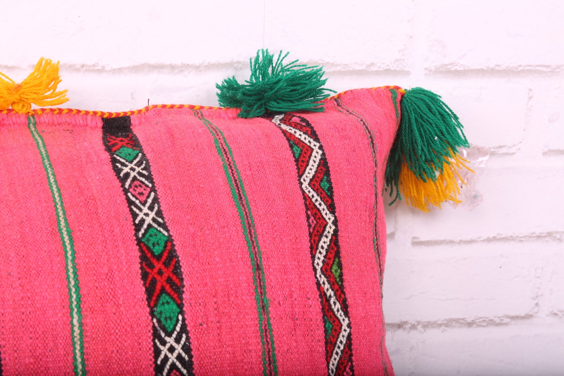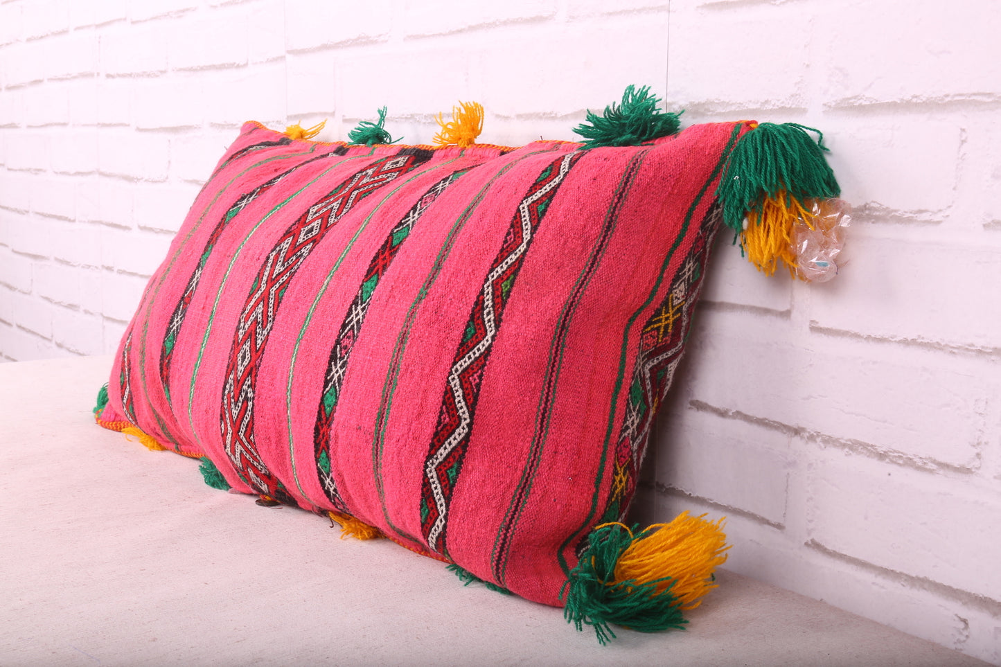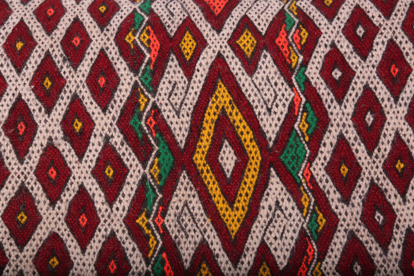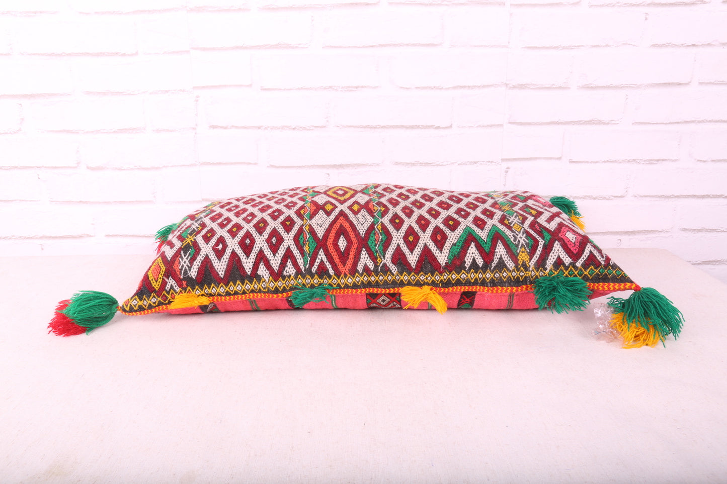 This pillow is handcrafted perfection, a work of art for your home. Hand-knotted by skilled artisans, each vibrant thread is woven with care to create a colorful mosaic of pattern and texture. No two are exactly alike. Its casual kilim style and mix of rich jewel tones evoke a bohemian spirit, while its generous size provides plush comfort and support for lounging. Whether gracing a sofa, chair or bed, this pillow transforms any space into a stylish sanctuary. An heirloom-quality showpiece that will stand the test of time, it's the perfect gift for the design-minded soul in your life or a special treat for yourself. Made to be lived on, this pillow beckons you to kick back, relax and enjoy life's simple pleasures. After all, handmade treasures like this don't come around every day.