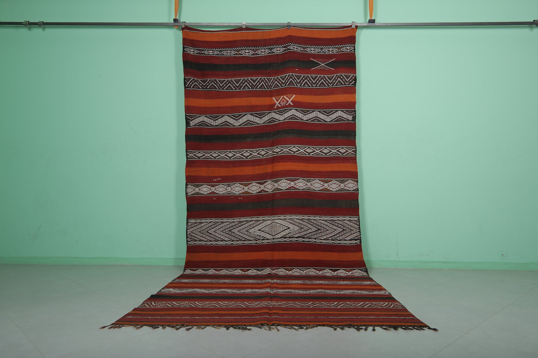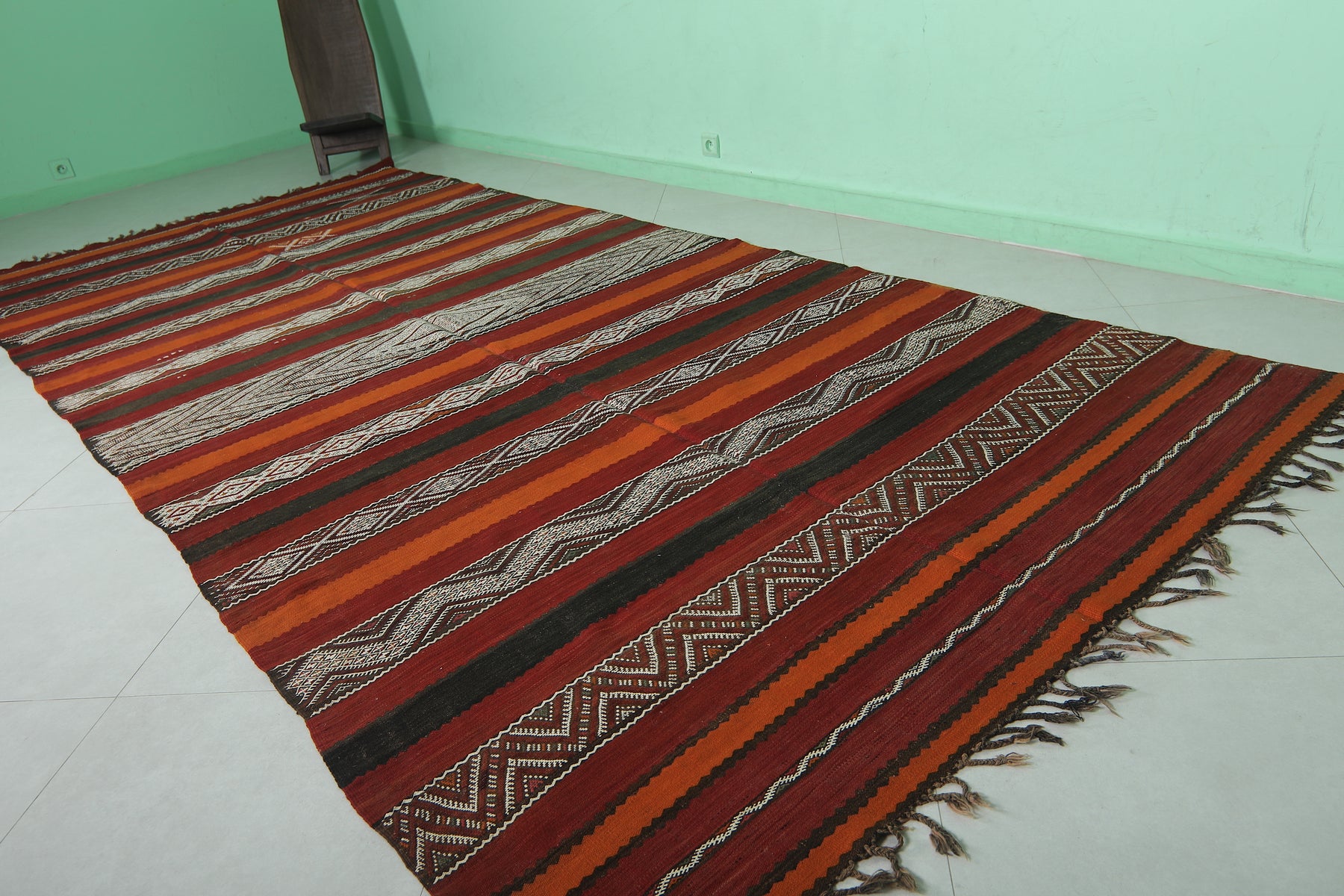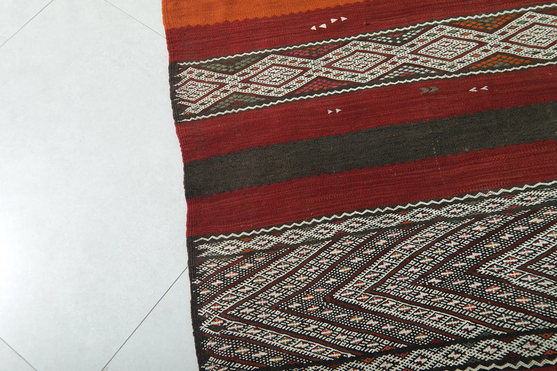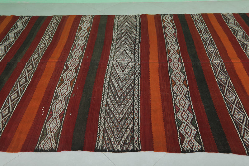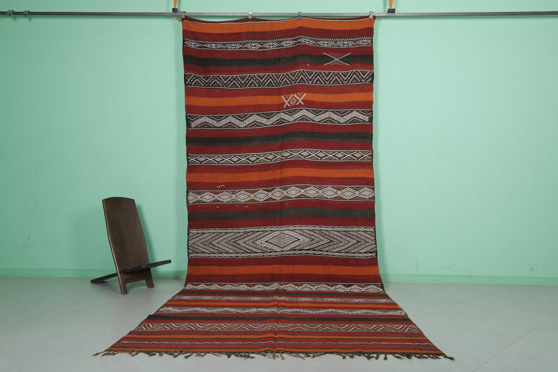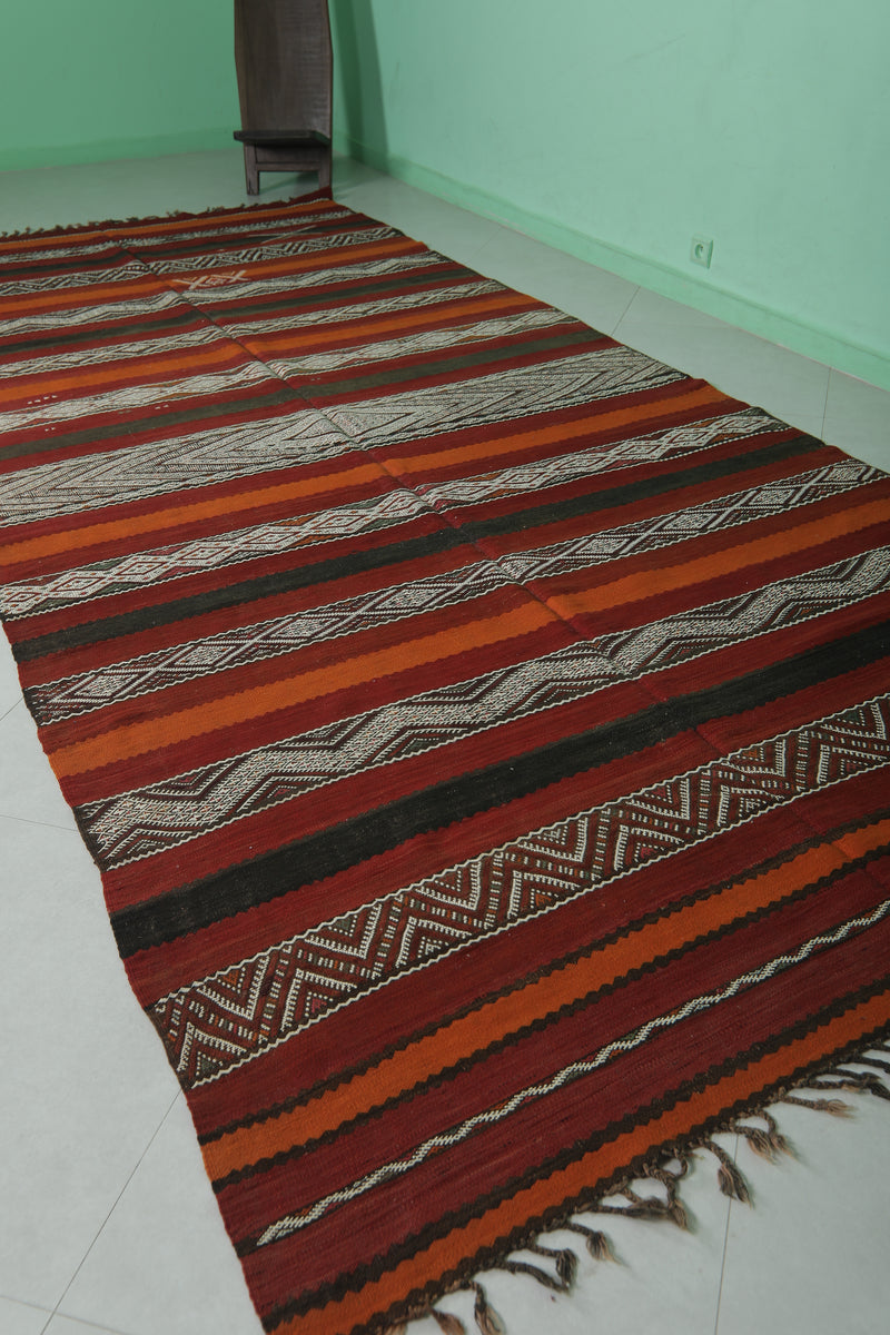 Large Handwoven Kilim Rug 6 FT x 13.4 FT – Authentic Moroccan Design