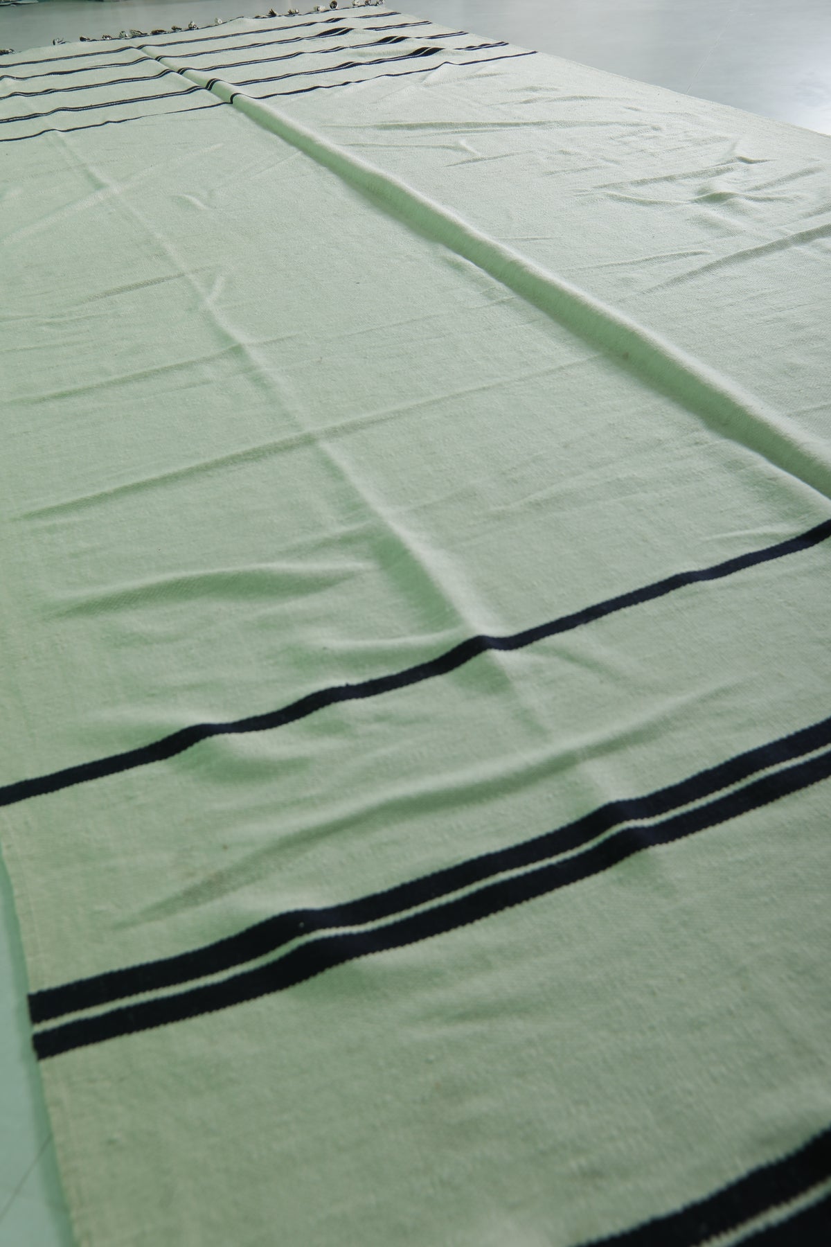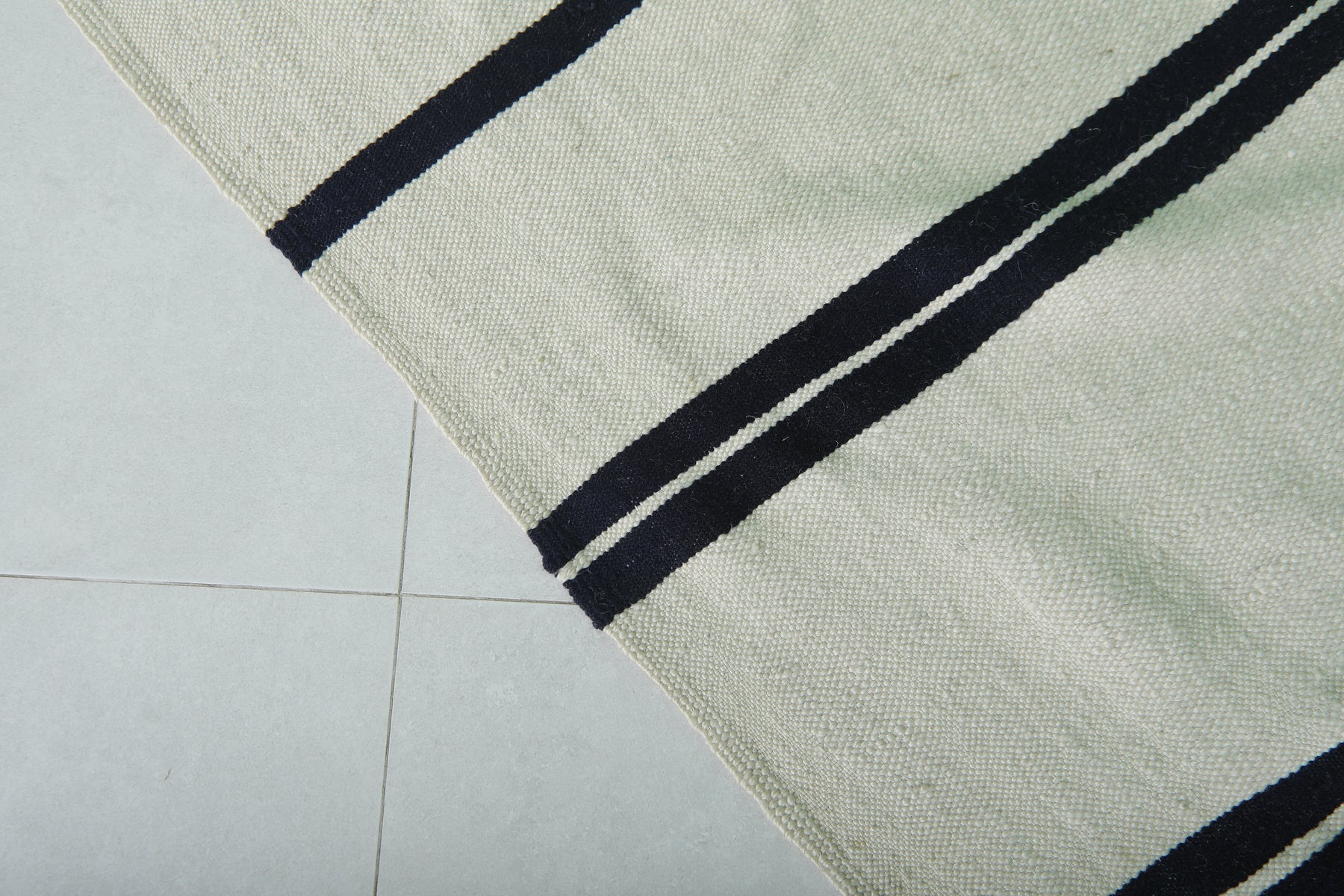 This 6.5 x 15.5 feet Large Handwoven Kilim Rug features a minimalist ivory base accented with elegant black stripes, creating a timeless and versatile aesthetic. Handwoven by skilled artisans, this rug is perfect for large rooms, hallways, or open-plan spaces.
