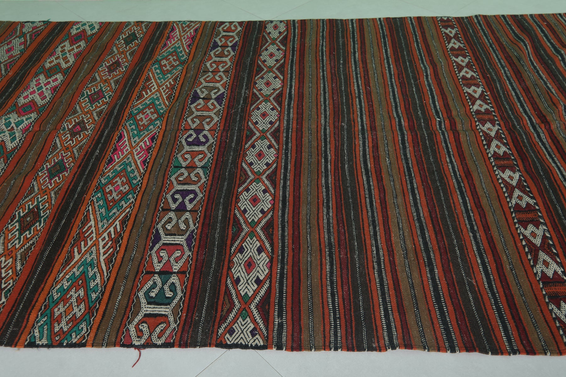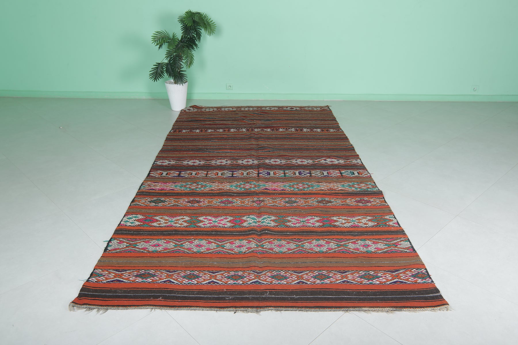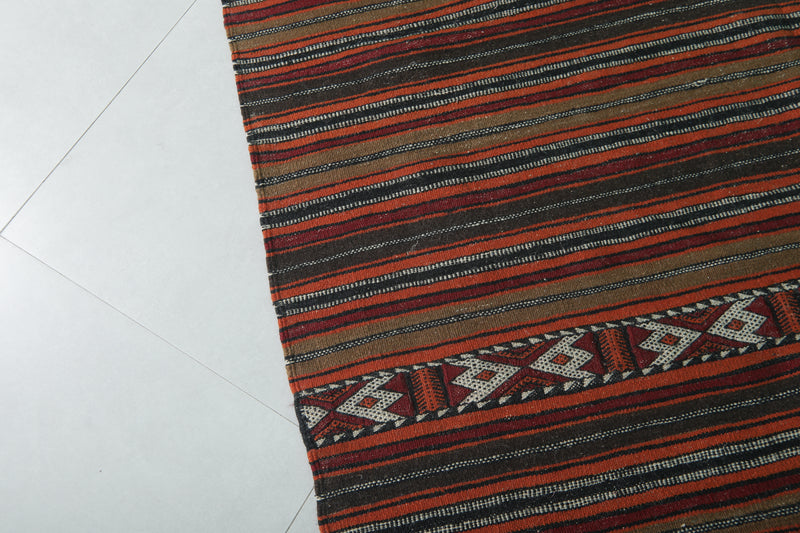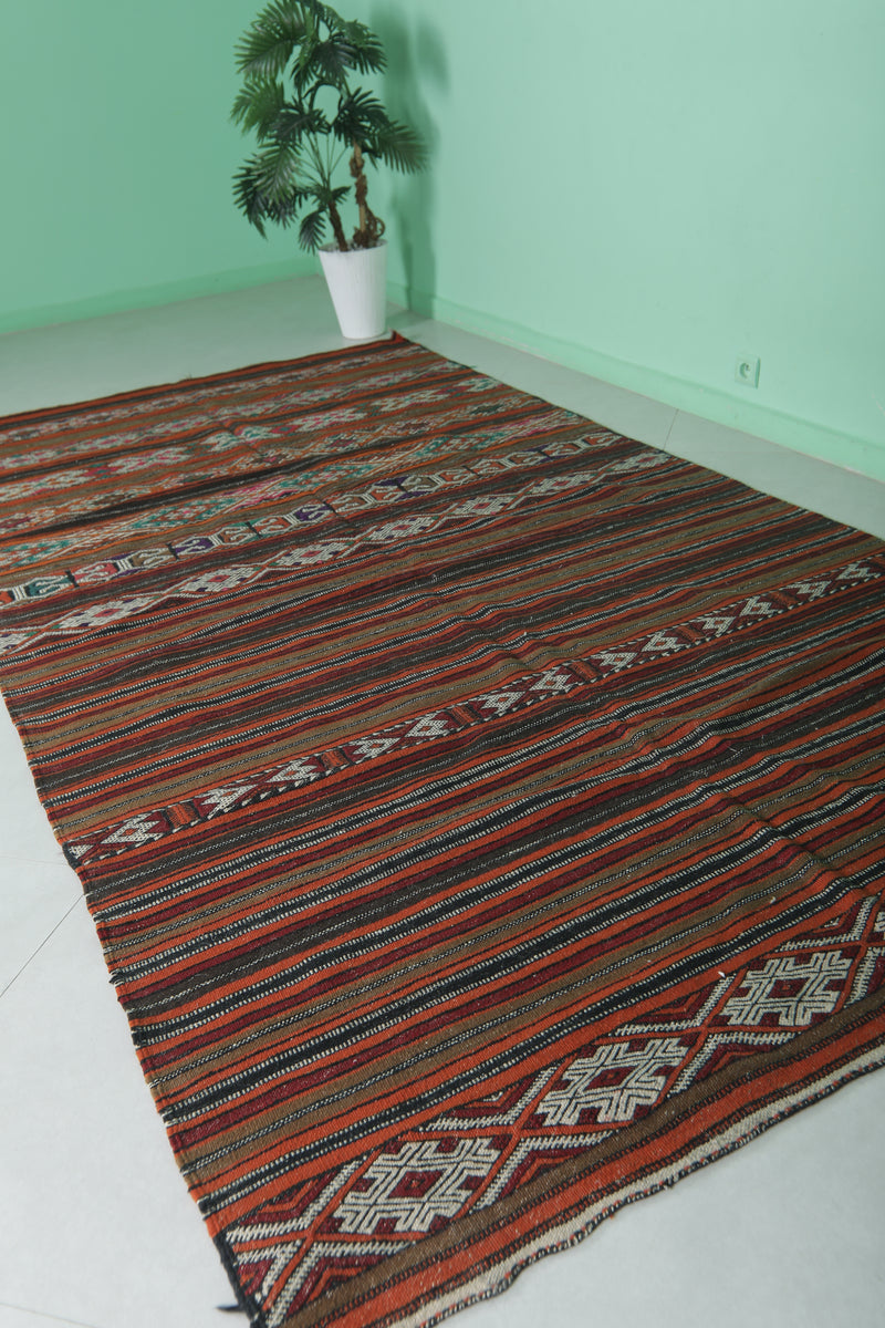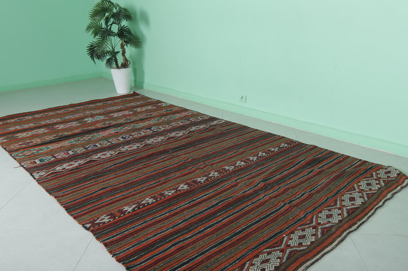 Large Handwoven Moroccan Kilim Rug - 5.6 FT × 10.9 FT