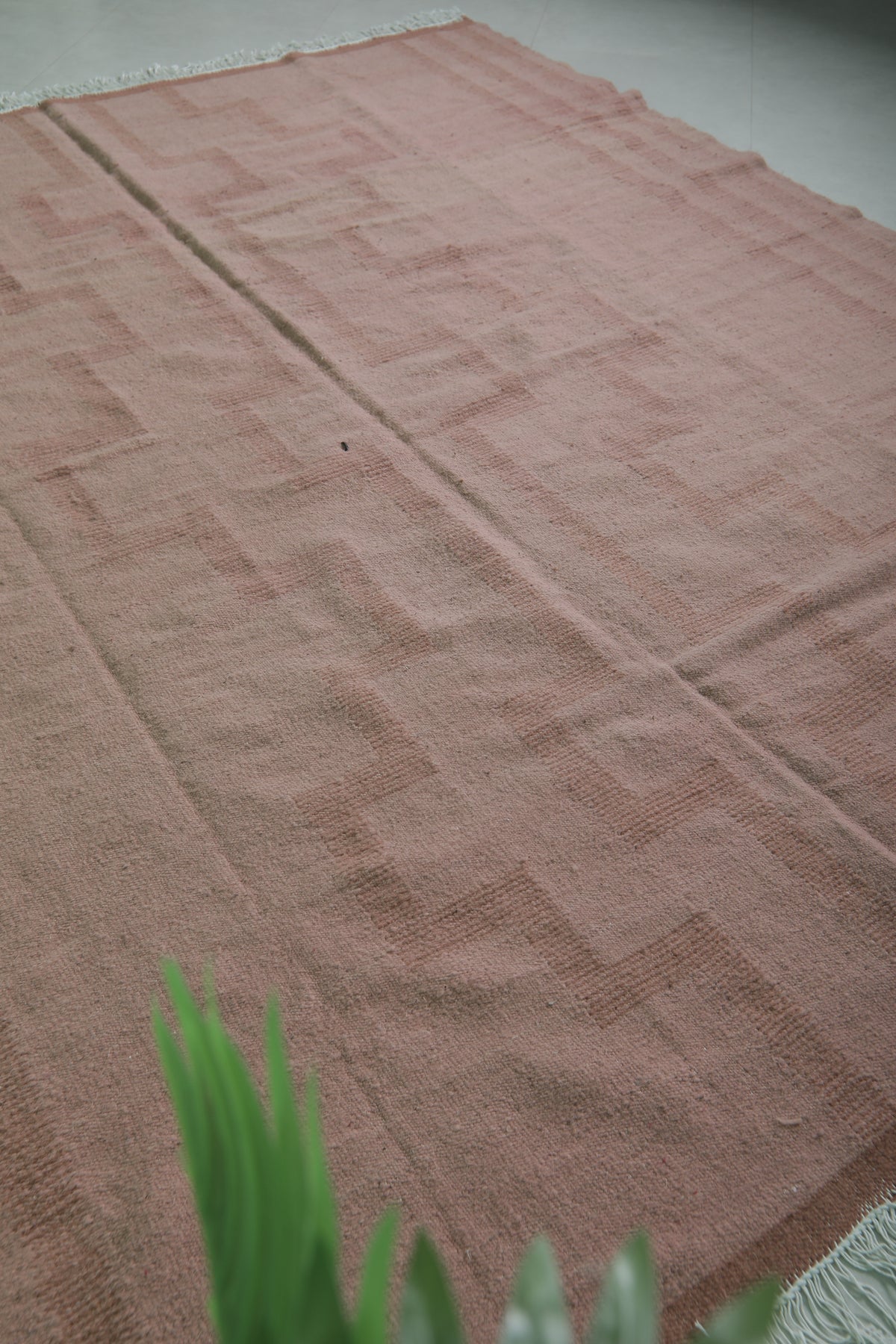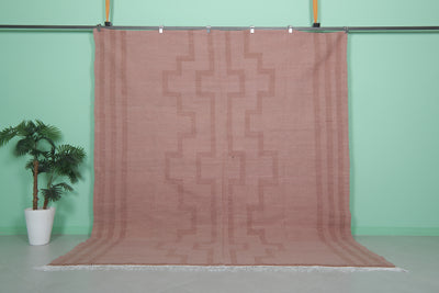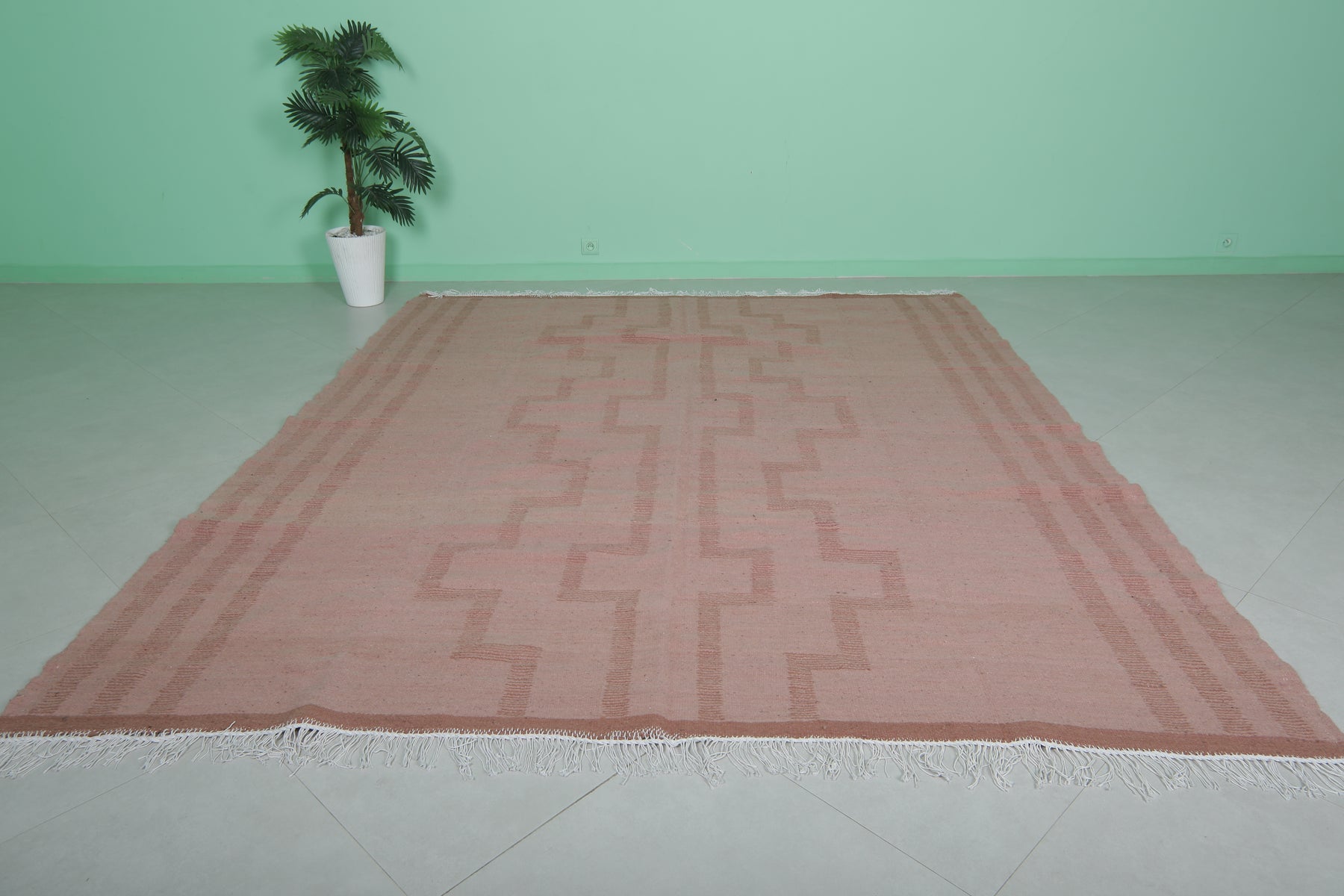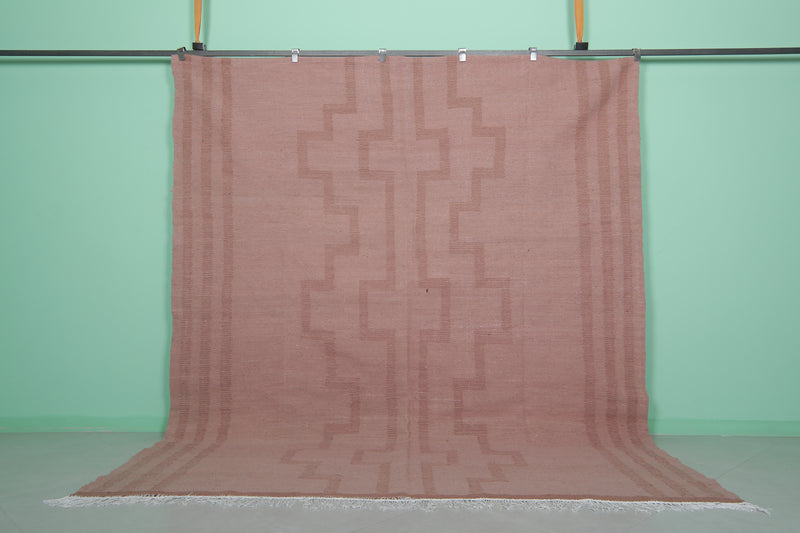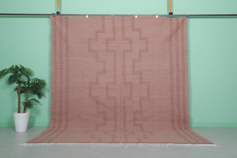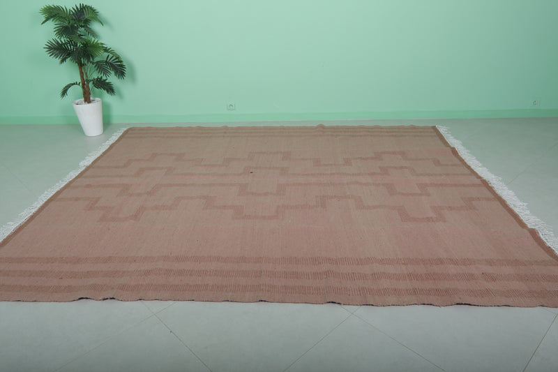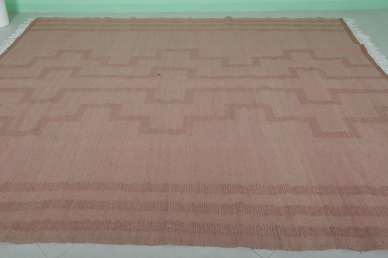 This 8.3 x 9.7 feet large Moroccan rug showcases a modern geometric flatweave design in warm earthy tones, blending simplicity and sophistication. Its understated elegance makes it ideal for living rooms, bedrooms, or creative spaces, seamlessly complementing modern, minimalist, or bohemian interiors. Handwoven from premium natural wool, this rug is durable, easy to maintain, and a timeless addition to any home.