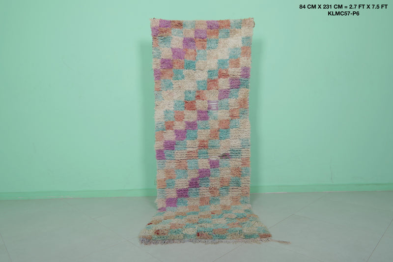 Long Colorful Moroccan rug shag 2.7 X 7.5 Feet