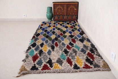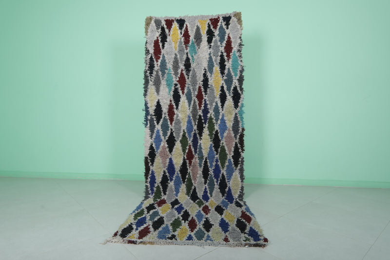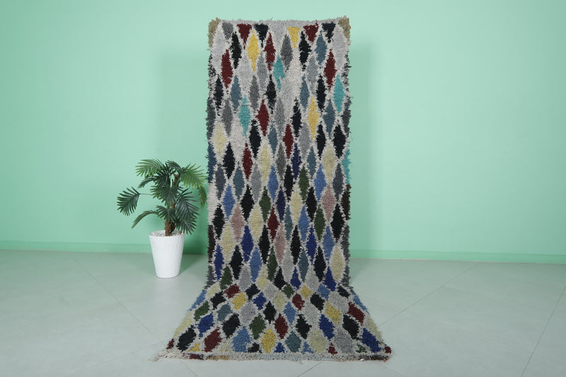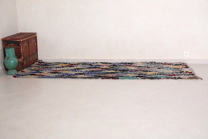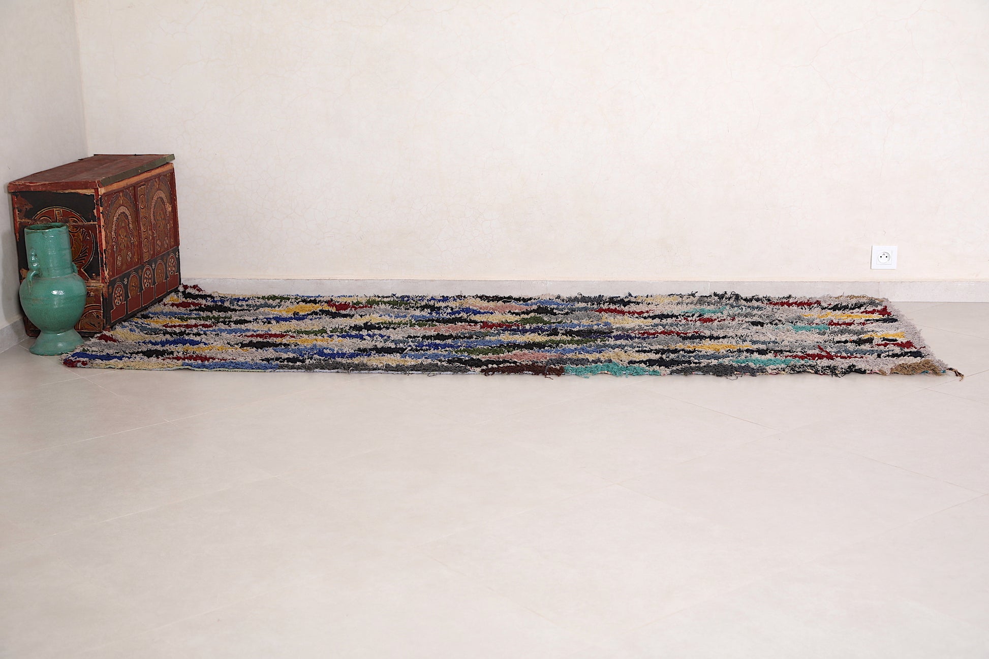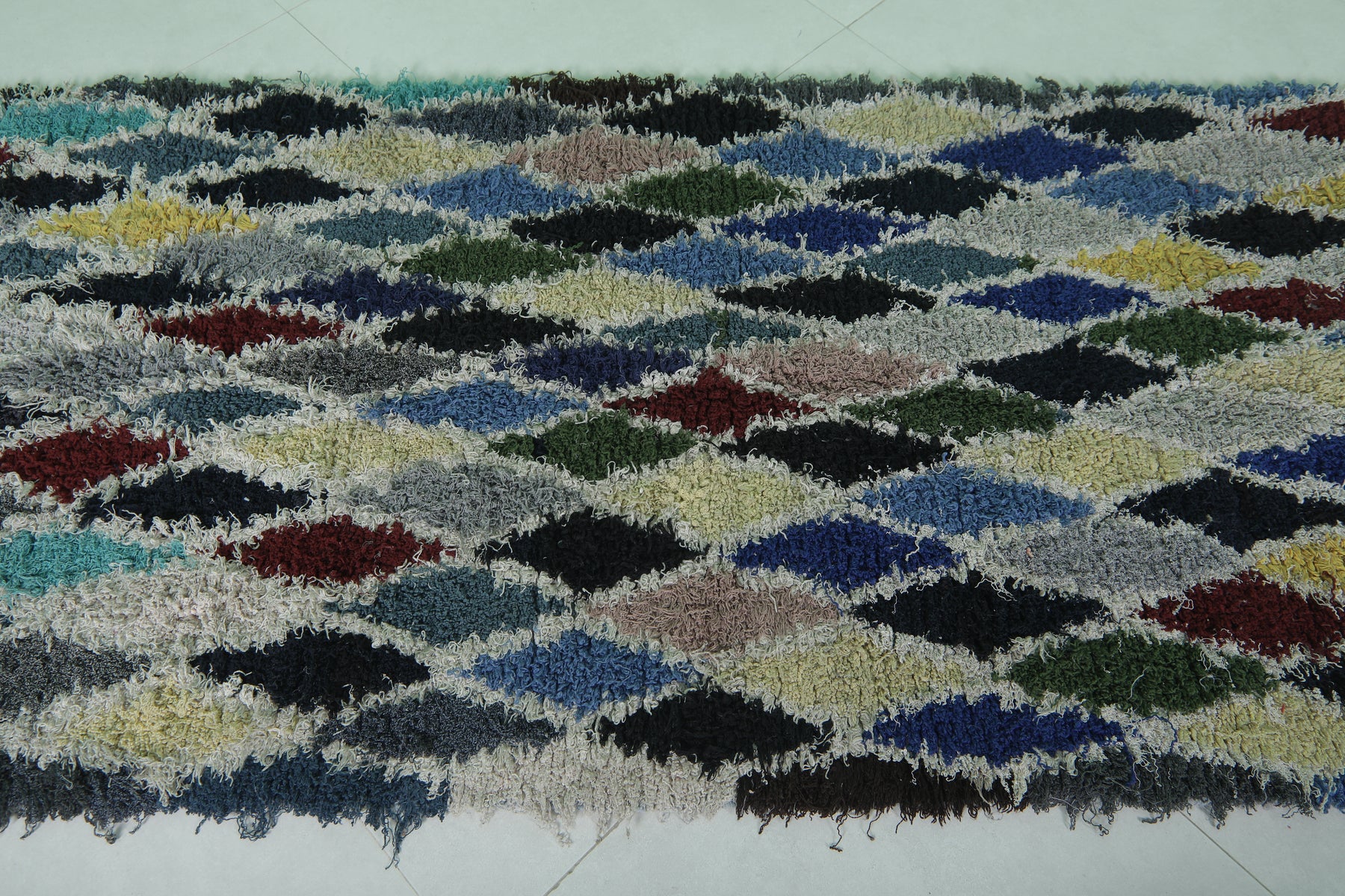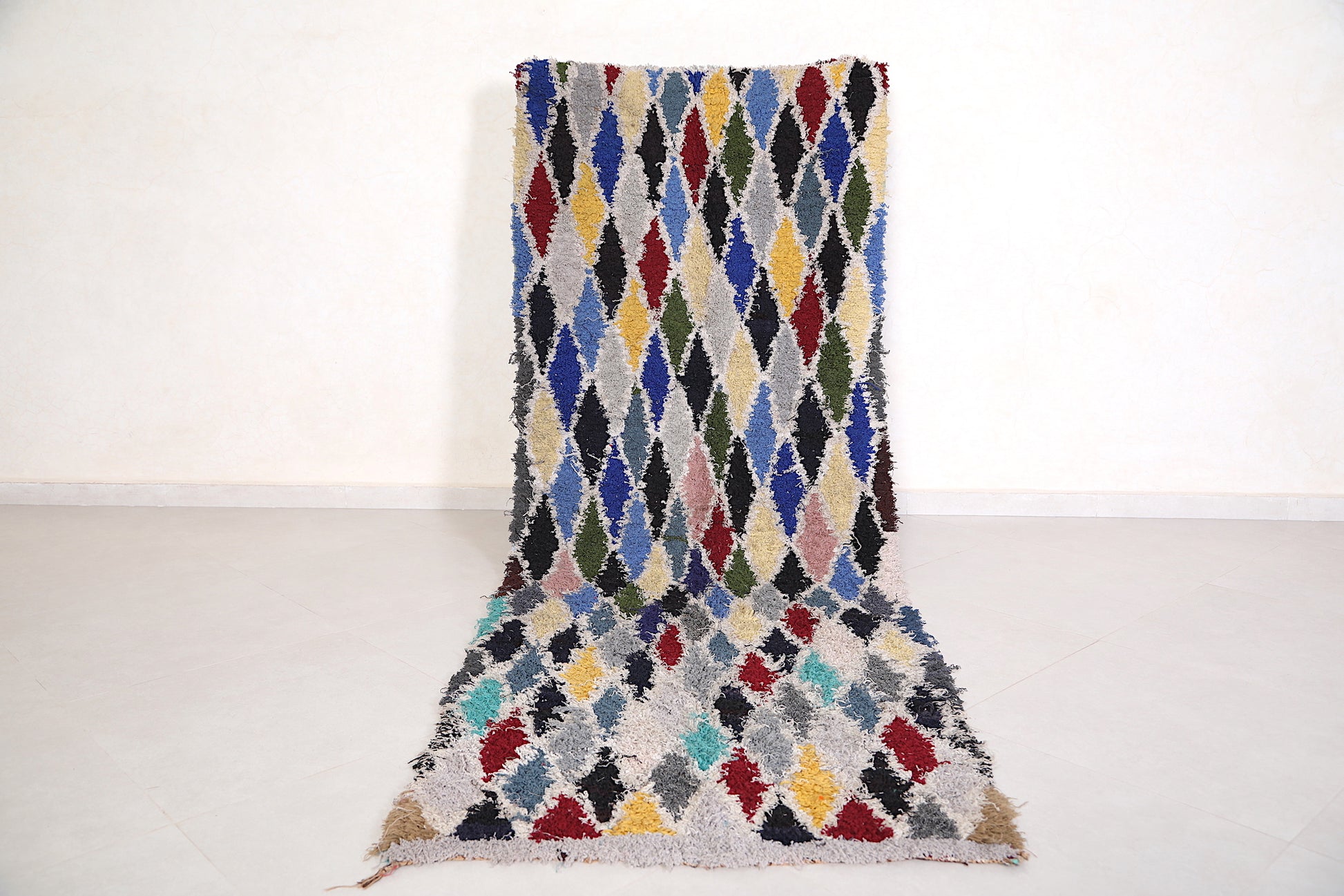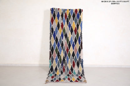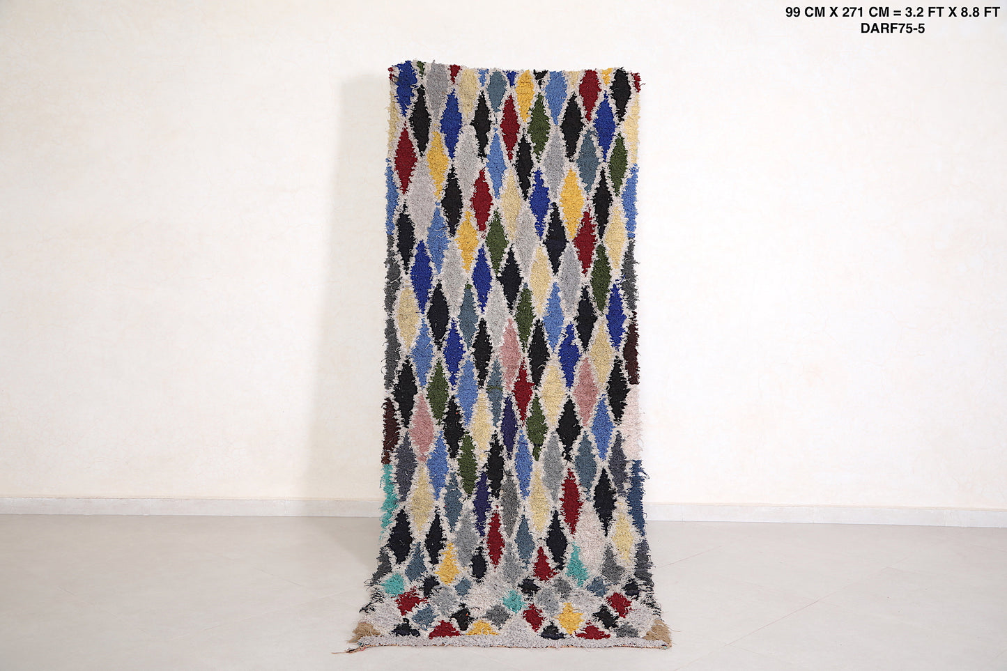 Brighten up your space with this Long Hallway Boucherouite Rug, measuring 3.2 x 8.8 feet. Handcrafted in Morocco from 100% wool, this vibrant runner features a striking diamond pattern in a kaleidoscope of colors. Its eye-catching design and plush texture make it ideal for hallways, entryways, or large narrow spaces that need a bold, artistic touch. Add personality and comfort to your home with this one-of-a-kind statement piece.