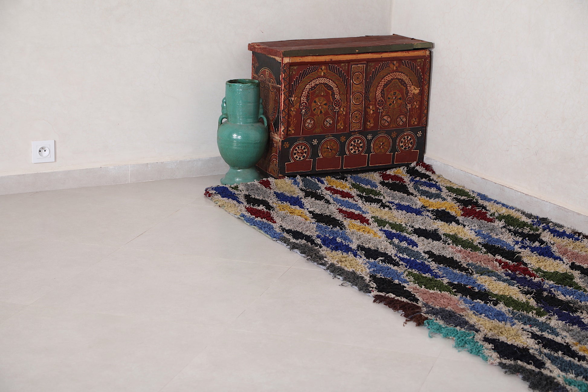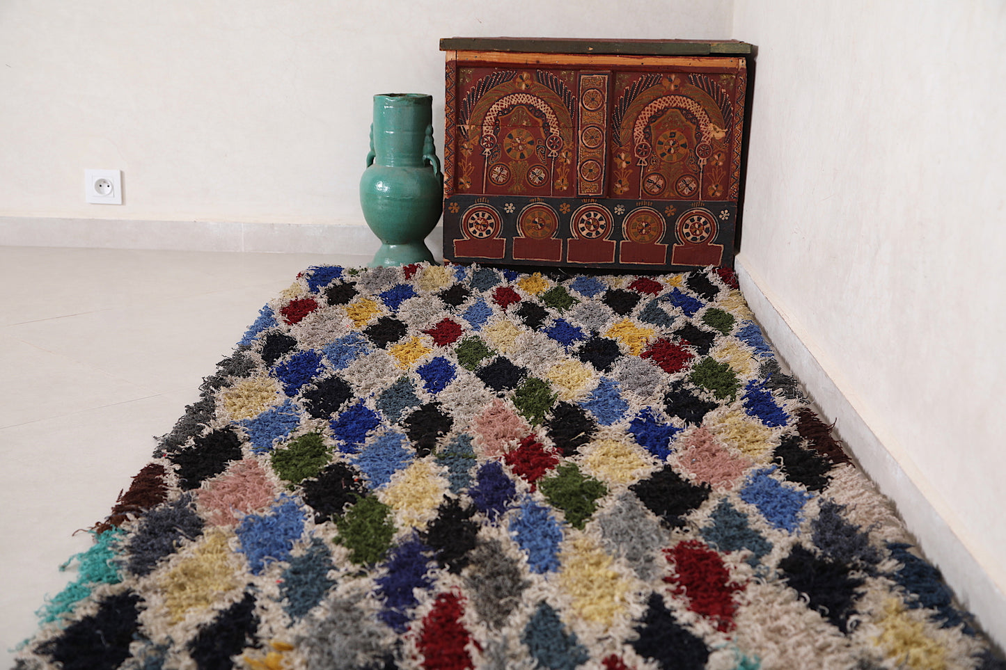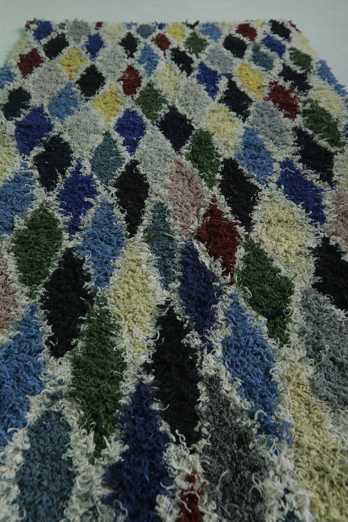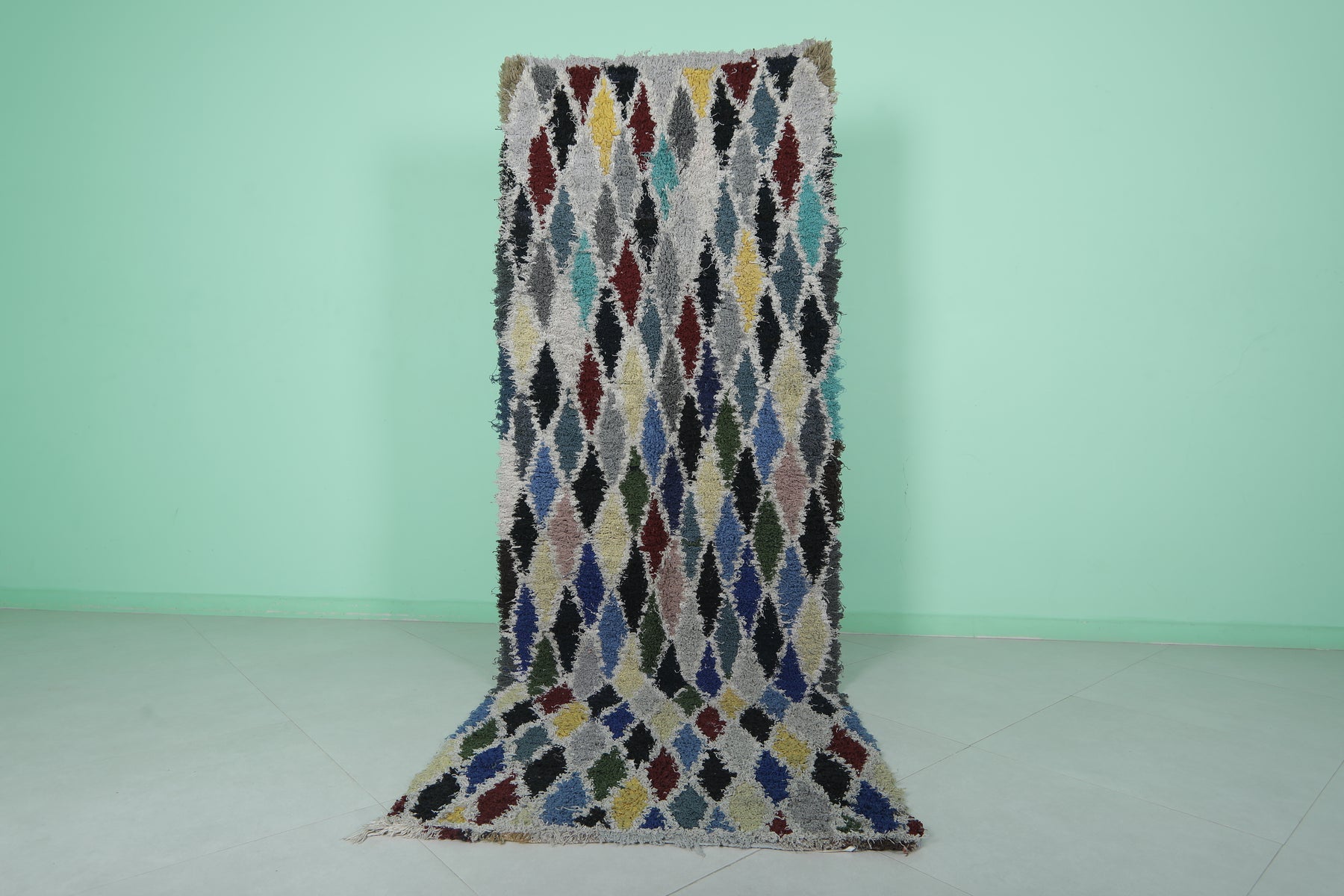 - Multicolored diamond motifs in a traditional Boucherouite style.