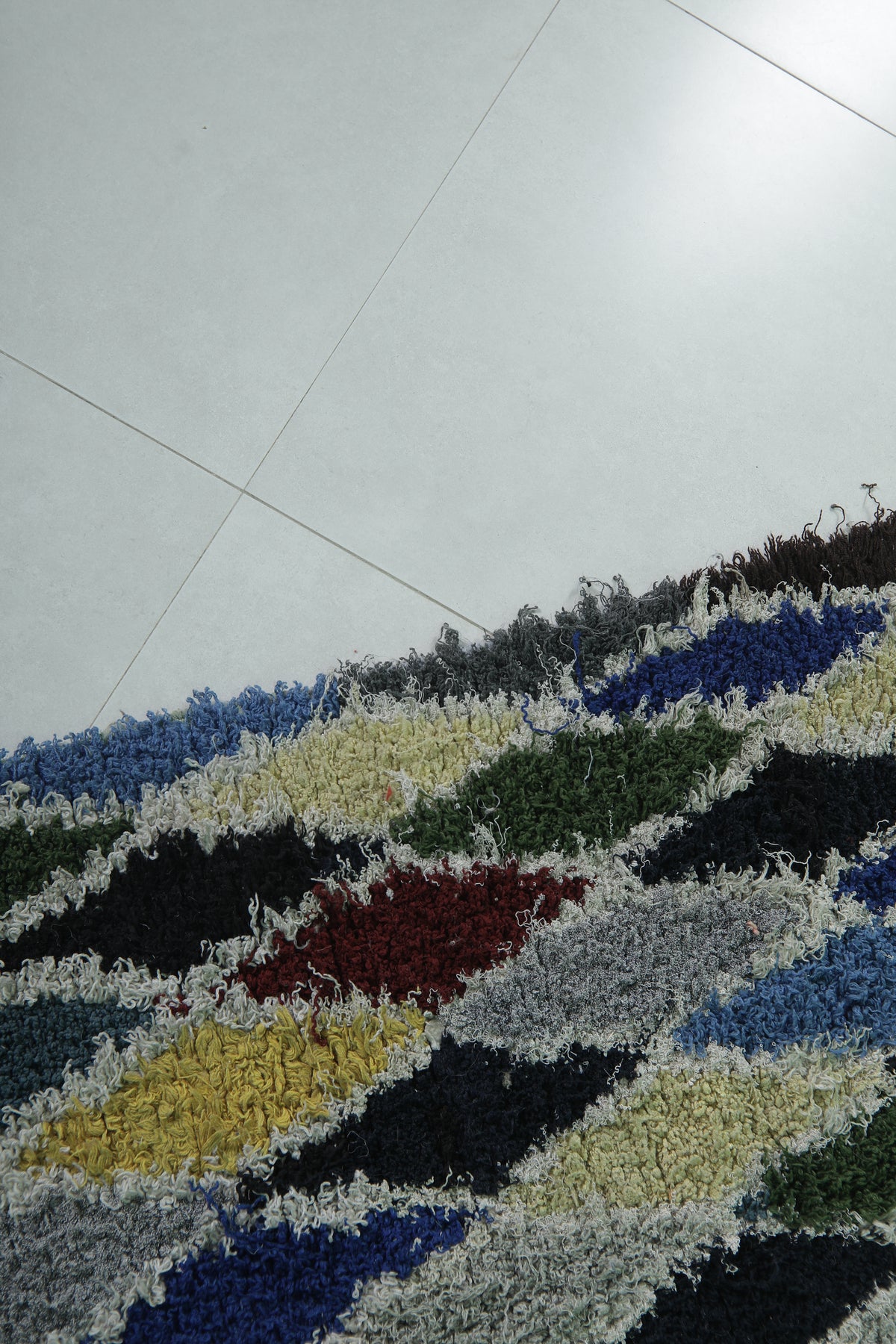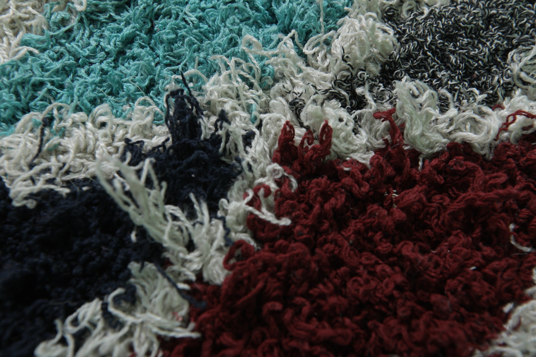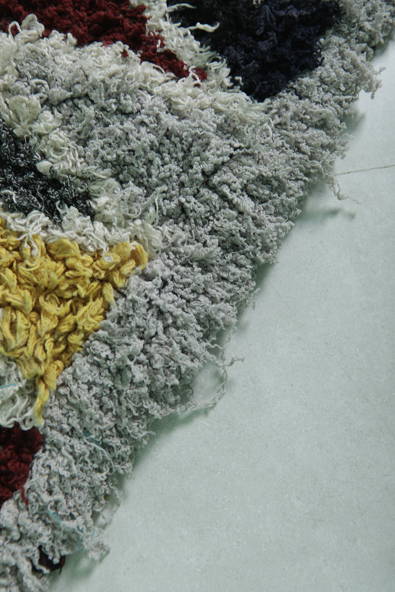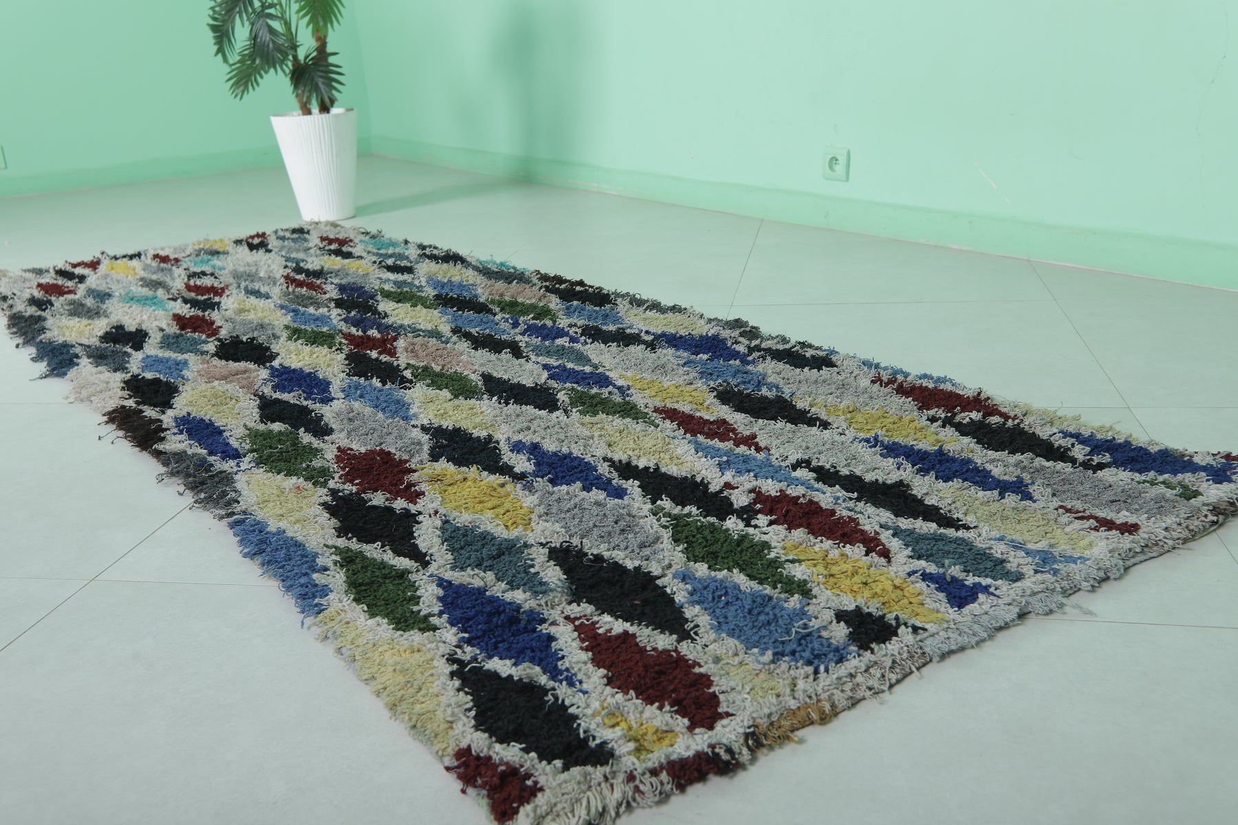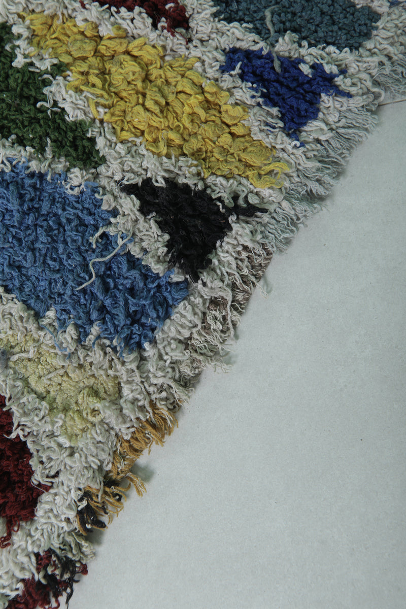 - Multicolored diamond motifs in a traditional Boucherouite style.