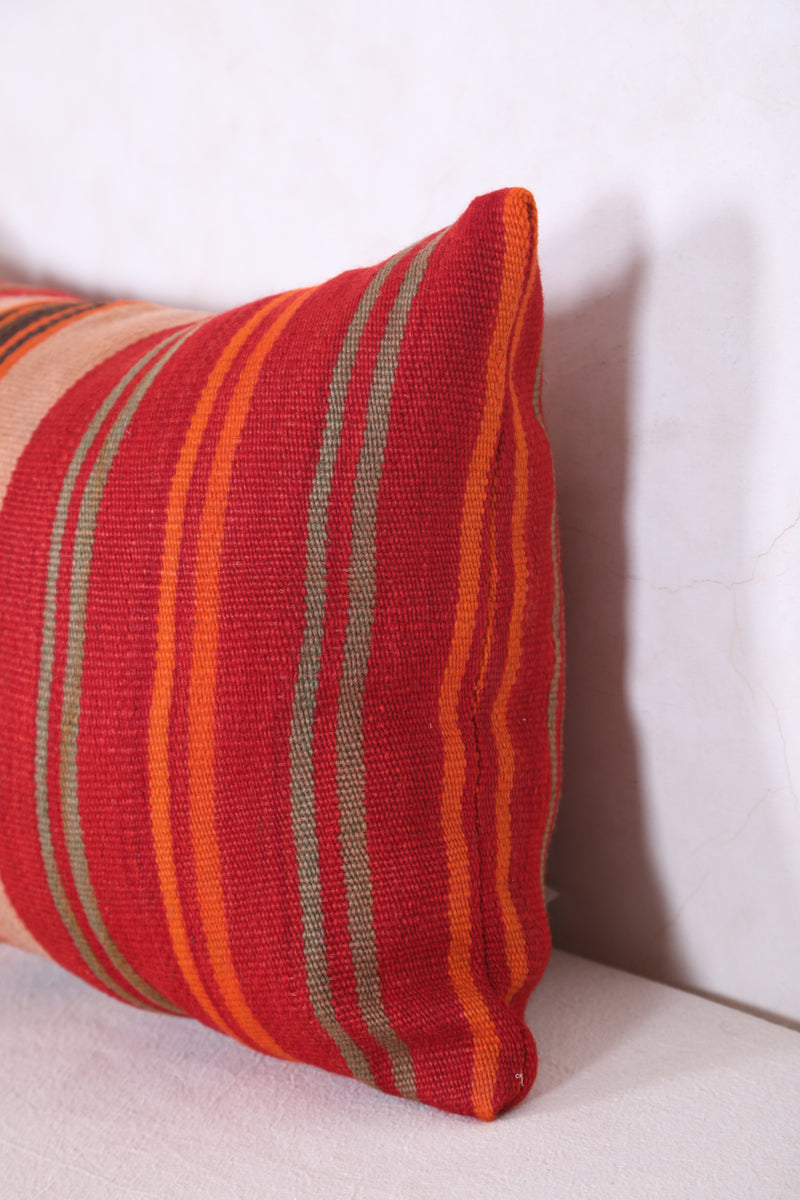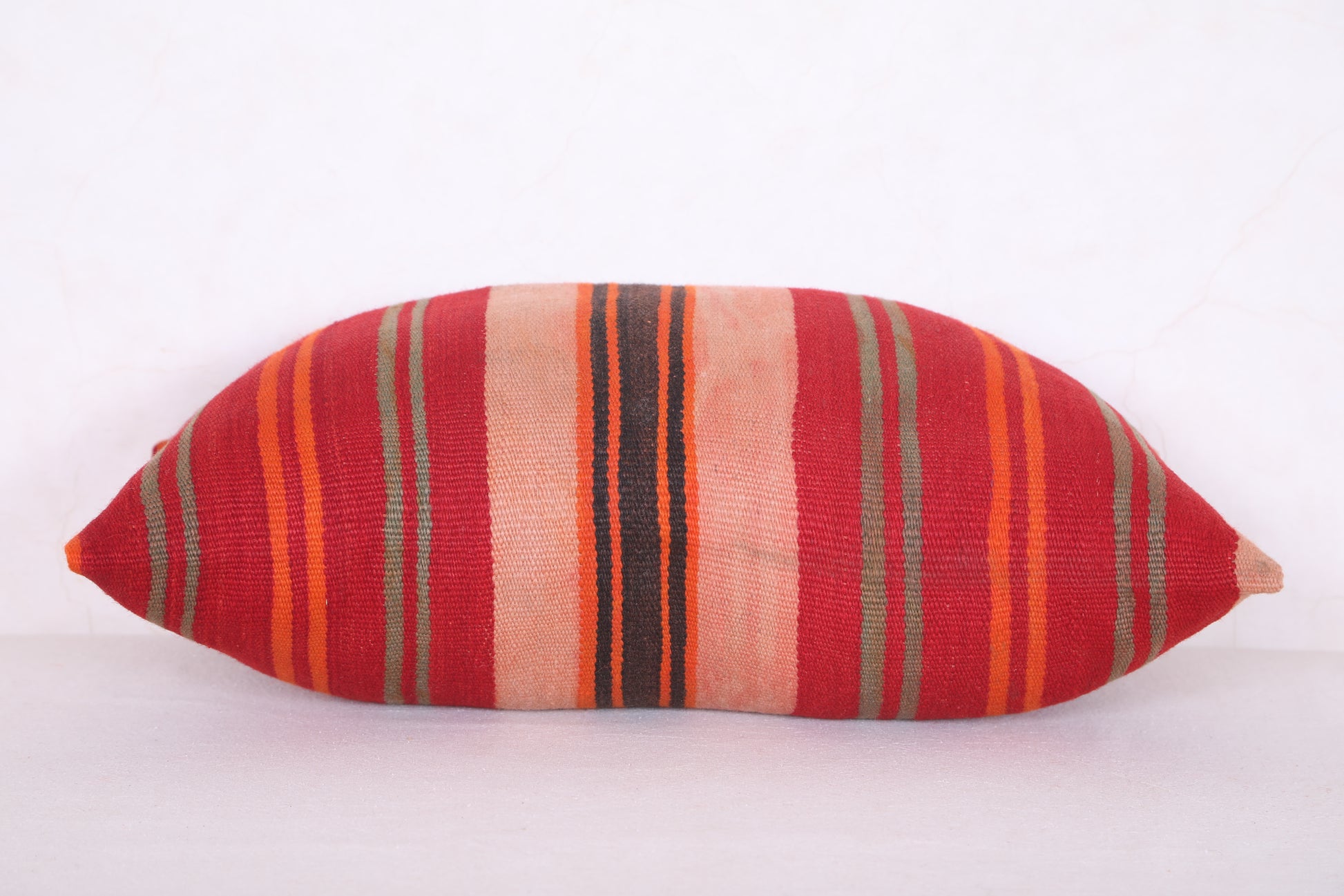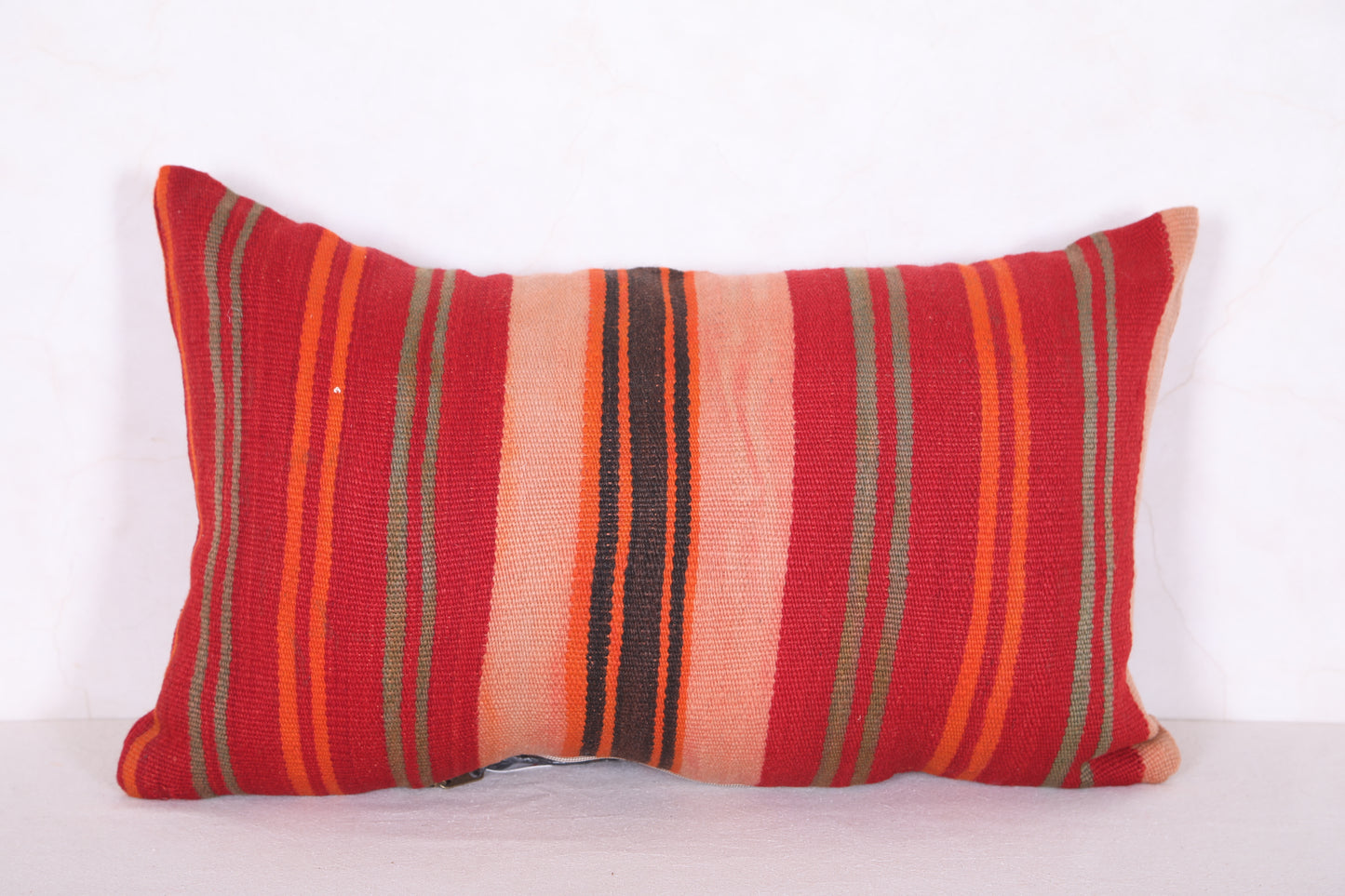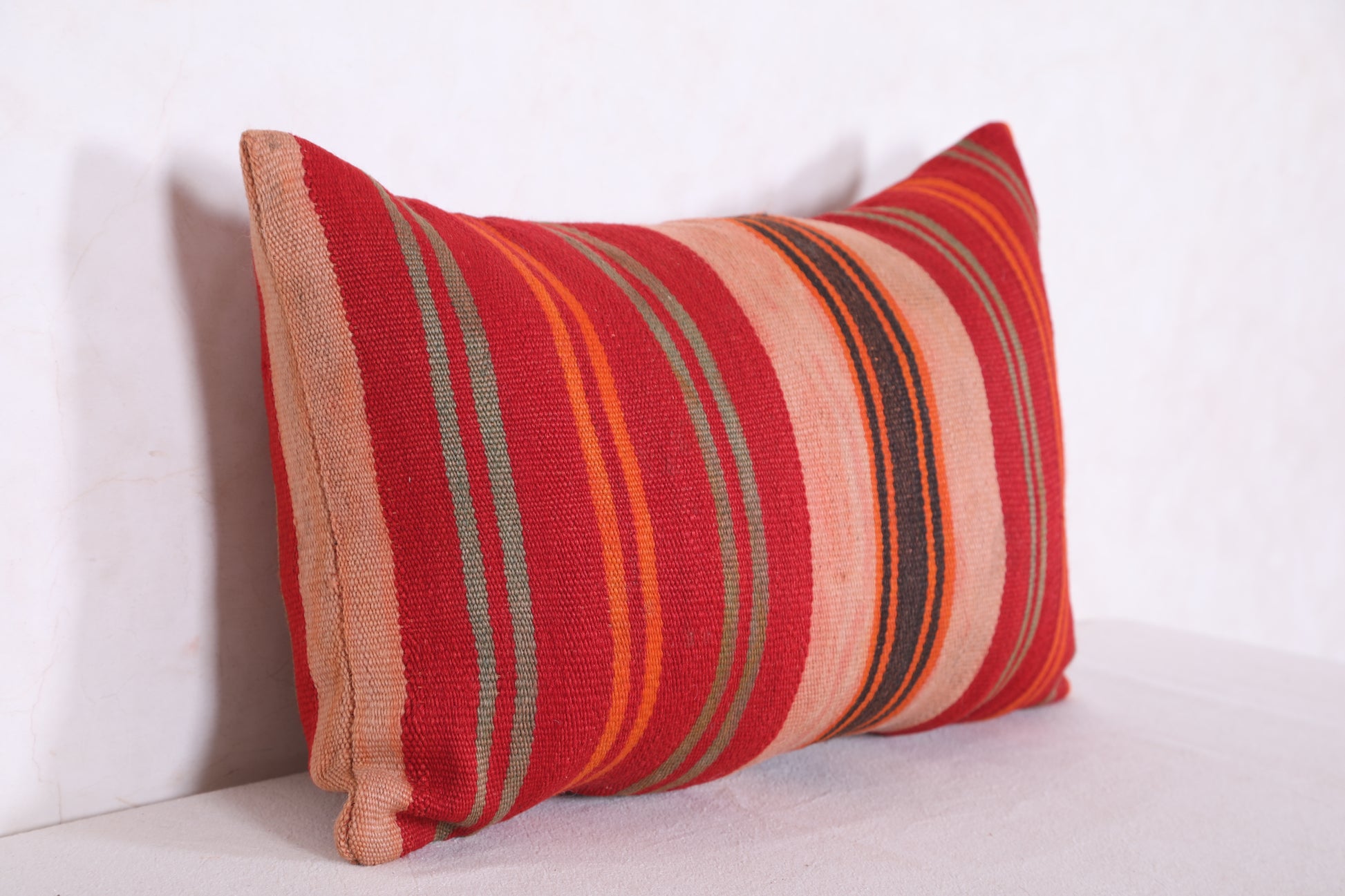 Add a bold pop of color and handcrafted artistry to your home with this handwoven Kilim Moroccan Pillow, sized at 13.7 x 22.4 inches (35 CM x 57 CM). Featuring vibrant red and earthy stripe patterns, this pillow blends traditional Moroccan craftsmanship with timeless elegance. Perfect for enhancing your sofa, bed, or favorite reading nook, it brings global charm to any space.