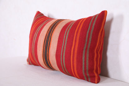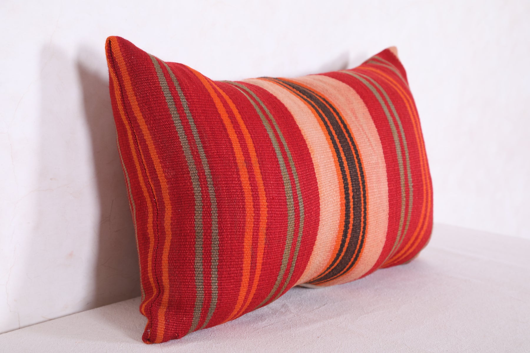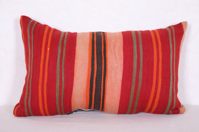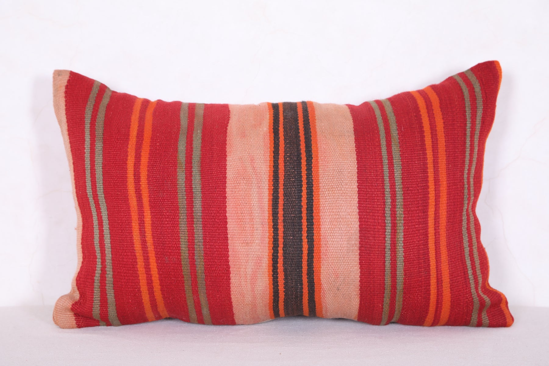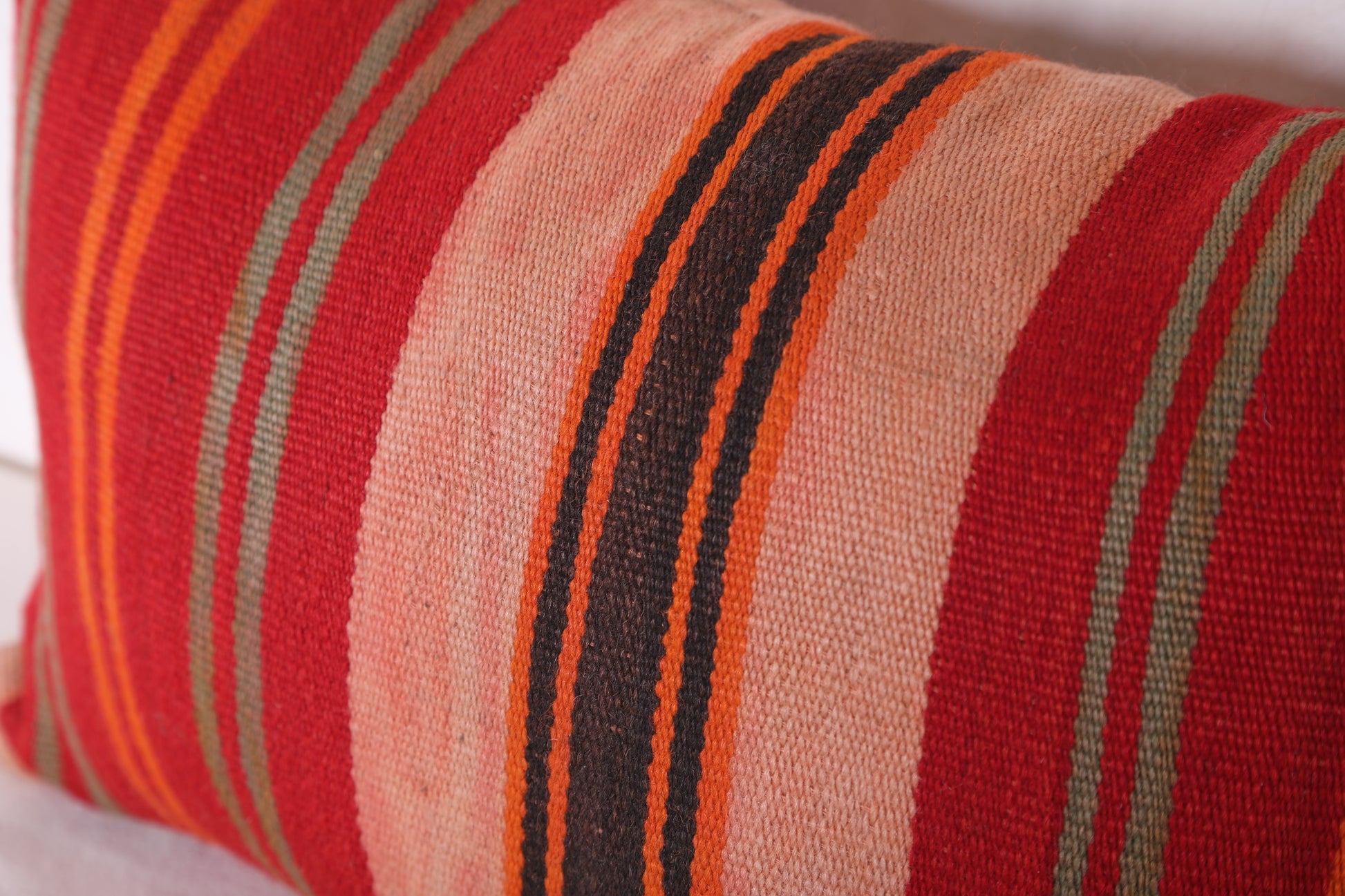 Add a bold pop of color and handcrafted artistry to your home with this handwoven Kilim Moroccan Pillow, sized at 13.7 x 22.4 inches (35 CM x 57 CM). Featuring vibrant red and earthy stripe patterns, this pillow blends traditional Moroccan craftsmanship with timeless elegance. Perfect for enhancing your sofa, bed, or favorite reading nook, it brings global charm to any space.