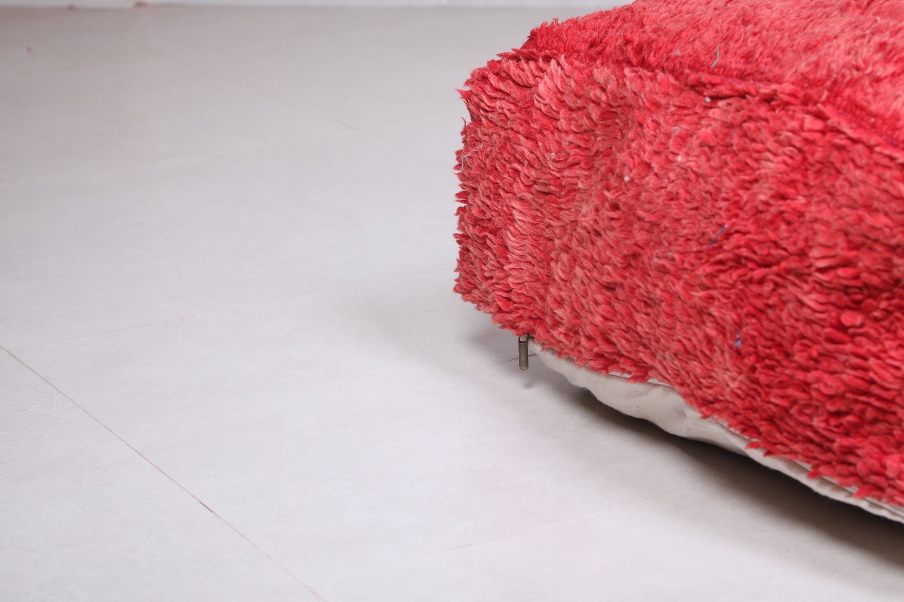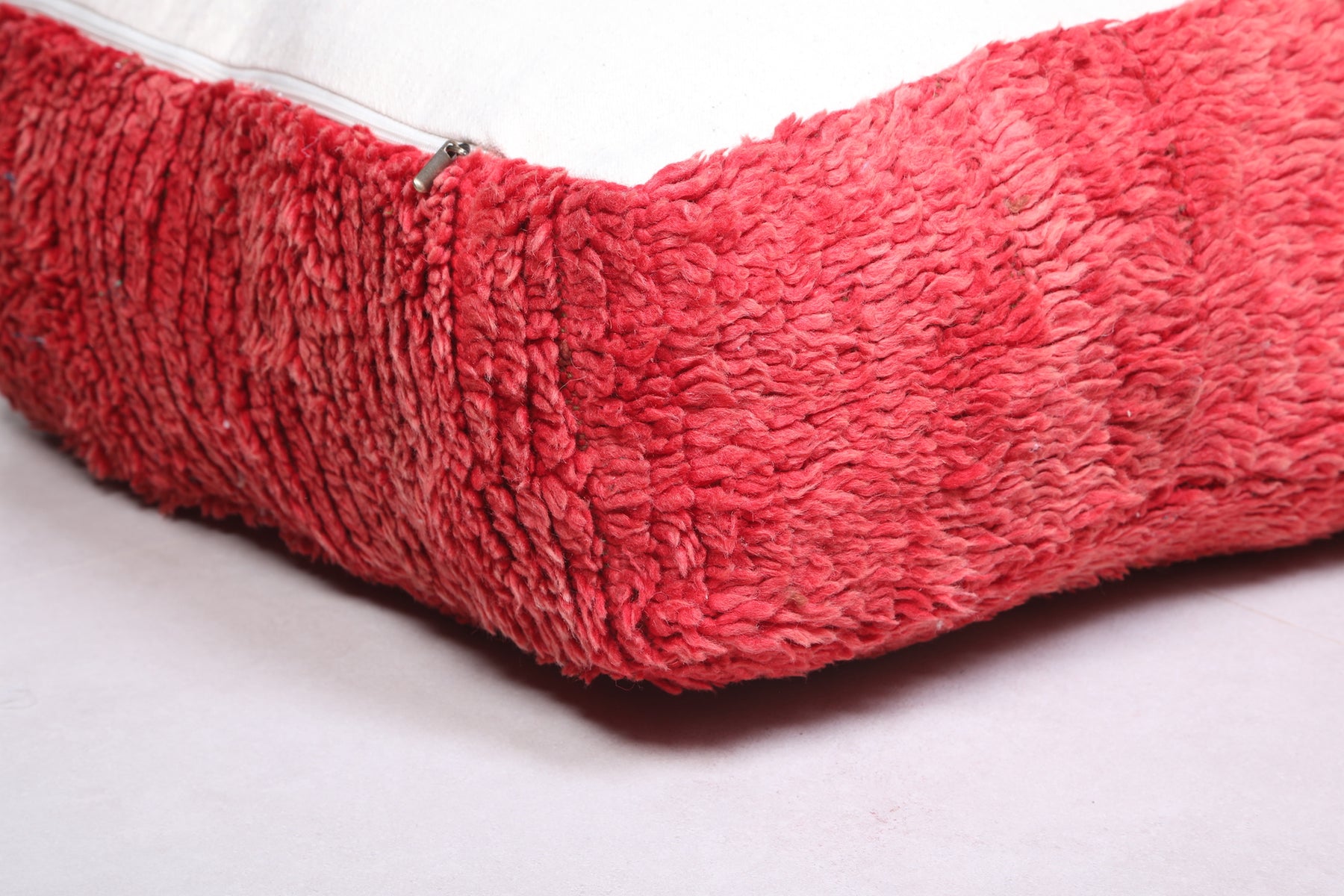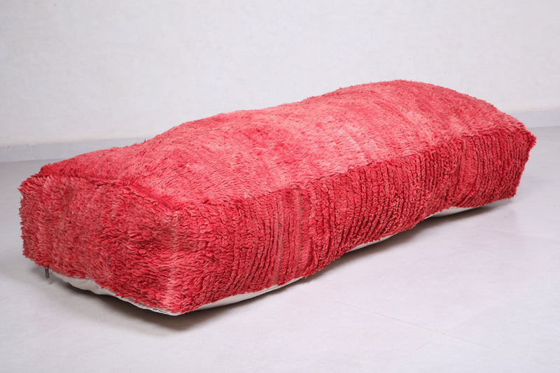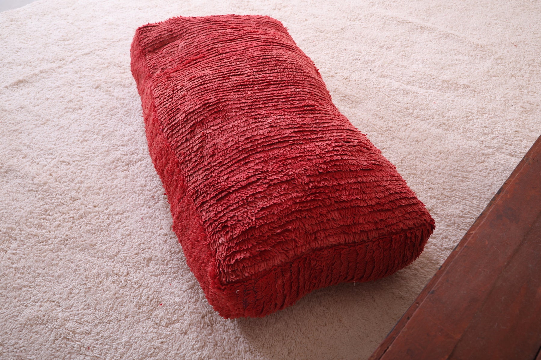 Brighten up your space with this long Moroccan floor pouf, handwoven in a deep, warm red. Its generous size and bold shaggy texture make it an inviting piece for relaxed seating, meditation, or low lounging. Crafted from vintage wool rugs, each pouf is unique and filled with Moroccan spirit. The rich color and soft surface create a cozy yet vibrant accent in any room.