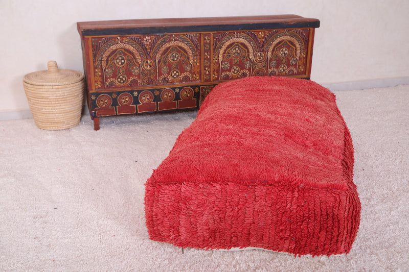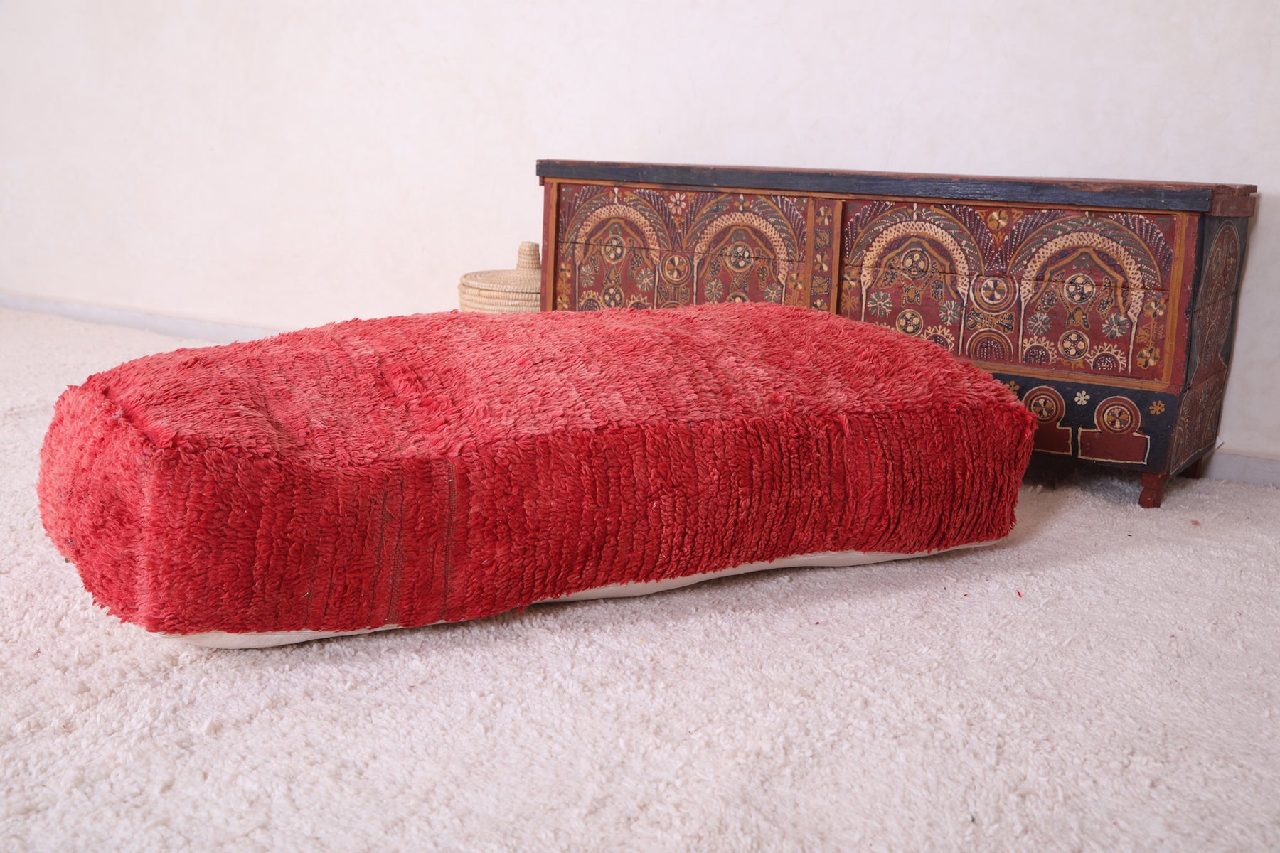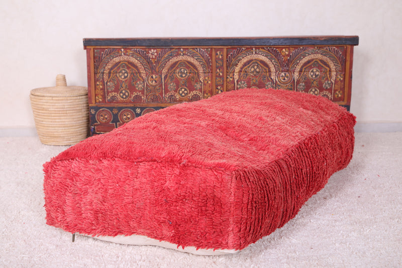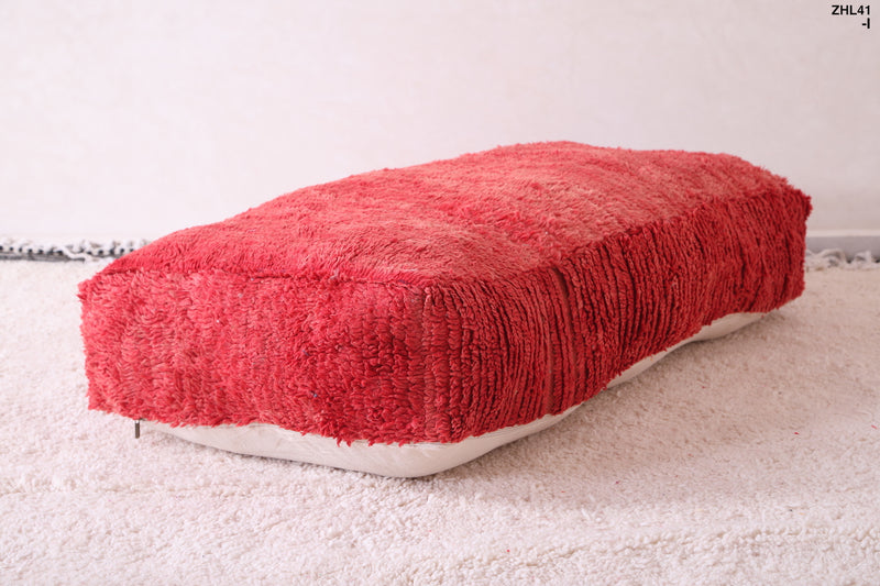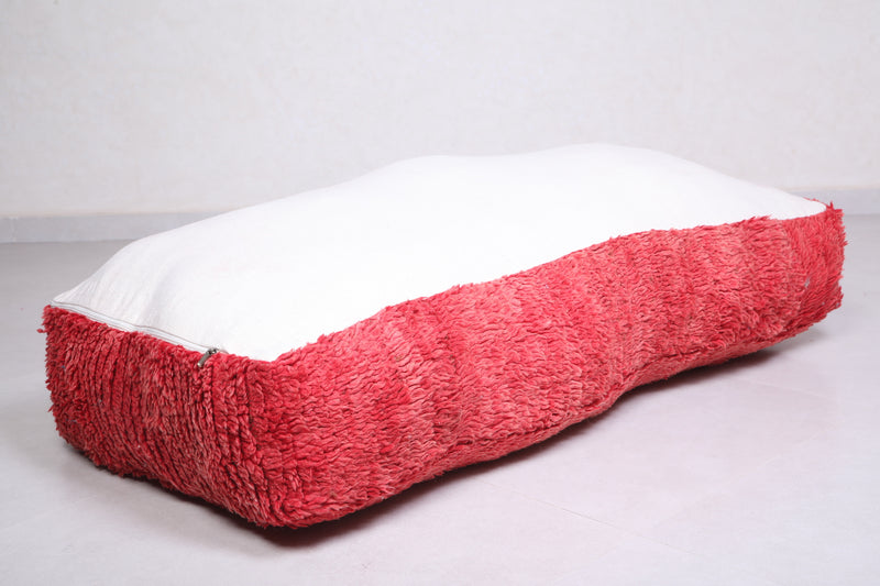 Brighten up your space with this long Moroccan floor pouf, handwoven in a deep, warm red. Its generous size and bold shaggy texture make it an inviting piece for relaxed seating, meditation, or low lounging. Crafted from vintage wool rugs, each pouf is unique and filled with Moroccan spirit. The rich color and soft surface create a cozy yet vibrant accent in any room.