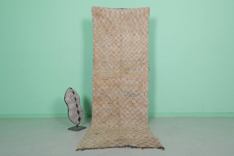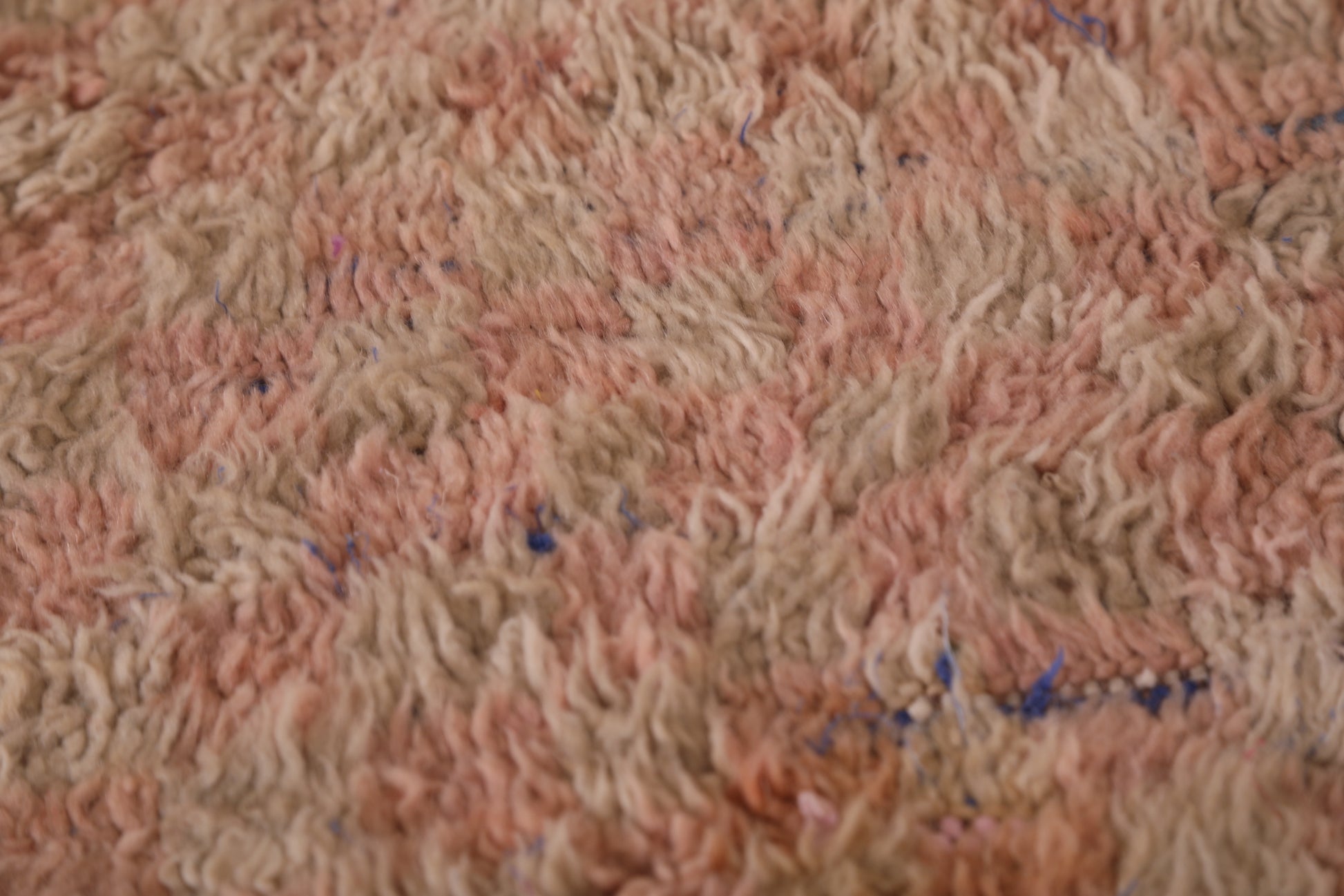 Add earthy elegance and soft texture to your space with this Long Shaggy Moroccan Rug, measuring 3 x 8.8 feet. Handcrafted in Morocco, this runner rug features a subtle geometric pattern in muted tones of beige, blush, and faded pastels. Its understated palette and cozy shag texture make it a versatile choice for long hallways, large bedrooms, or tranquil living spaces. A beautiful blend of traditional Moroccan technique and neutral modern aesthetics.