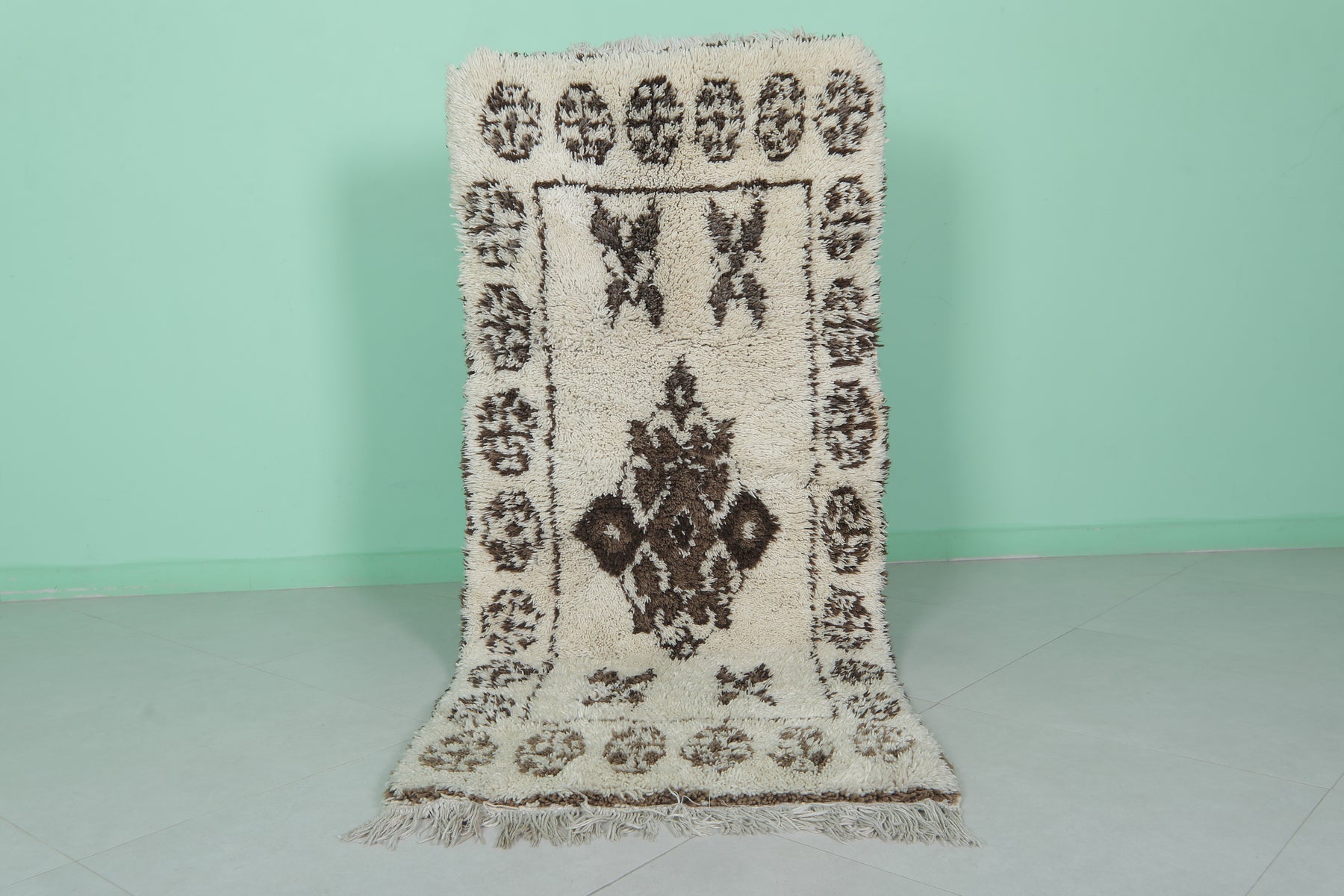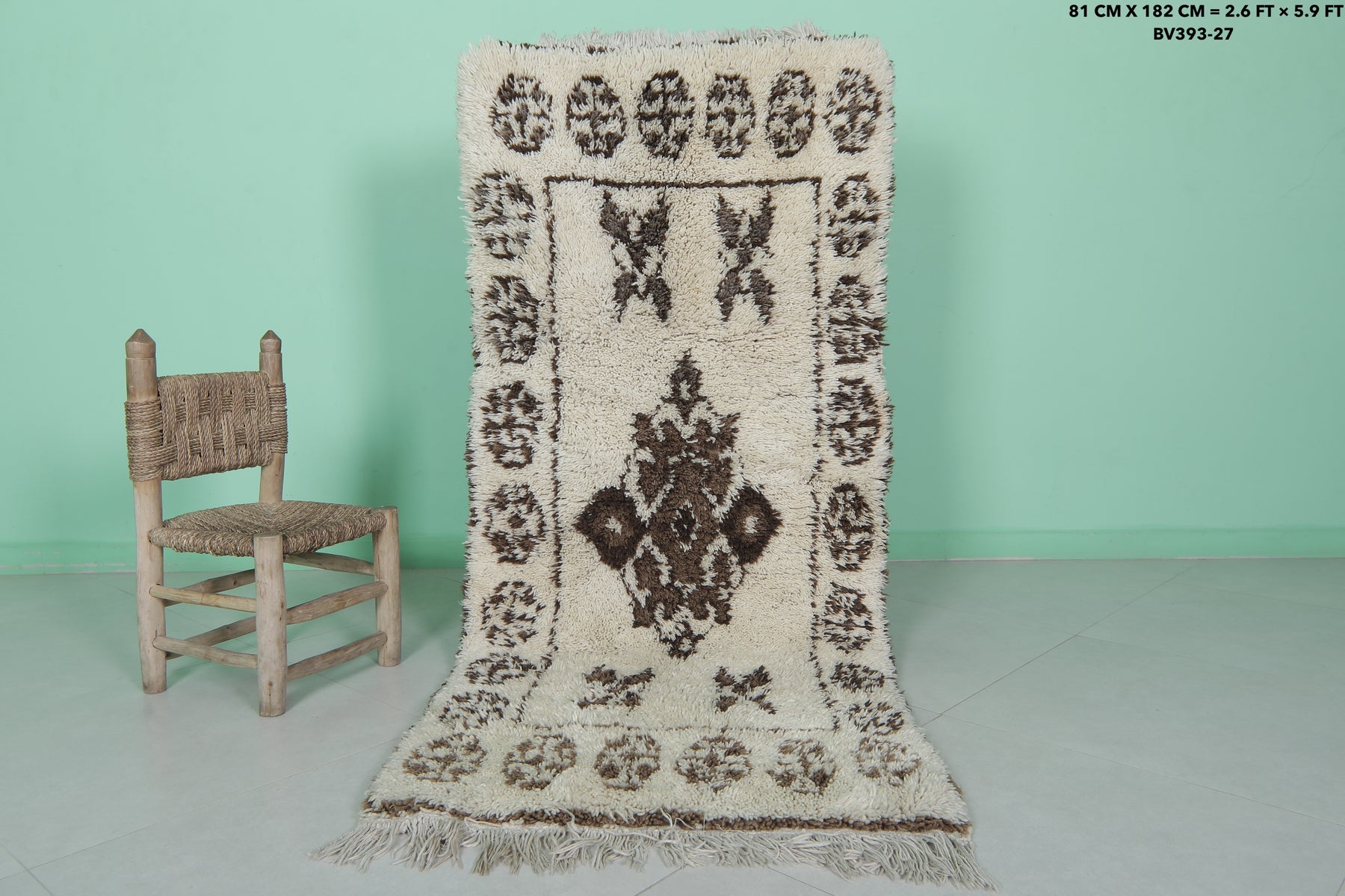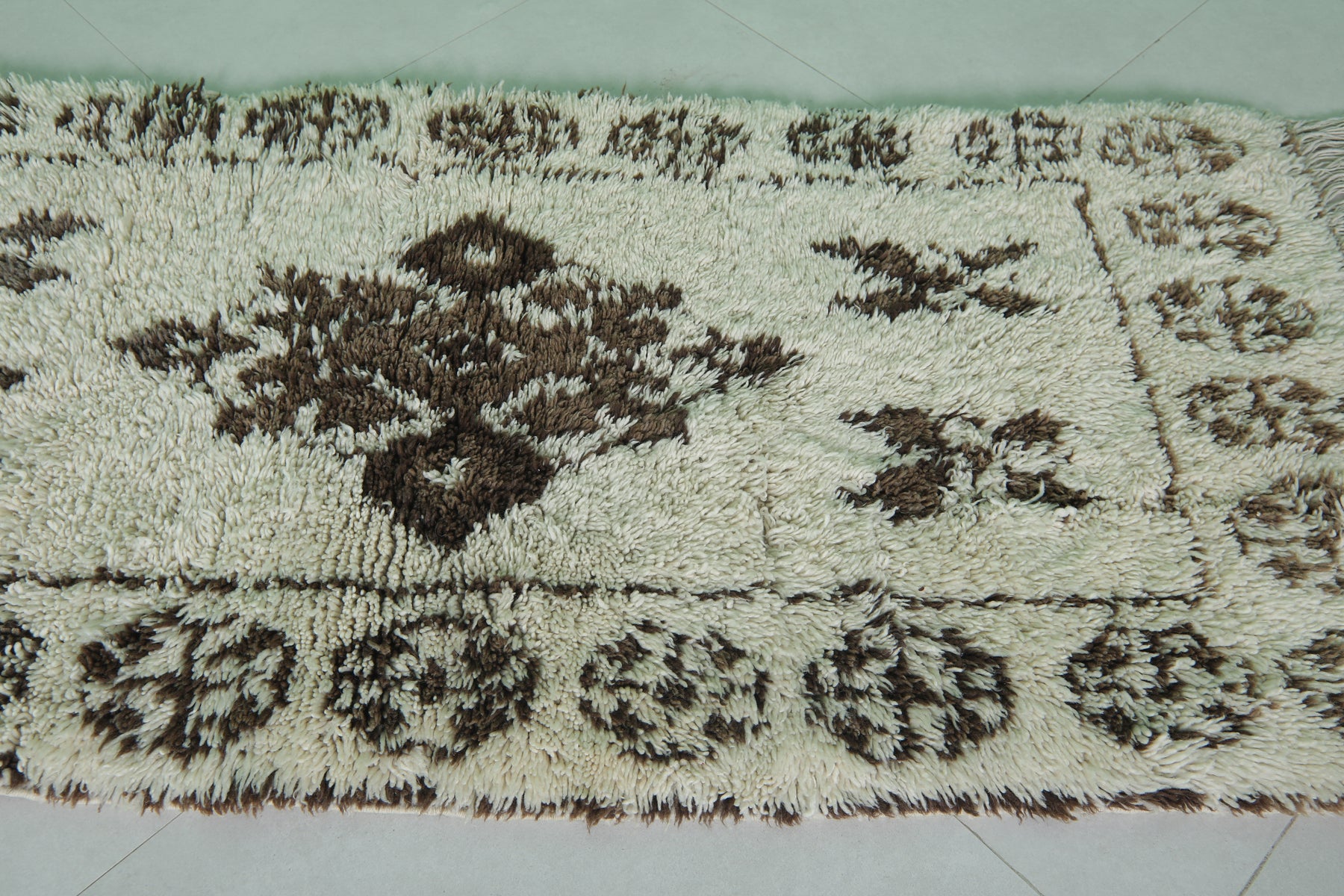 Create a cozy and timeless atmosphere with this Long Shaggy Moroccan Rug in Beige, sized at 2.6 x 5.9 feet. Handmade in Morocco, this elegant runner features classic tribal motifs in deep brown, set against a warm beige backdrop. Its thick shag texture provides comfort and warmth underfoot, making it an ideal choice for bedrooms, hallways, or tranquil reading nooks. With its earthy palette and traditional design, this rug effortlessly blends into modern, rustic, or bohemian interiors while telling a story of artisan heritage.