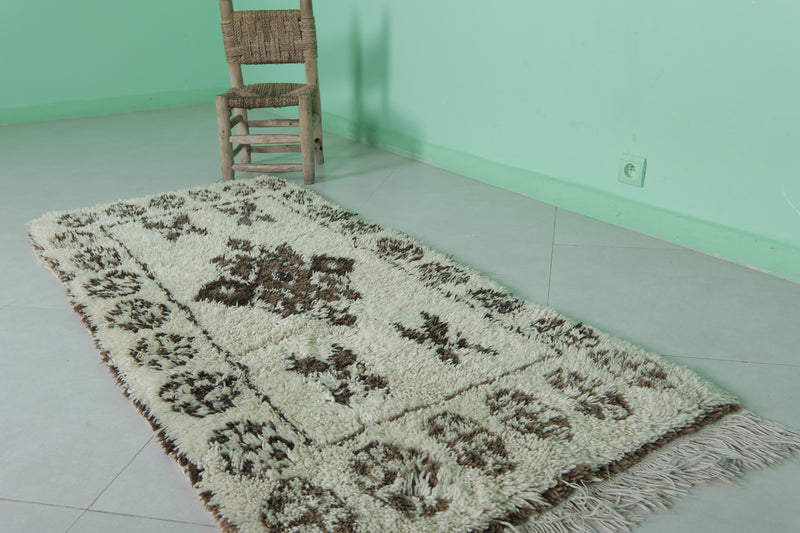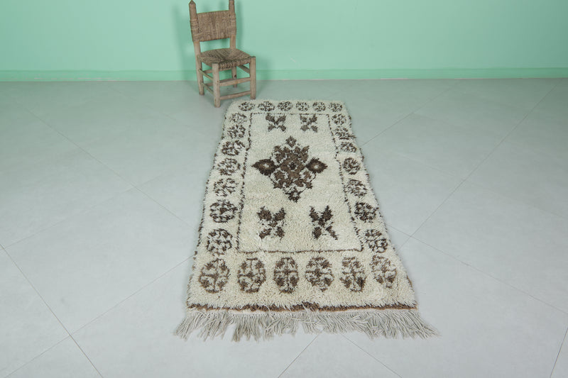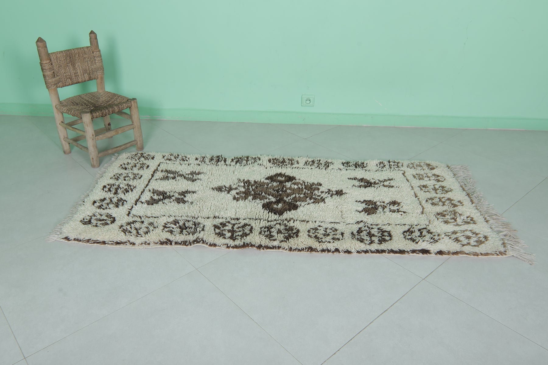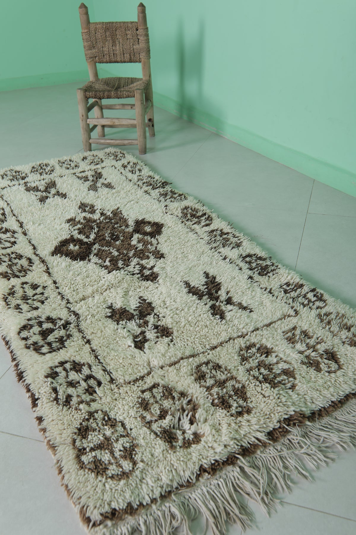 Create a cozy and timeless atmosphere with this Long Shaggy Moroccan Rug in Beige, sized at 2.6 x 5.9 feet. Handmade in Morocco, this elegant runner features classic tribal motifs in deep brown, set against a warm beige backdrop. Its thick shag texture provides comfort and warmth underfoot, making it an ideal choice for bedrooms, hallways, or tranquil reading nooks. With its earthy palette and traditional design, this rug effortlessly blends into modern, rustic, or bohemian interiors while telling a story of artisan heritage.