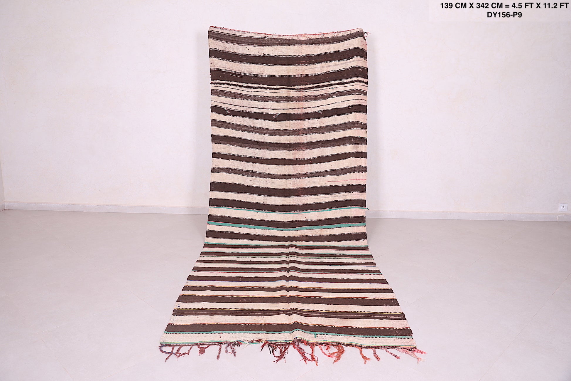 Long Striped Moroccan Kilim Rug - Black and White Design - 4.5x11 ft