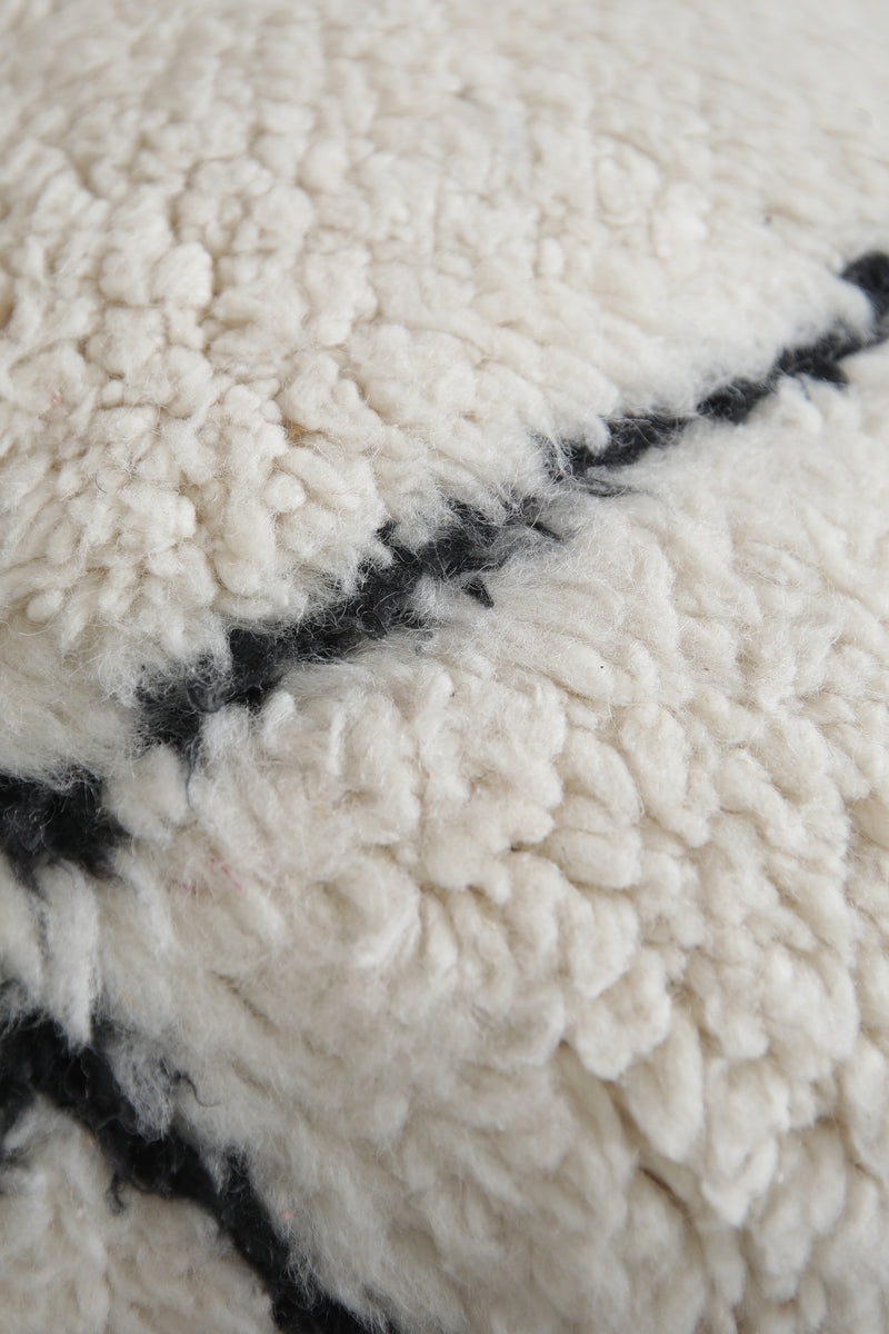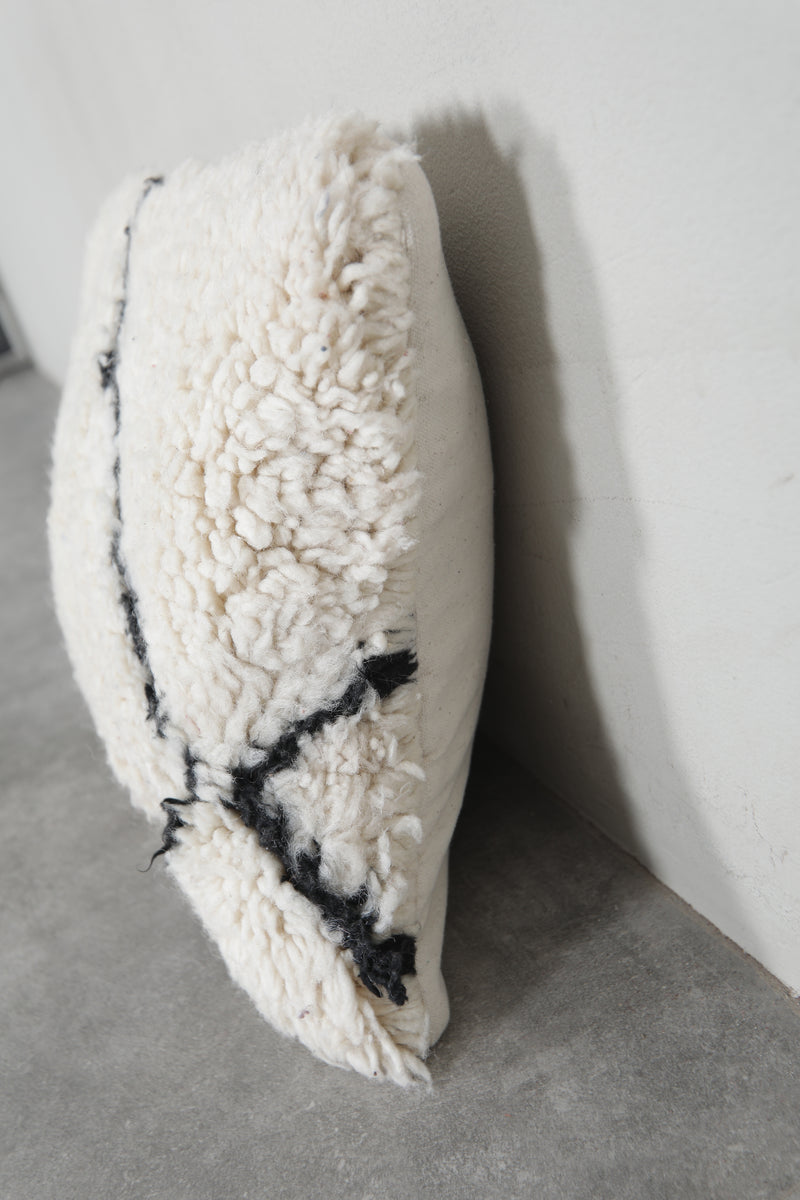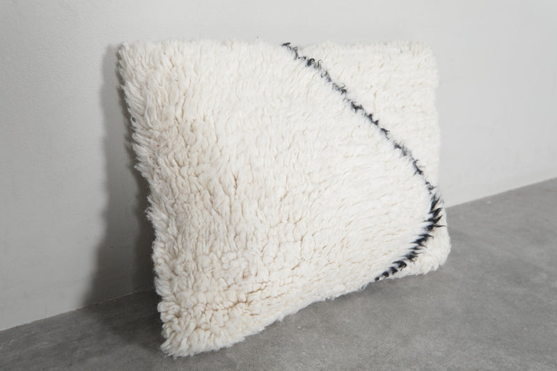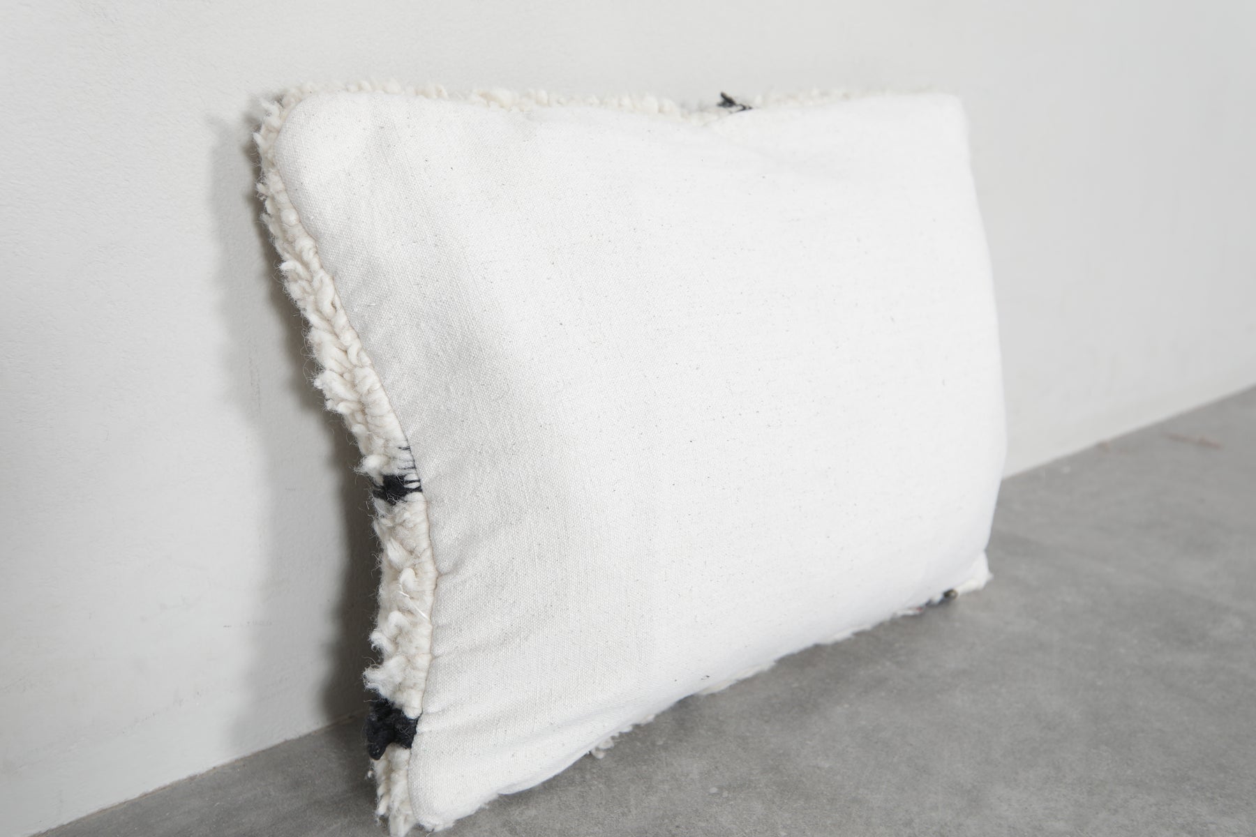 Luxurious Moroccan Wool Pillow in Cream with Black Accent - 16.5 x 22 Inches
