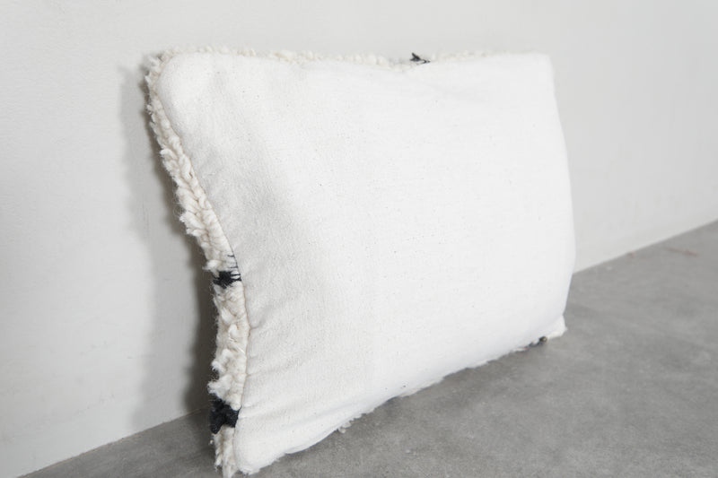 Luxurious Moroccan Wool Pillow in Cream with Black Accent - 16.5 x 22 Inches - kilim pillow