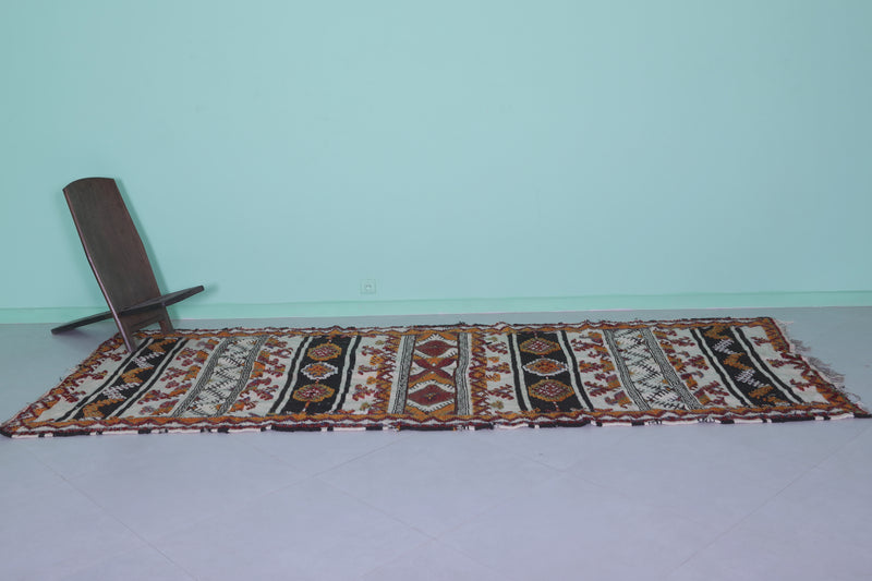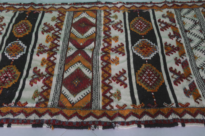 Add a touch of Moroccan artistry to your space with this exquisite Azilal rug, measuring 4.4 FT x 10.9 FT. This handwoven vintage runner features an intricate pattern of geometric and floral motifs in warm tones of black, white, and earthy shades, bringing depth and character to your home décor. Perfect as a statement piece for hallways, dining areas, or living spaces, this Azilal rug combines traditional craftsmanship with a timeless design. Its unique size and striking details make it an ideal choice for creating a cozy yet elegant ambiance.