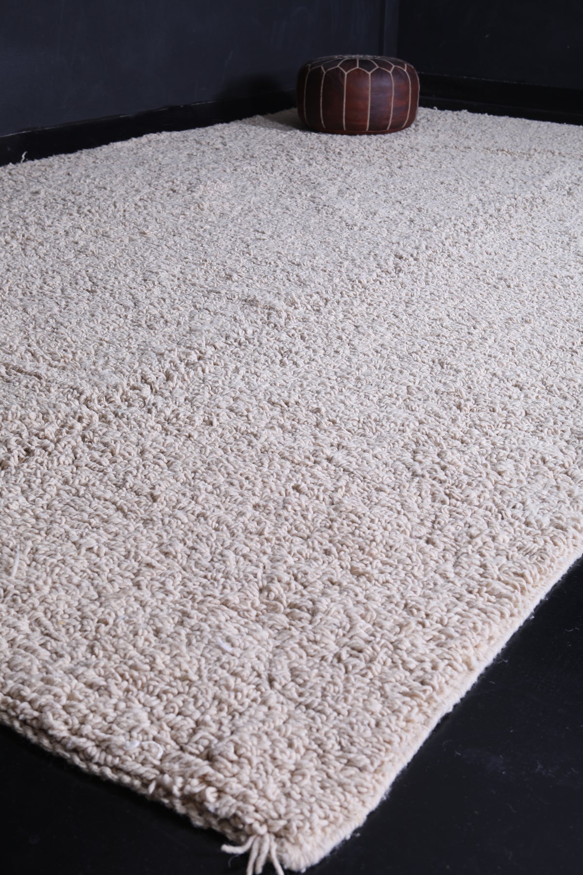 Add a touch of sophistication to your space with this minimalist cream Moroccan rug, handcrafted to give any room a modern feel with a timeless twist. The plushest of rugs, made from 100% natural wool in soft neutral cream tones, will blend into any style, whether boho-chic or contemporary minimalism. From living rooms and bedrooms to studios, feel the subtle texture and the richness of this premium-quality rug as it brings warmth and coziness to your home. Ethically made by skilled Moroccan artisans, this area rug is a sustainable statement piece with eternal elegance.