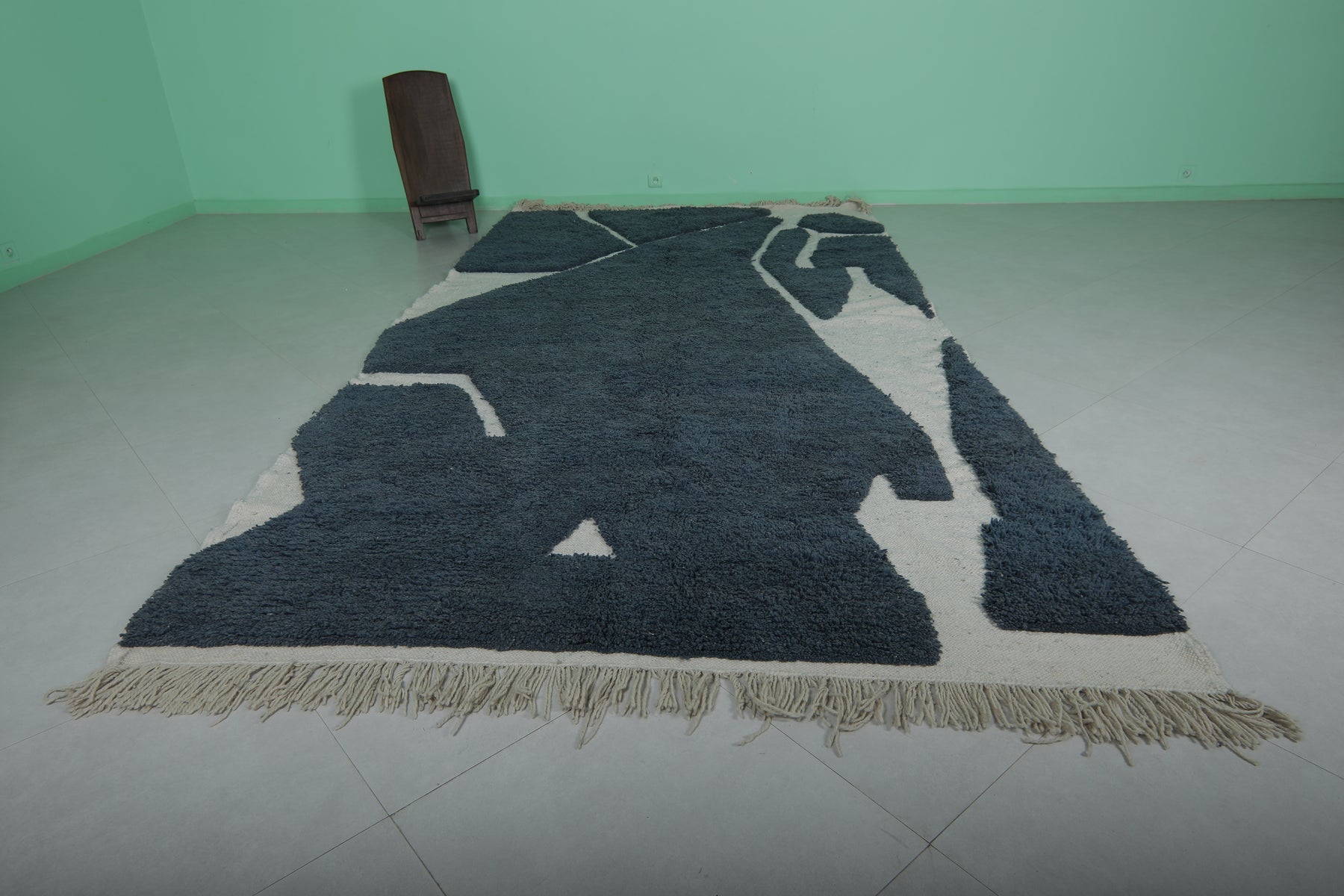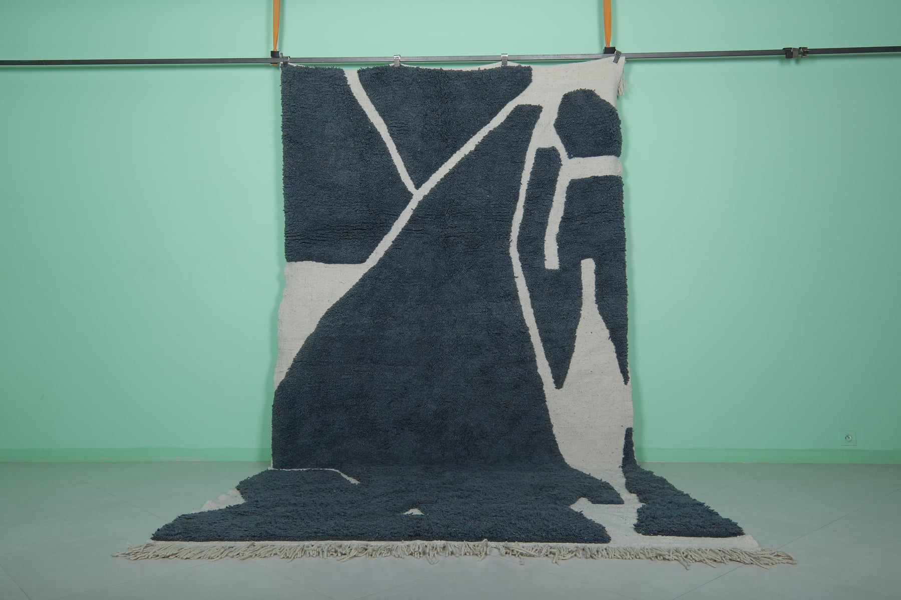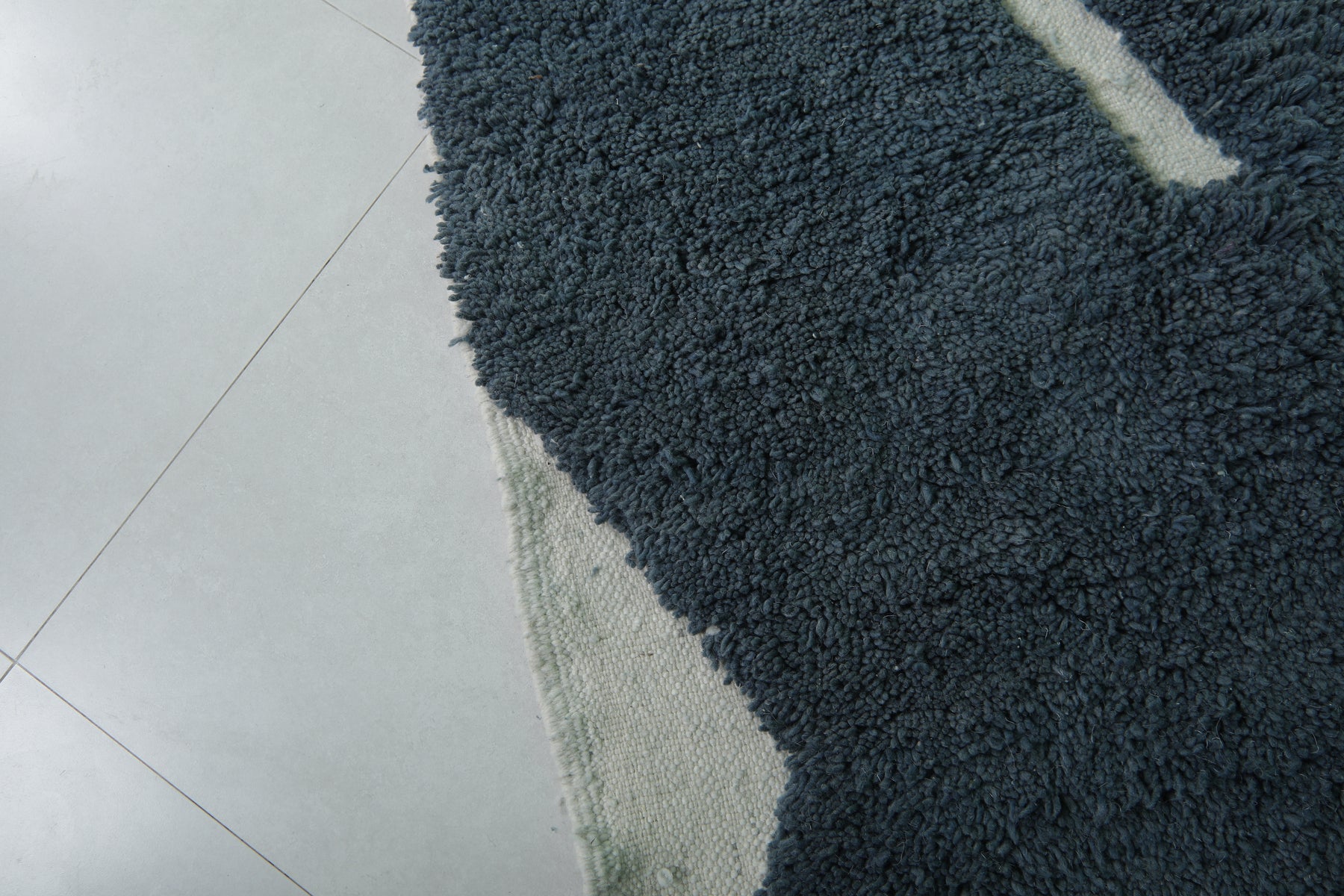 Elevate your interiors with this bold Moroccan Beni Ourain Rug, sized at 7 x 13.1 feet (216 CM x 400 CM). Featuring a striking abstract design in blue and white, this handwoven masterpiece blends traditional craftsmanship with modern artistic flair.