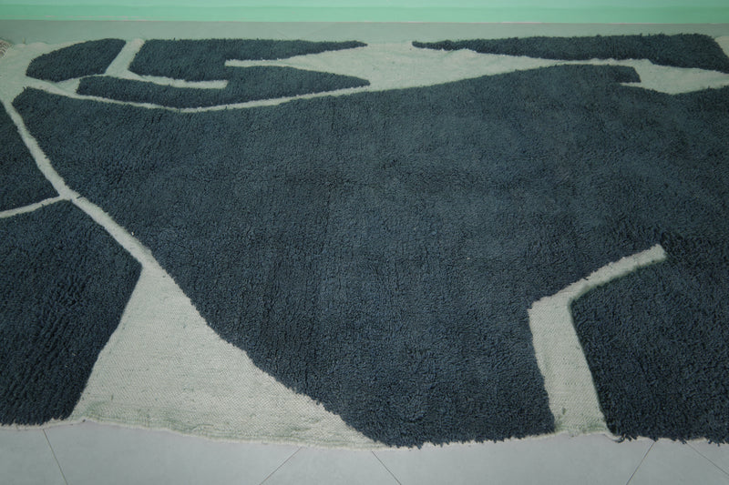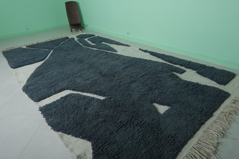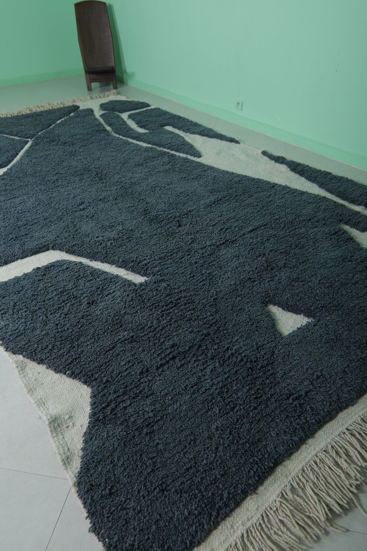 Moroccan Beni Ourain Rug 7 x 13.1 Ft - Blue and White Handmade Rug