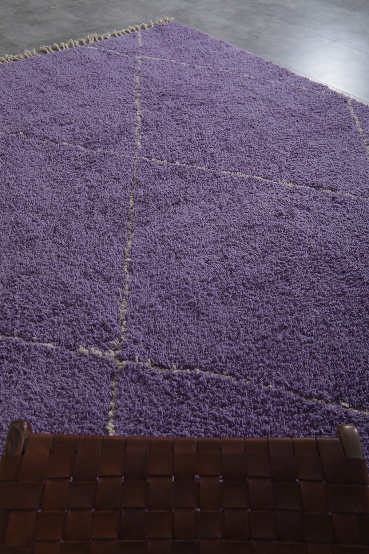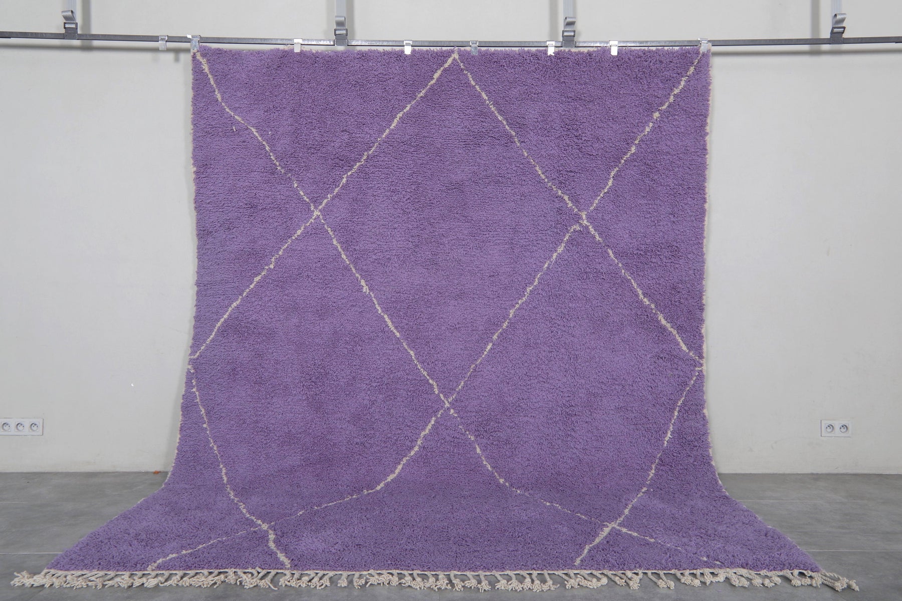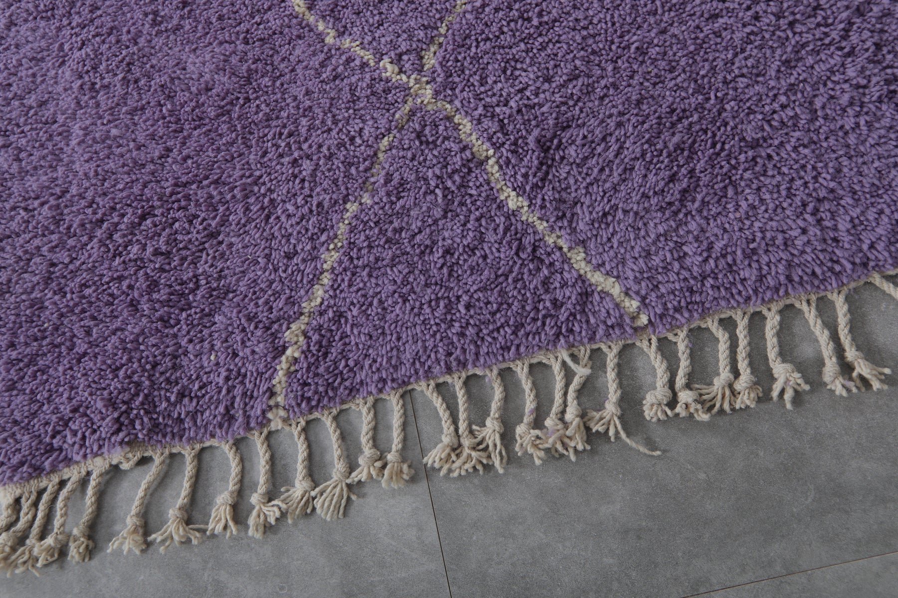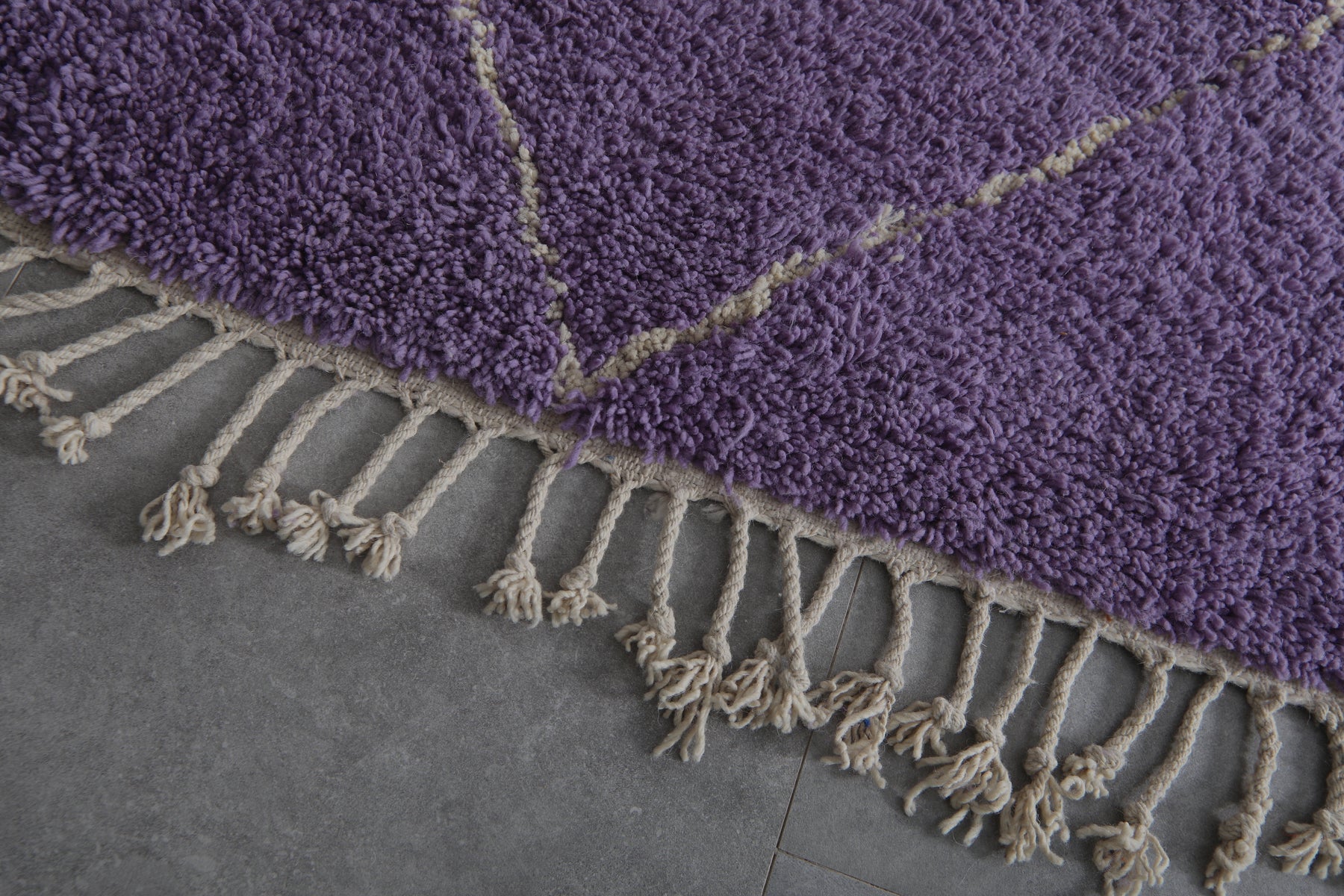 Looking to infuse color and warmth into your home? This Purple Moroccan Trellis Rug is the perfect balance of tradition and modern flair. Handwoven by skilled Moroccan artisans, its rich purple hue is complemented by delicate white trellis patterns, adding a stylish yet timeless touch to any room.
