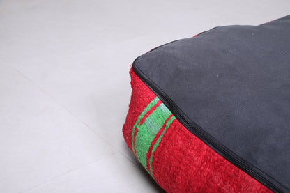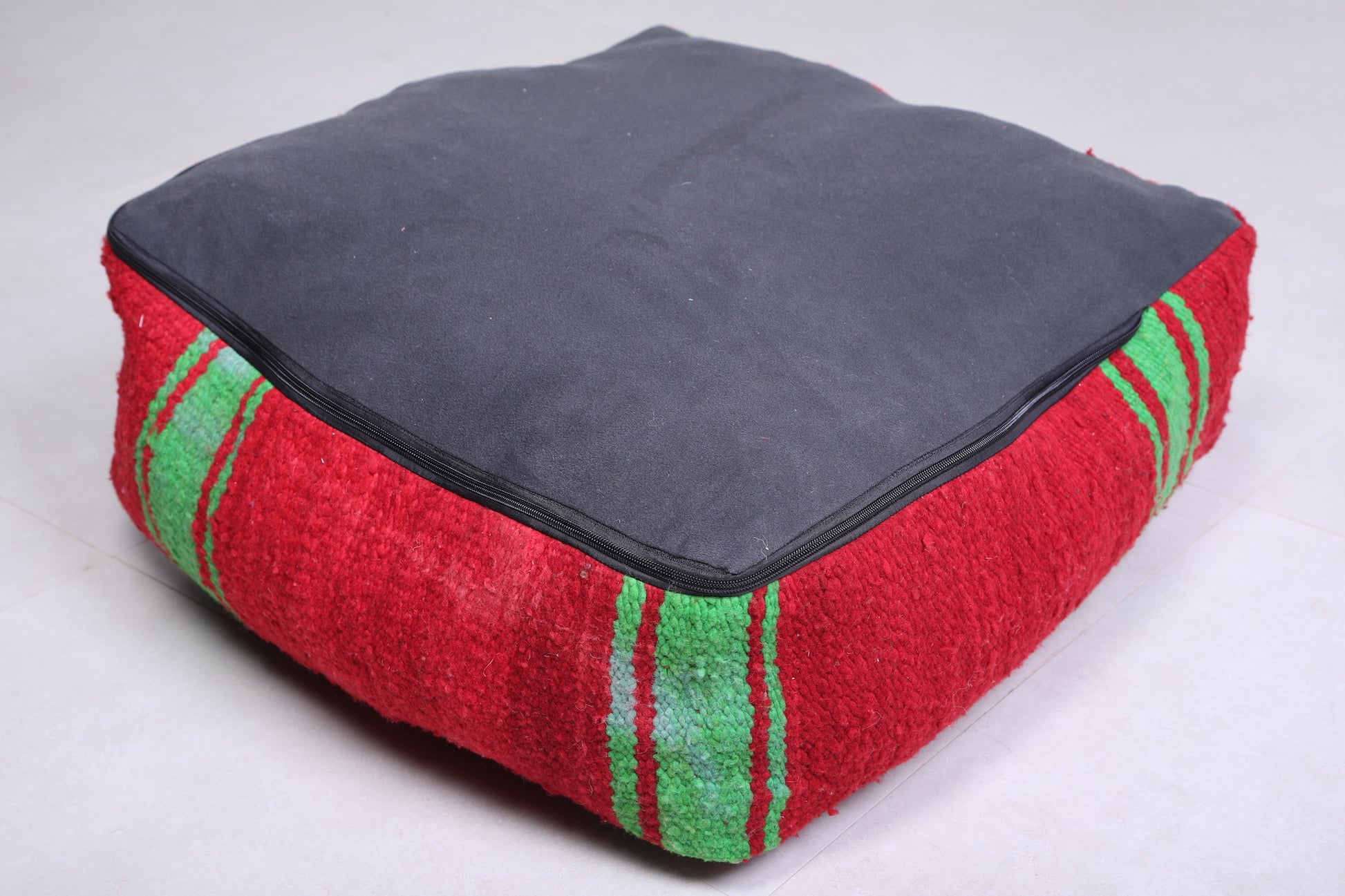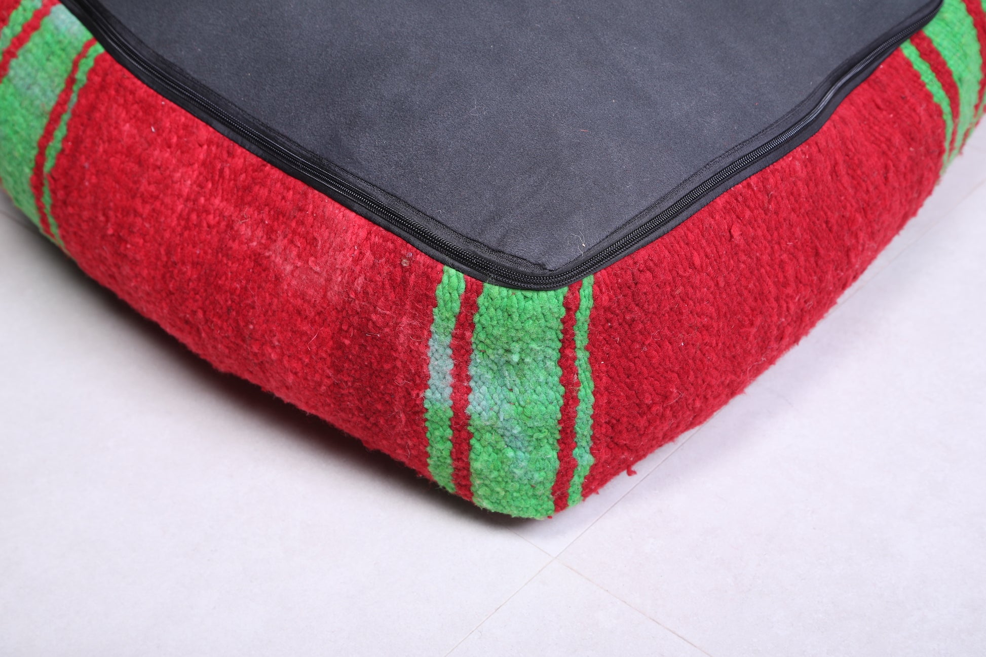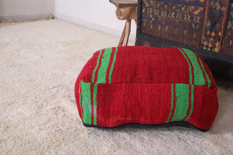 Elevate your floor space with this bold Moroccan Berber pouf, handwoven from a vintage wool rug in vivid red and green tones. A simple yet powerful design that makes a statement in boho, eclectic, or minimalist interiors.