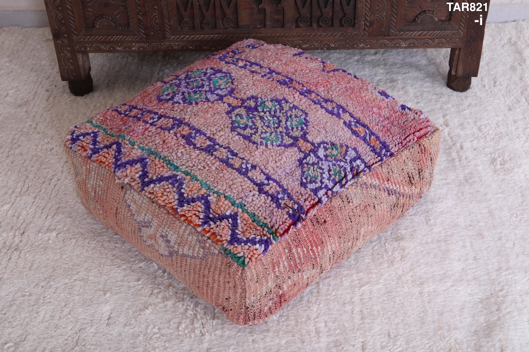 This Beautiful Moroccan rug pouf is made from a Very Old Moroccan rug.