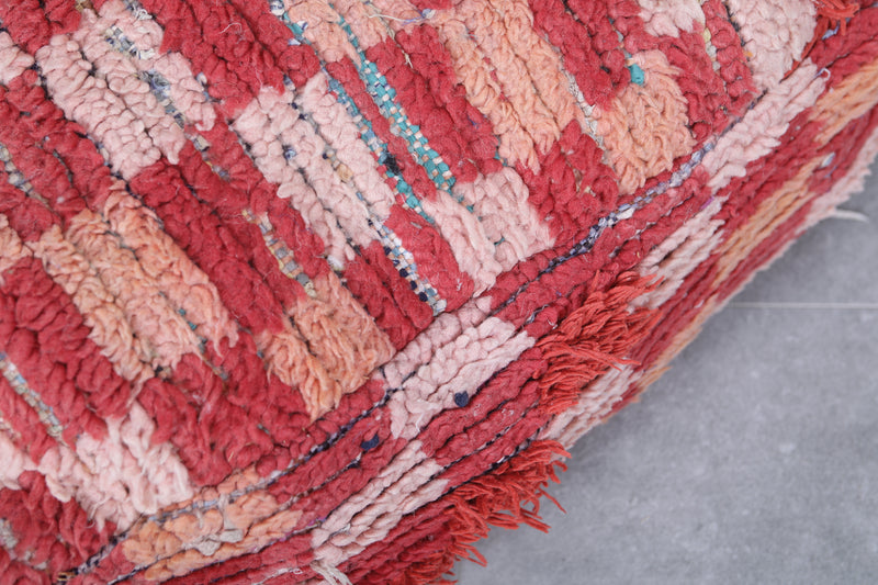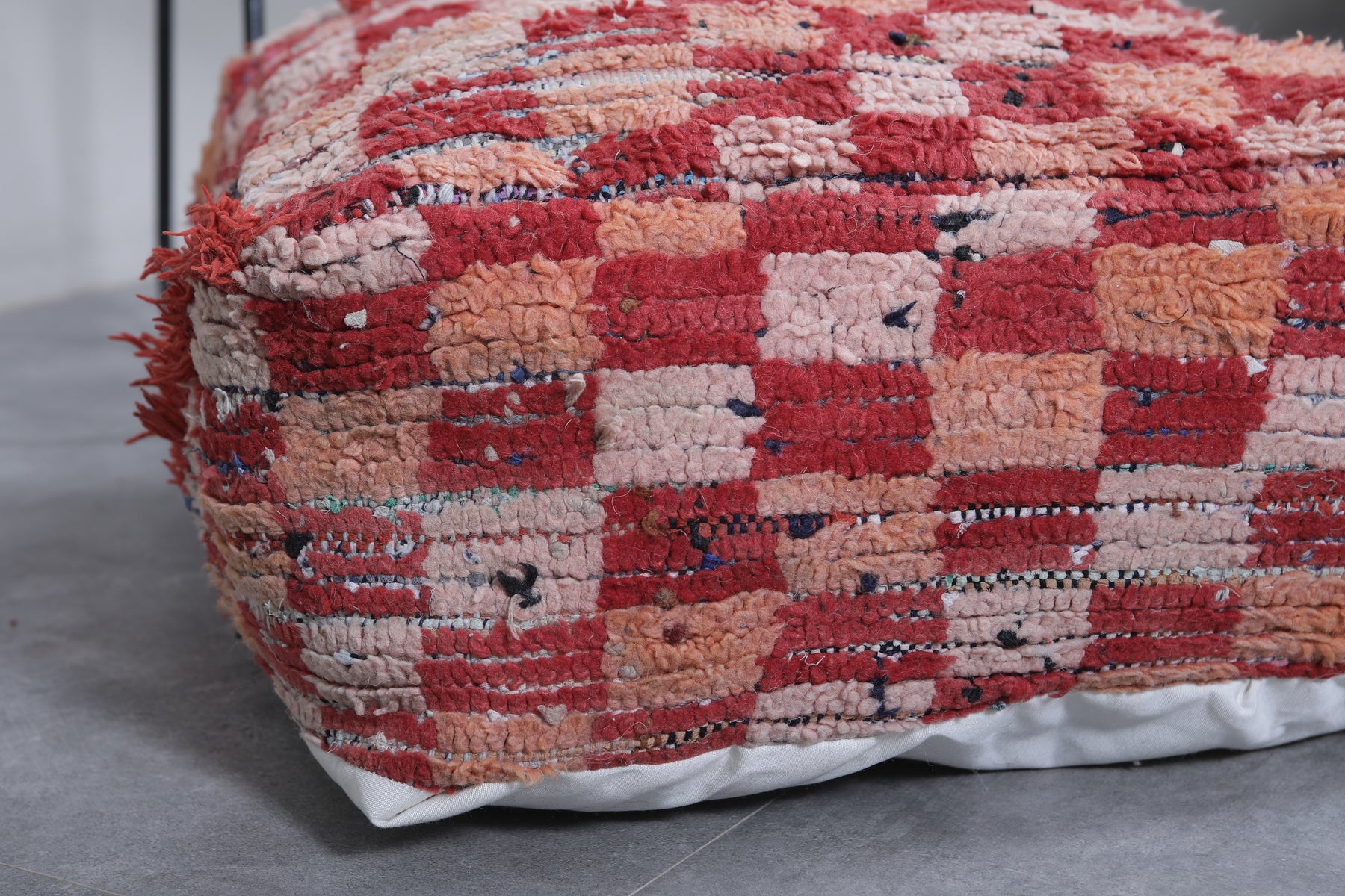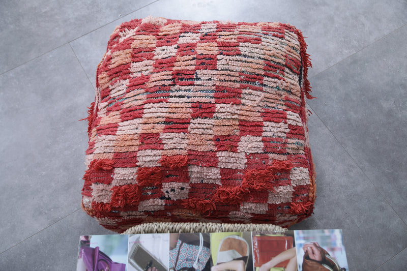 Transform your space with this Moroccan Vintage Ottoman Pouf, a true work of art handwoven with striking tribal geometric designs. The pouf features a mesmerizing tapestry of diamonds, chevrons, and zigzags, woven in rich tones of deep red, warm cream, and black, creating a captivating contrast. These bold patterns evoke the spirit of Moroccan heritage while adding a layer of texture and depth to your room. Perfect for extra seating, a footrest, or as a unique statement piece, this pouf blends both artistry and functionality.