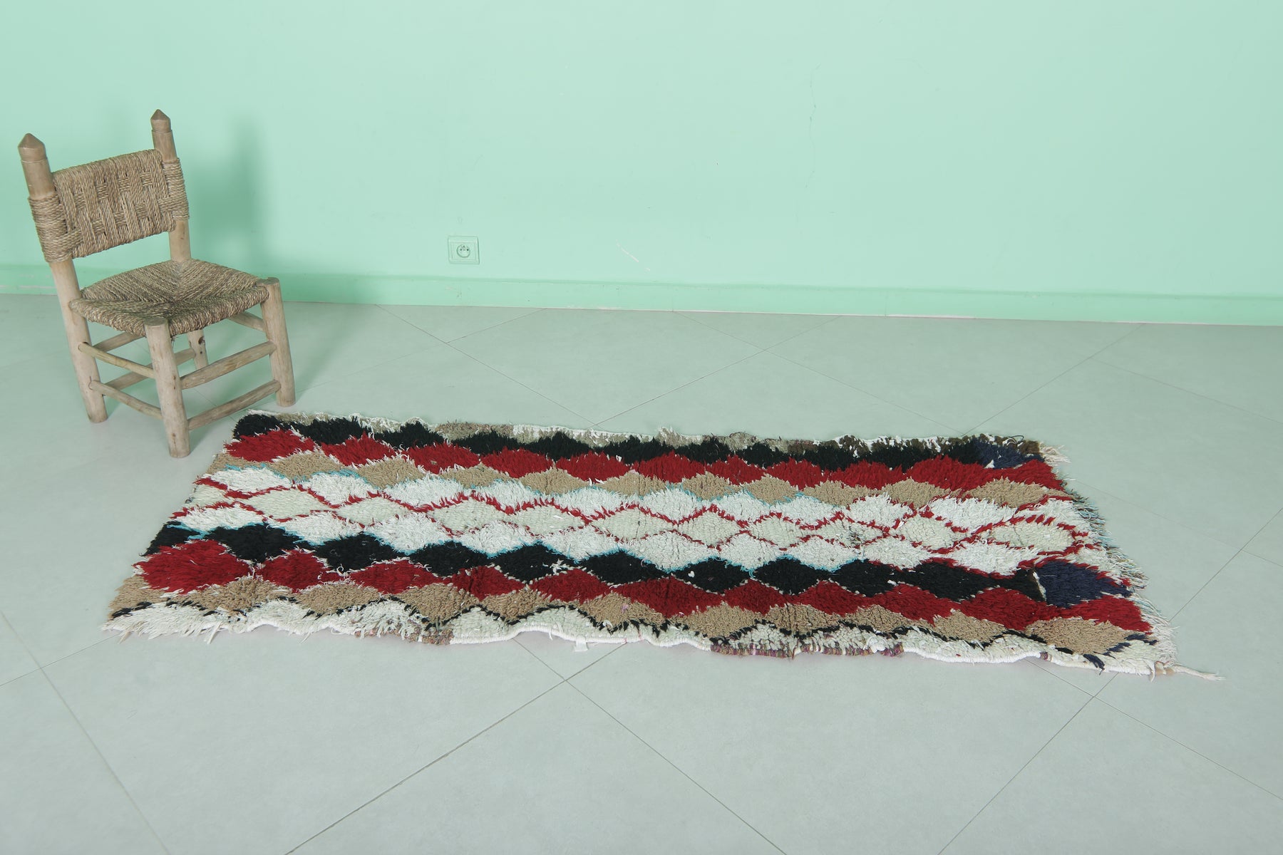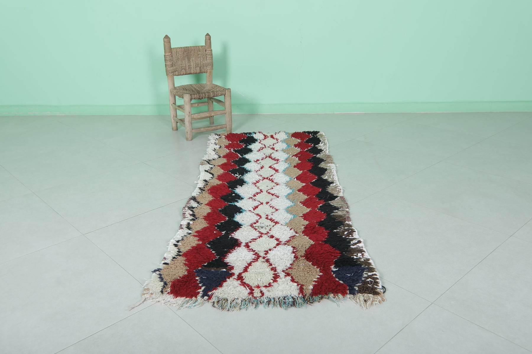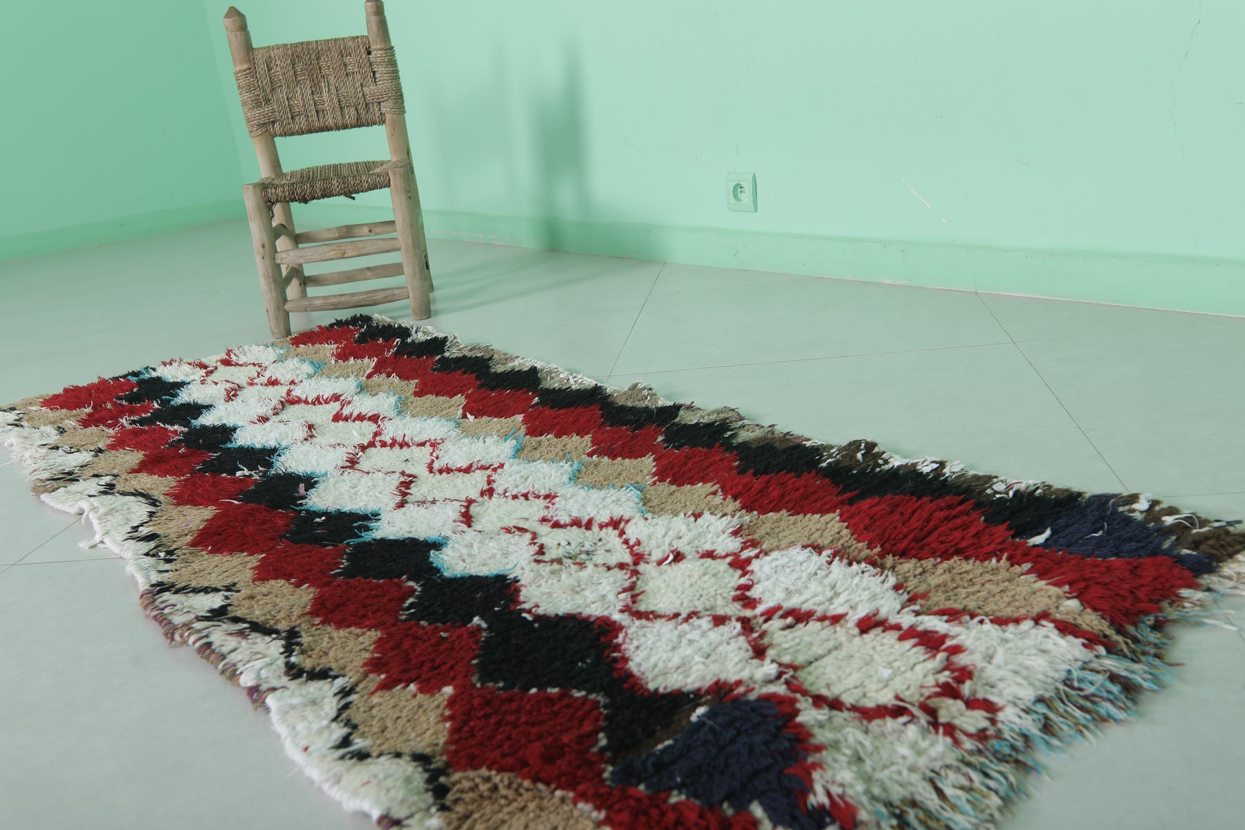 Moroccan Berber Rug with Diamond Pattern - 2.2 X 5.9 Feet - Boucherouite Rugs