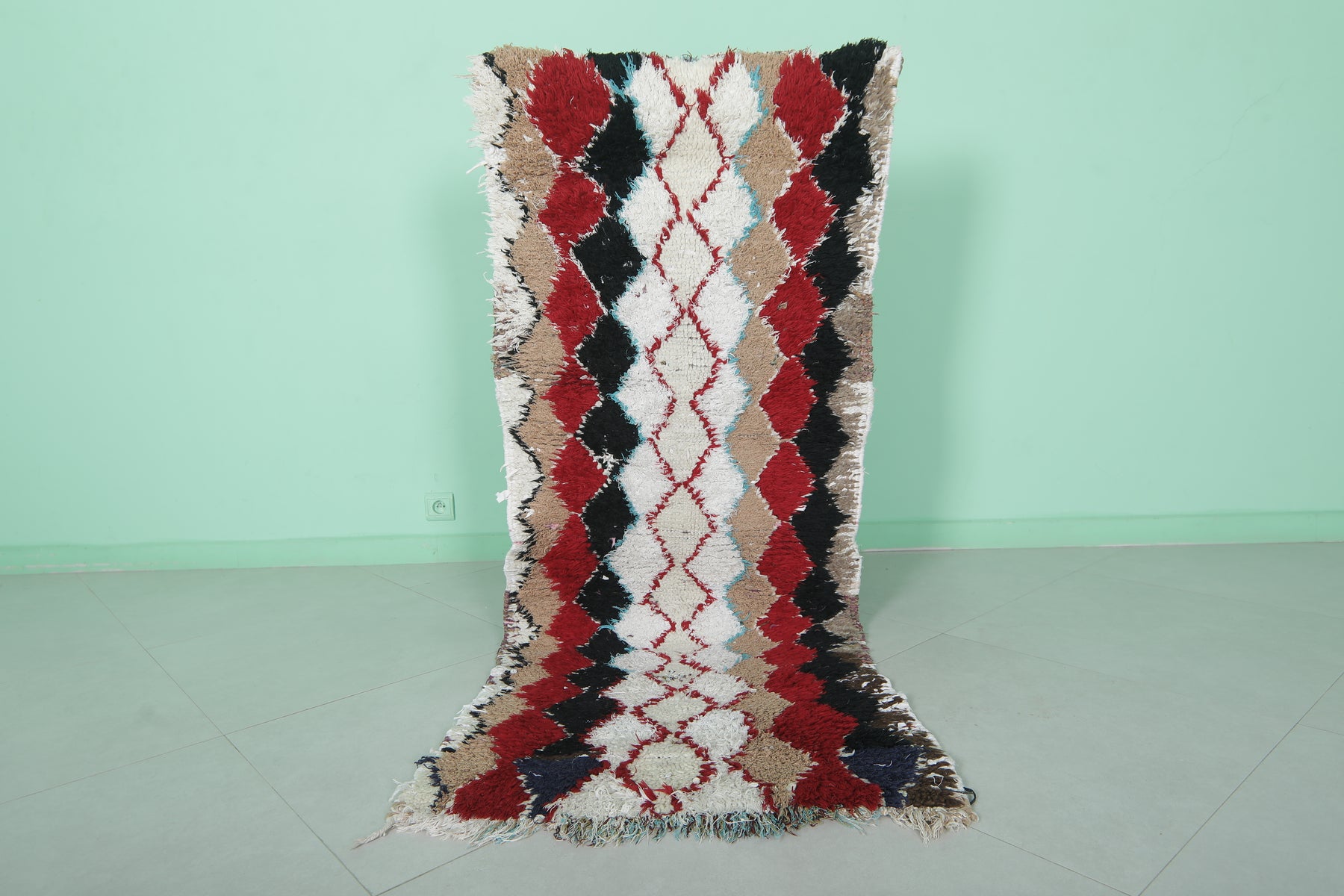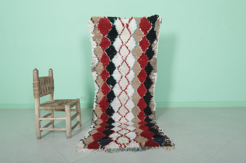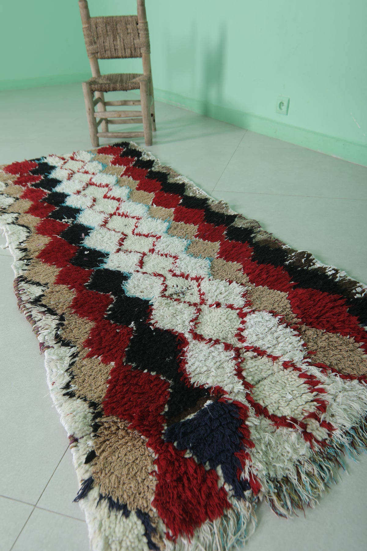 Moroccan Berber Rug with Diamond Pattern - 2.2 X 5.9 Feet - Boucherouite Rugs
