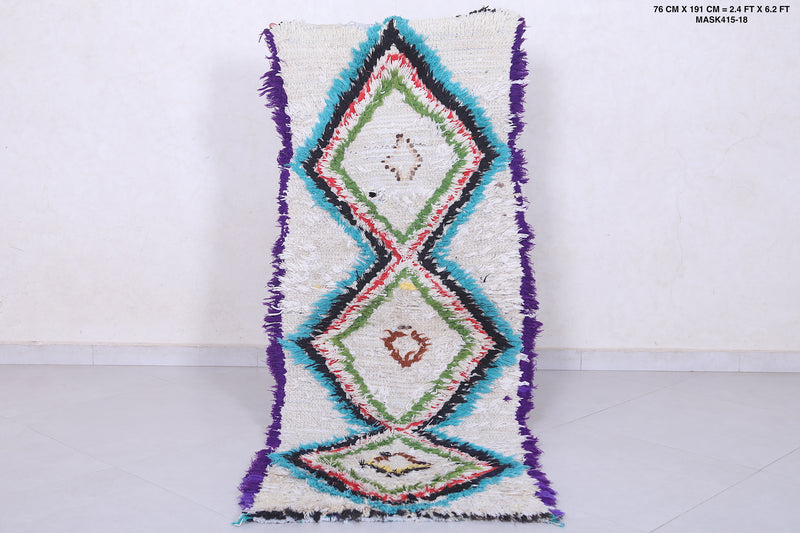 Colorful Moroccan Berber Rug - 2.4 x 6.2 Feet - Boucherouite Rugs