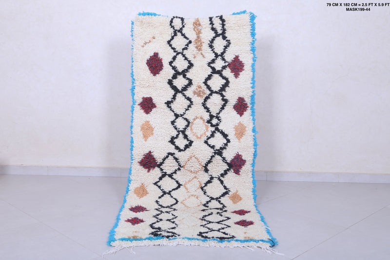 Moroccan Berber Rug – 2.5 x 5.9 Feet – Abstract Handwoven Geometric Design