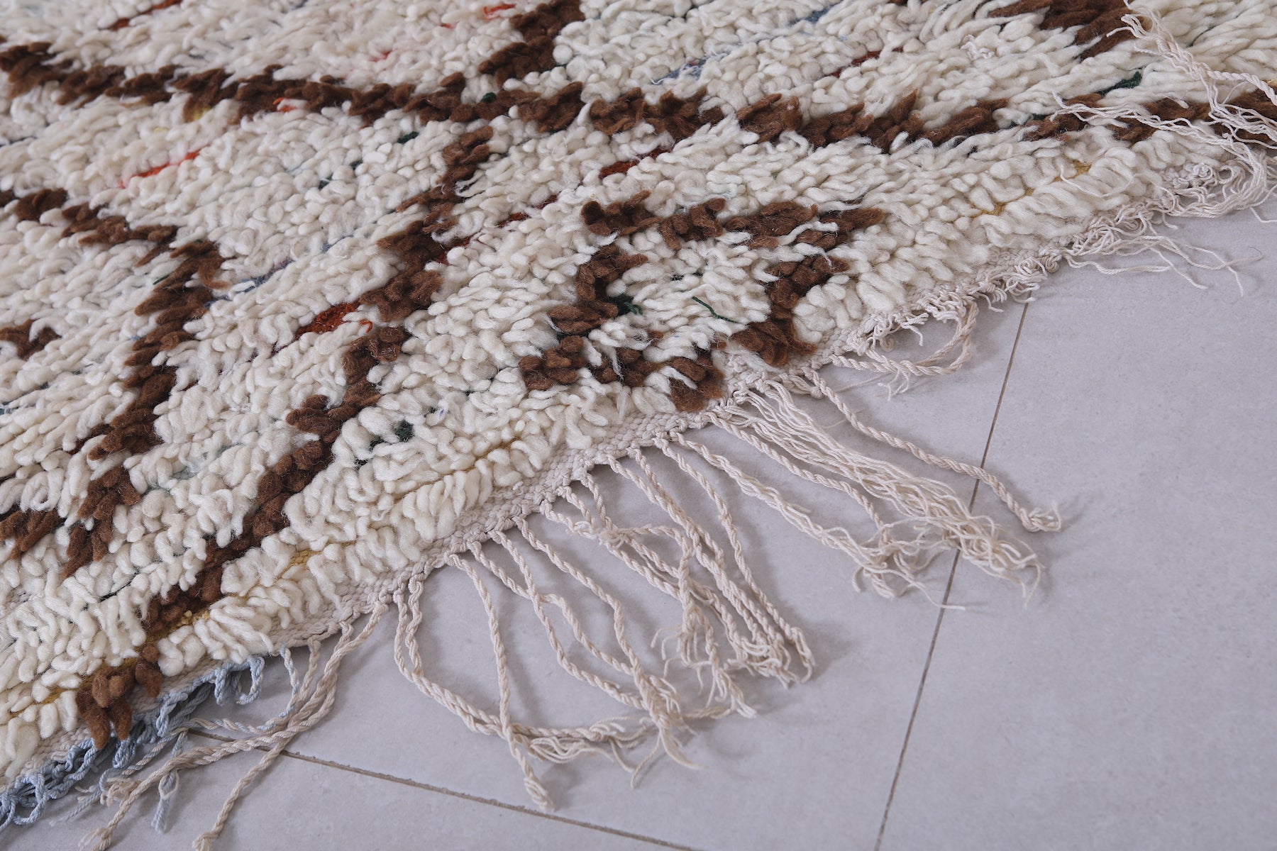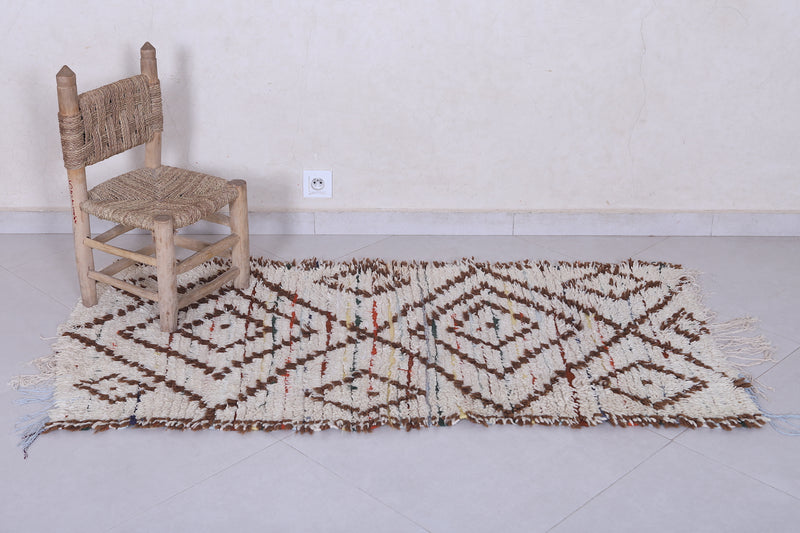 Transform your space with this stunning Moroccan Berber rug, measuring 2.6 x 5.3 feet. Featuring intricate diamond patterns in rich brown tones, this rug brings timeless elegance to any decor. The design is accented with subtle pops of color, including hints of orange, yellow, and blue, adding depth and character to its traditional aesthetic. Crafted from premium materials, this rug combines comfort and durability, making it perfect for living rooms, bedrooms, or entryways. Its unique patterns and warm neutral palette make it a versatile piece for both modern and rustic interiors.