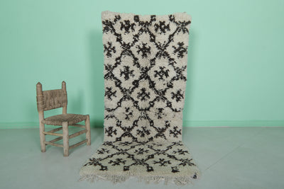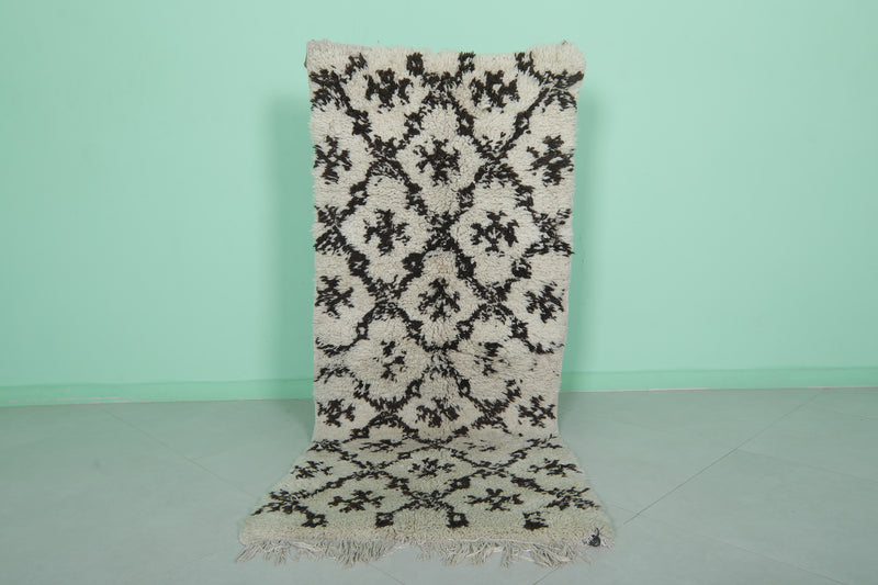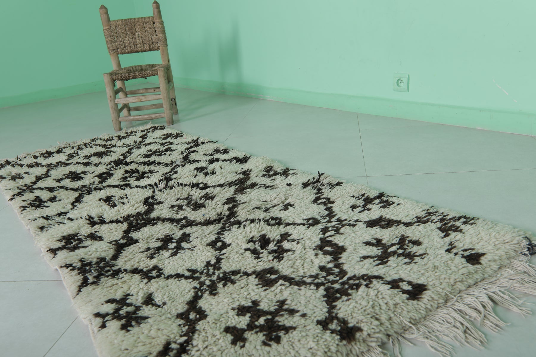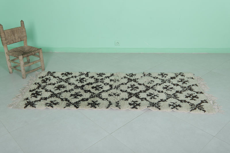 Moroccan Berber Rug with Black Floral Motif - 2.6 x 6.3 Feet