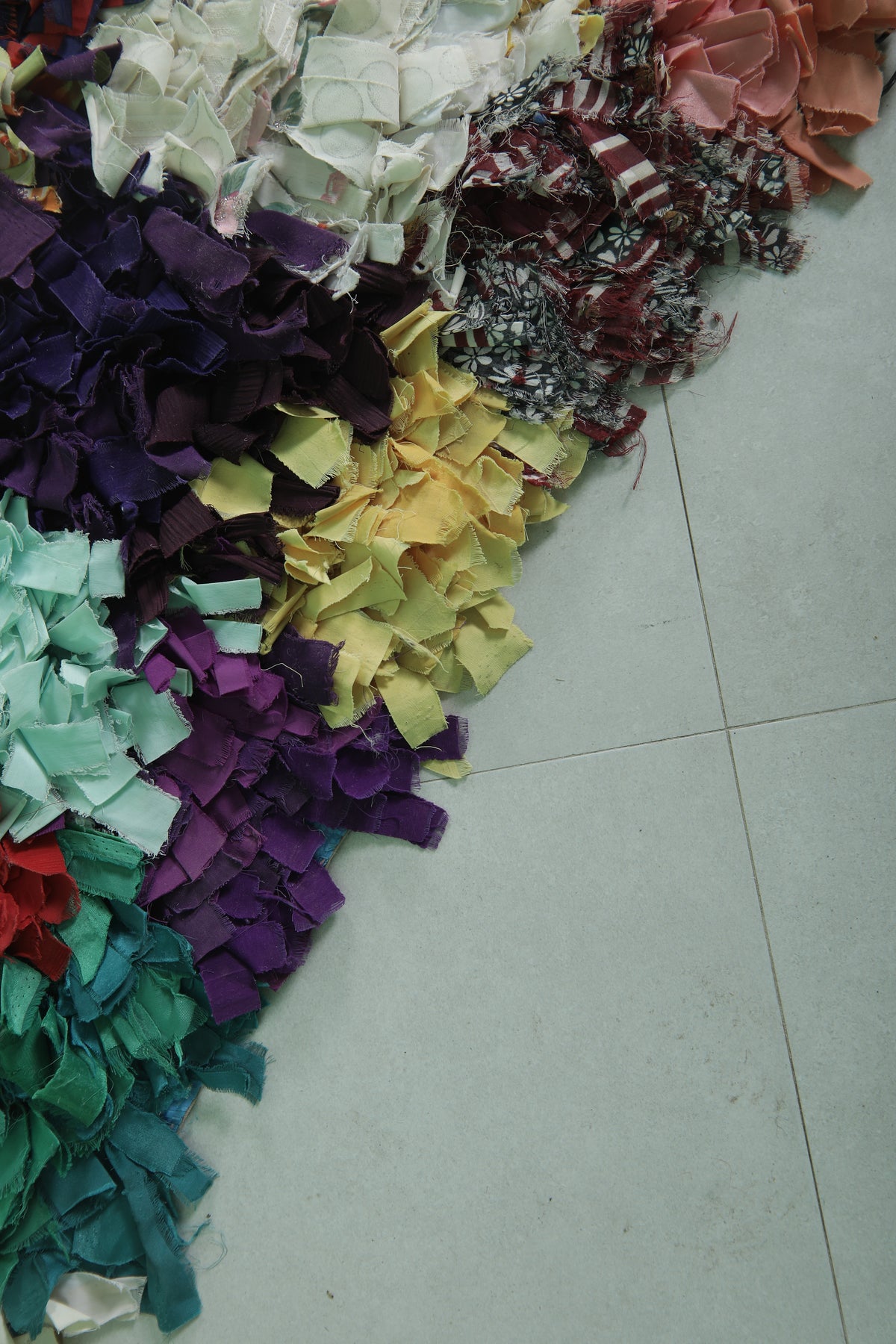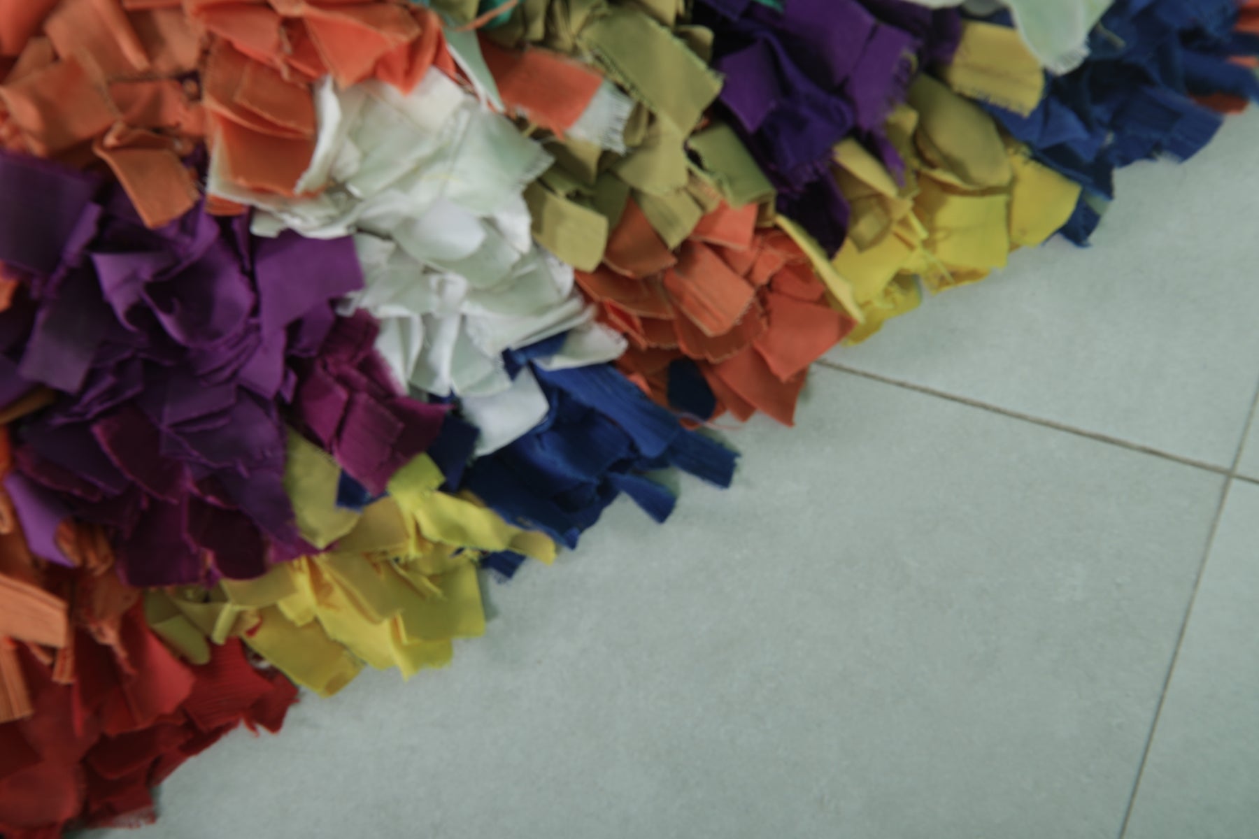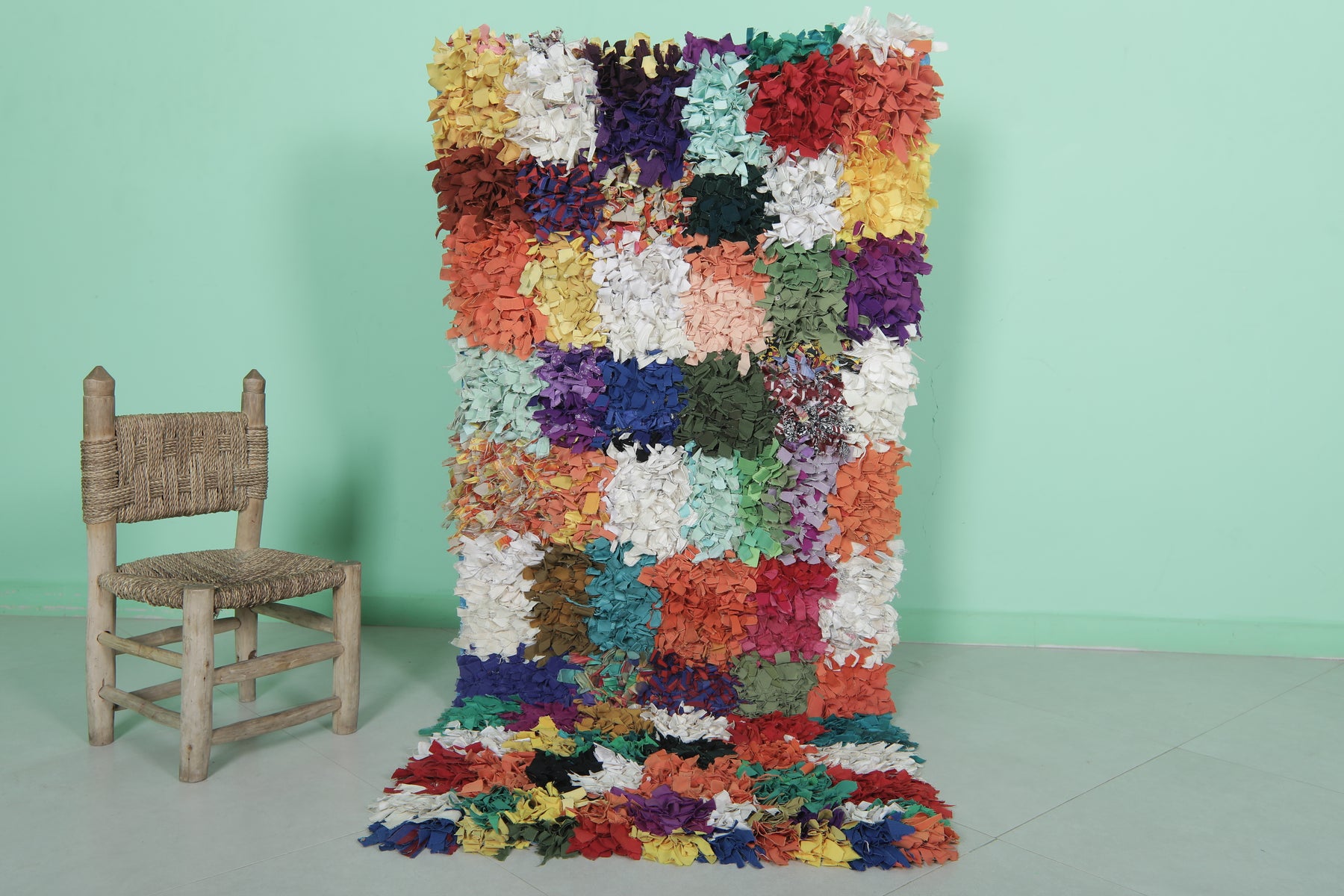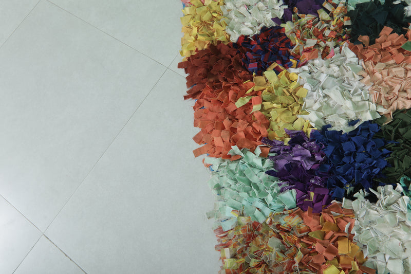 Add a splash of color to your space with this vibrant Moroccan Berber rug, measuring 2.7 x 6.2 feet. Featuring a bold patchwork design with colorful textured fabric pieces, this rug showcases a lively mix of reds, blues, greens, yellows, and purples. The layered and tufted texture adds depth, making it both a functional and artistic statement piece. Perfect for eclectic, bohemian, or contemporary decor styles.