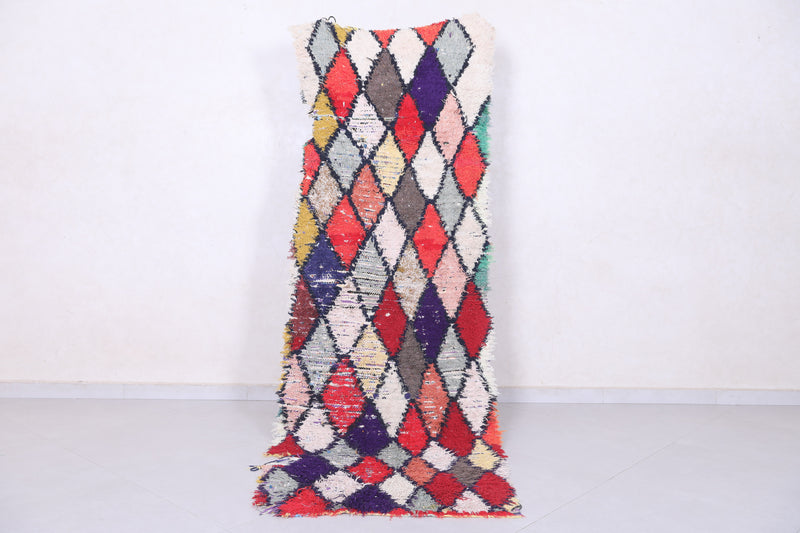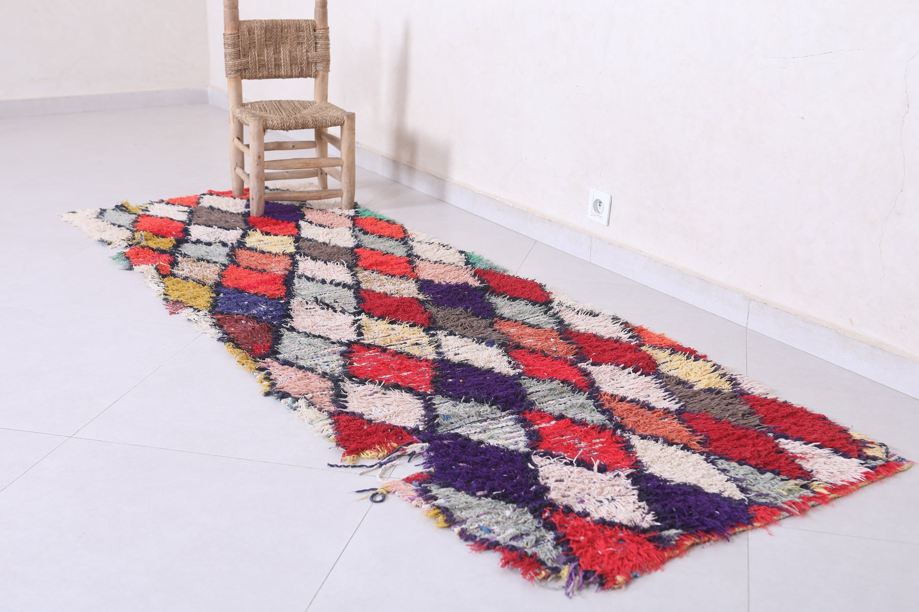 Enhance your décor with this colorful Moroccan Berber Rug, sized at 2.7 x 8.1 feet. Its unique diamond pattern features vibrant shades of red, purple, yellow, and earthy tones, creating a bold and lively centerpiece. Handwoven with care, this rug is a testament to traditional Moroccan craftsmanship, combining durability with artistic beauty. Perfect for hallways, living rooms, or entryways, it adds a touch of cultural charm to any space.