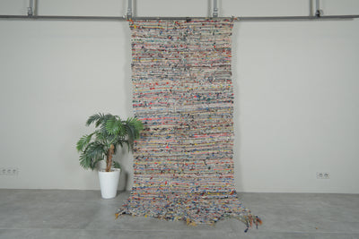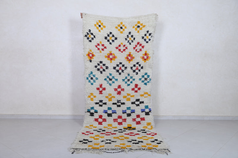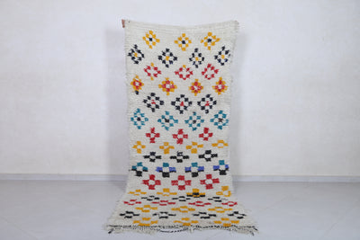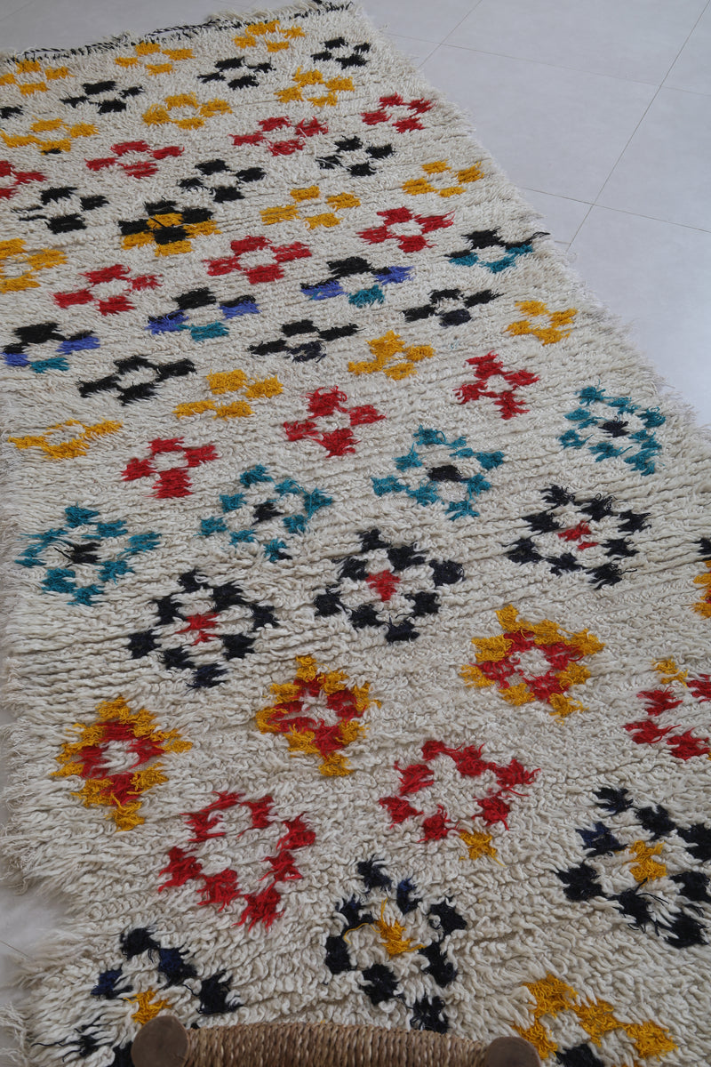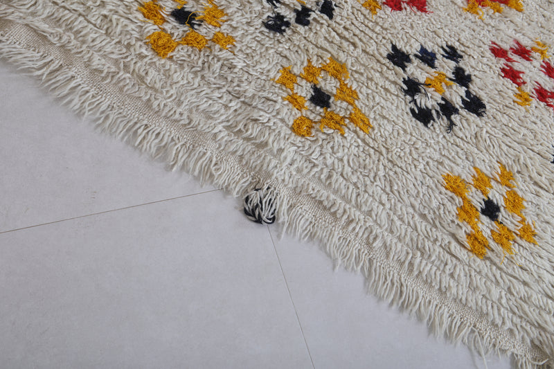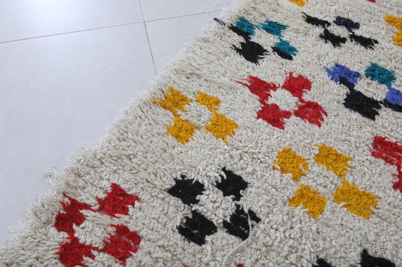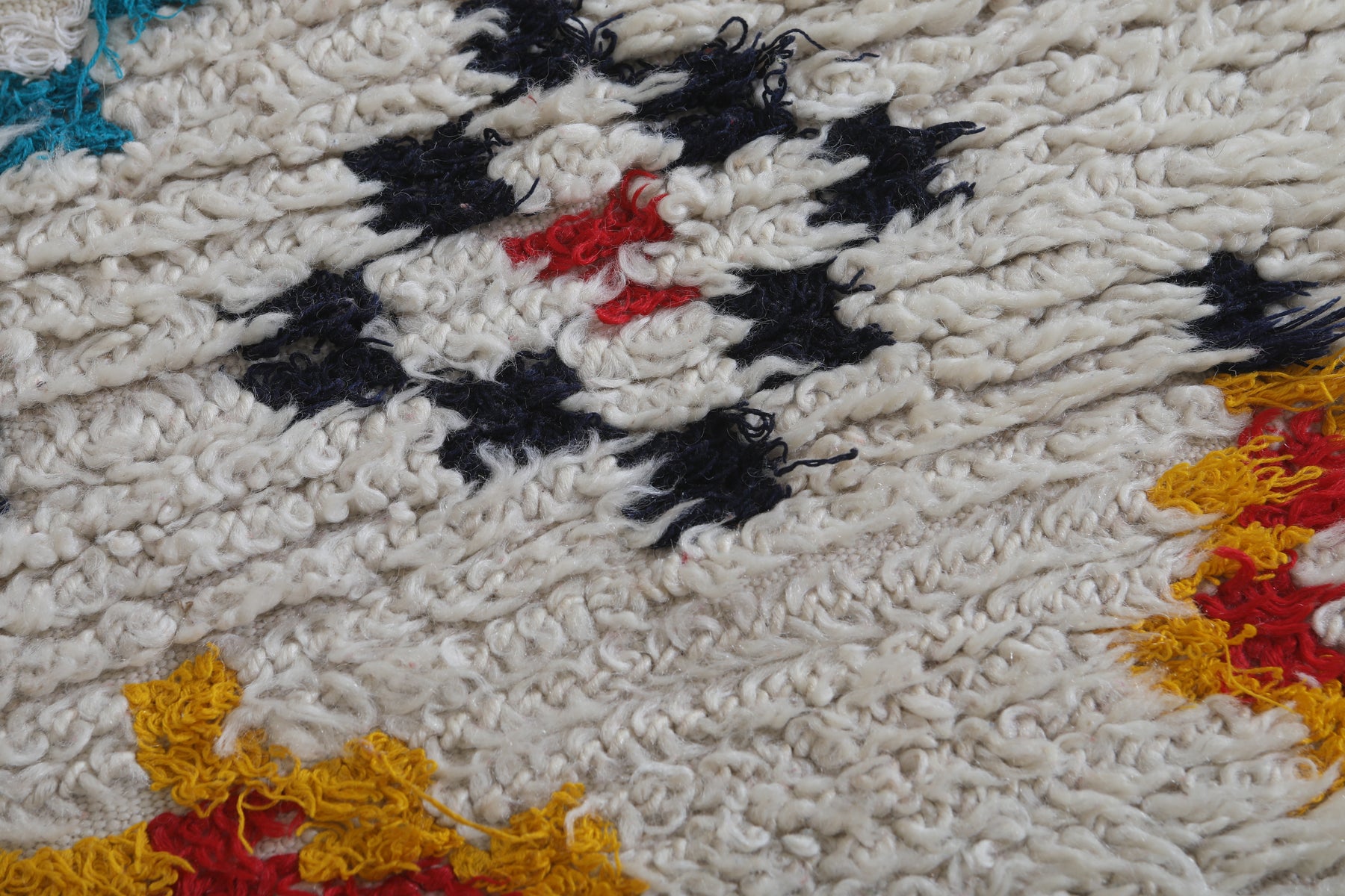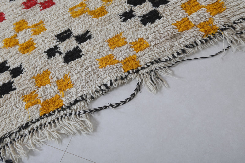 Add warmth and tradition to your space with this exquisite Handwoven Moroccan Berber Rug, measuring 3.5 x 9.2 feet. Showcasing a mesmerizing array of colorful geometric motifs in vibrant hues of yellow, red, blue, and black, this rug blends cultural artistry with modern elegance. The intricate diamond and cross-like patterns stand out against a soft ivory background, creating a lively yet balanced aesthetic. Perfect for hallways, living spaces, or bedrooms, this handcrafted piece embodies authenticity, durability, and timeless style.