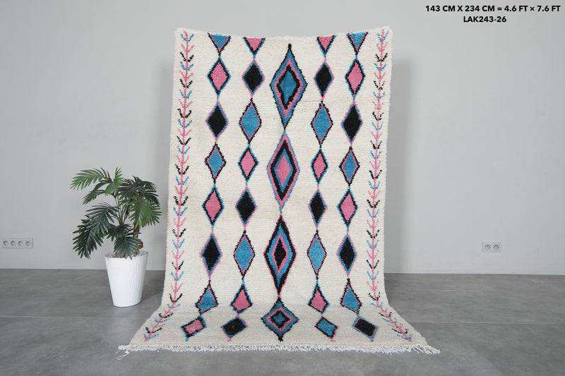 Moroccan Berber Rug - 4.6 x 7.6 ft Handmade Tribal Design