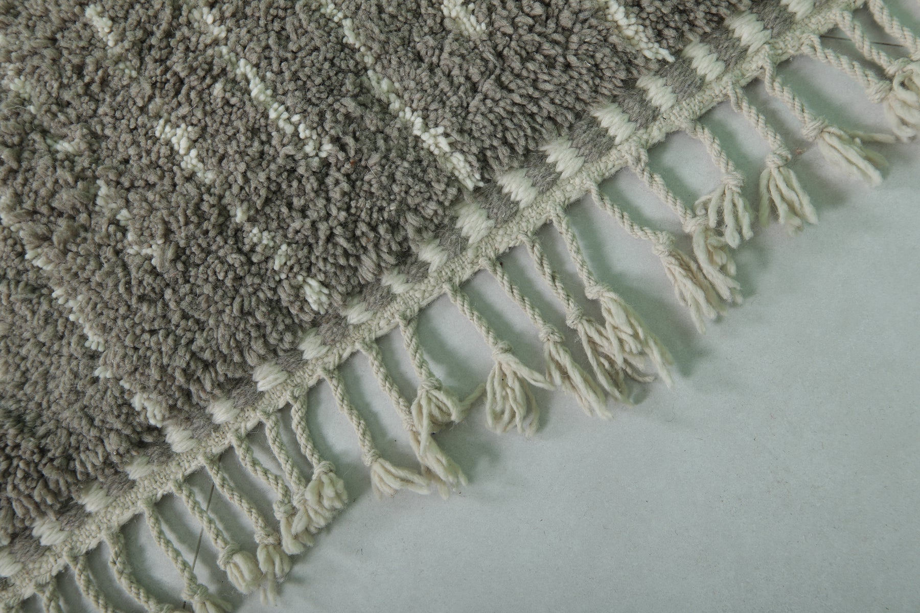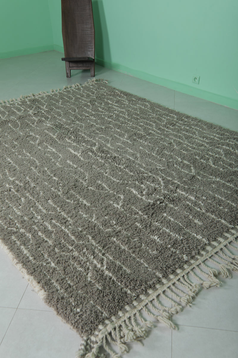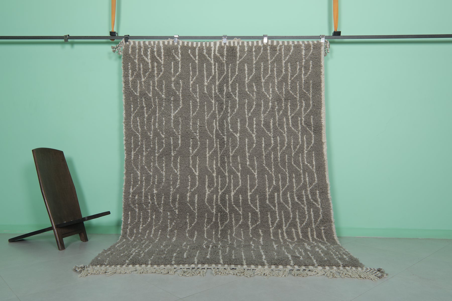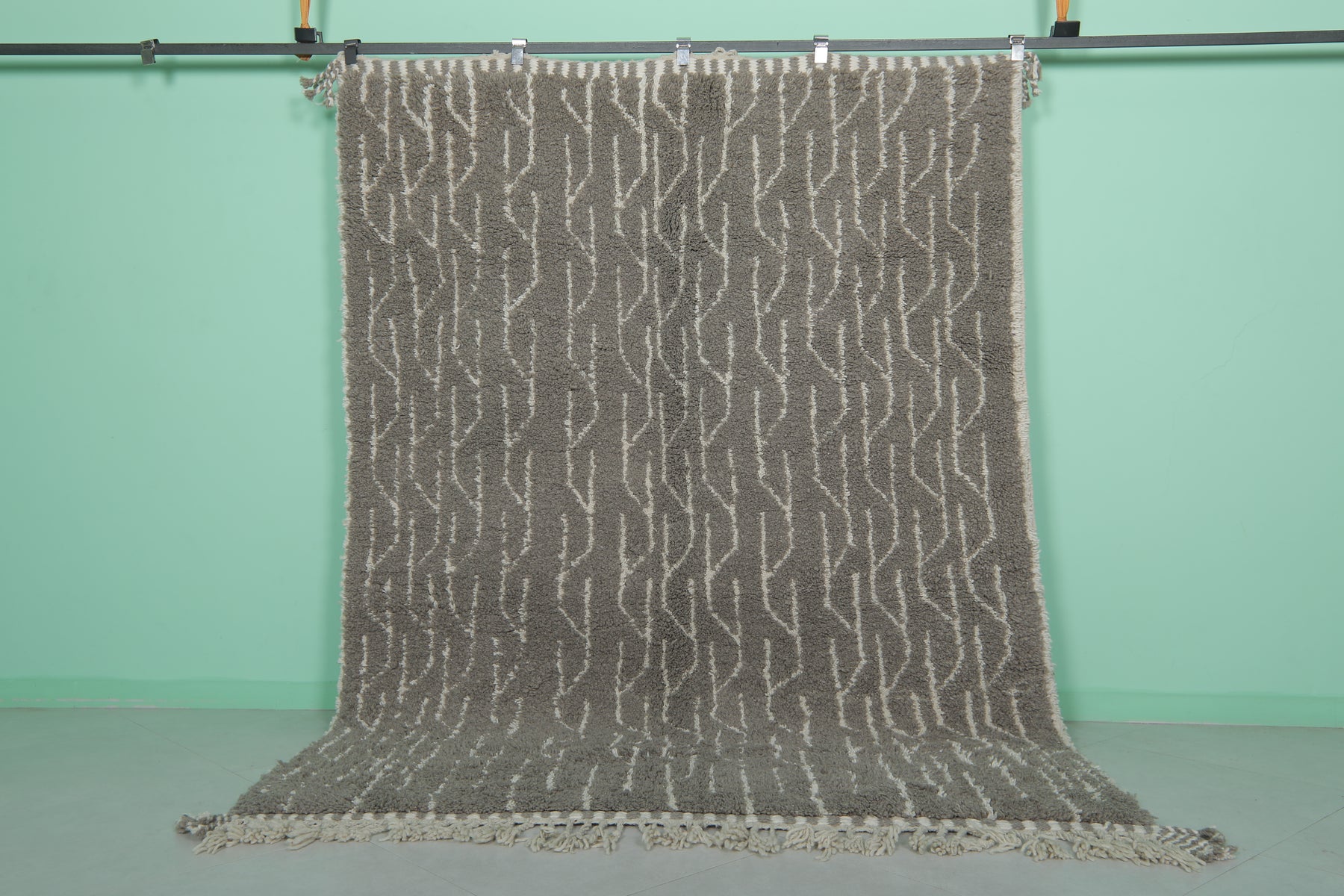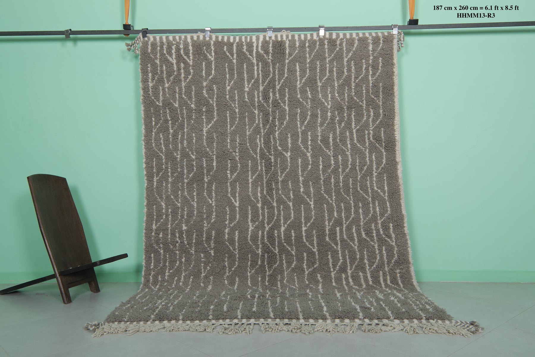 Introduce warmth and texture to your space with this elegant Moroccan Berber Rug, measuring 6.1 x 8.5 feet (187 CM x 260 CM). Handwoven by skilled Berber artisans, this rug features a unique gray tone with intricate white line patterns that exude subtle sophistication. Made from 100% natural wool, it offers exceptional softness, durability, and comfort. Perfect for living rooms, bedrooms, or offices, this versatile rug brings a modern touch to traditional Moroccan craftsmanship.