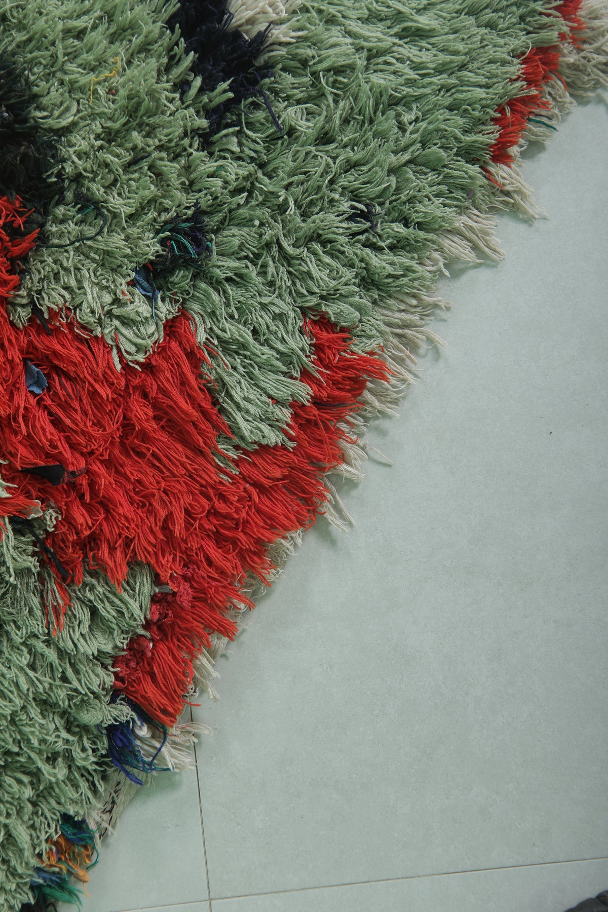 Elevate your interior design with this Moroccan Berber rug, measuring 2.7 x 6 feet. Handwoven by skilled artisans, this unique piece showcases an abstract pattern in rich hues of red, green, blue, and earthy tones. Crafted from high-quality wool, it blends traditional craftsmanship with a contemporary aesthetic, adding warmth and artistic charm to any space. Perfect for living rooms, hallways, or bedrooms.