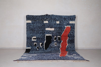 Enhance your space with this striking Moroccan Blue Rug, sized at 7.9 x 10.4 feet (242 CM x 318 CM). Featuring a deep blue base with bold abstract patterns, this hand-knotted wool rug is a true artistic statement.