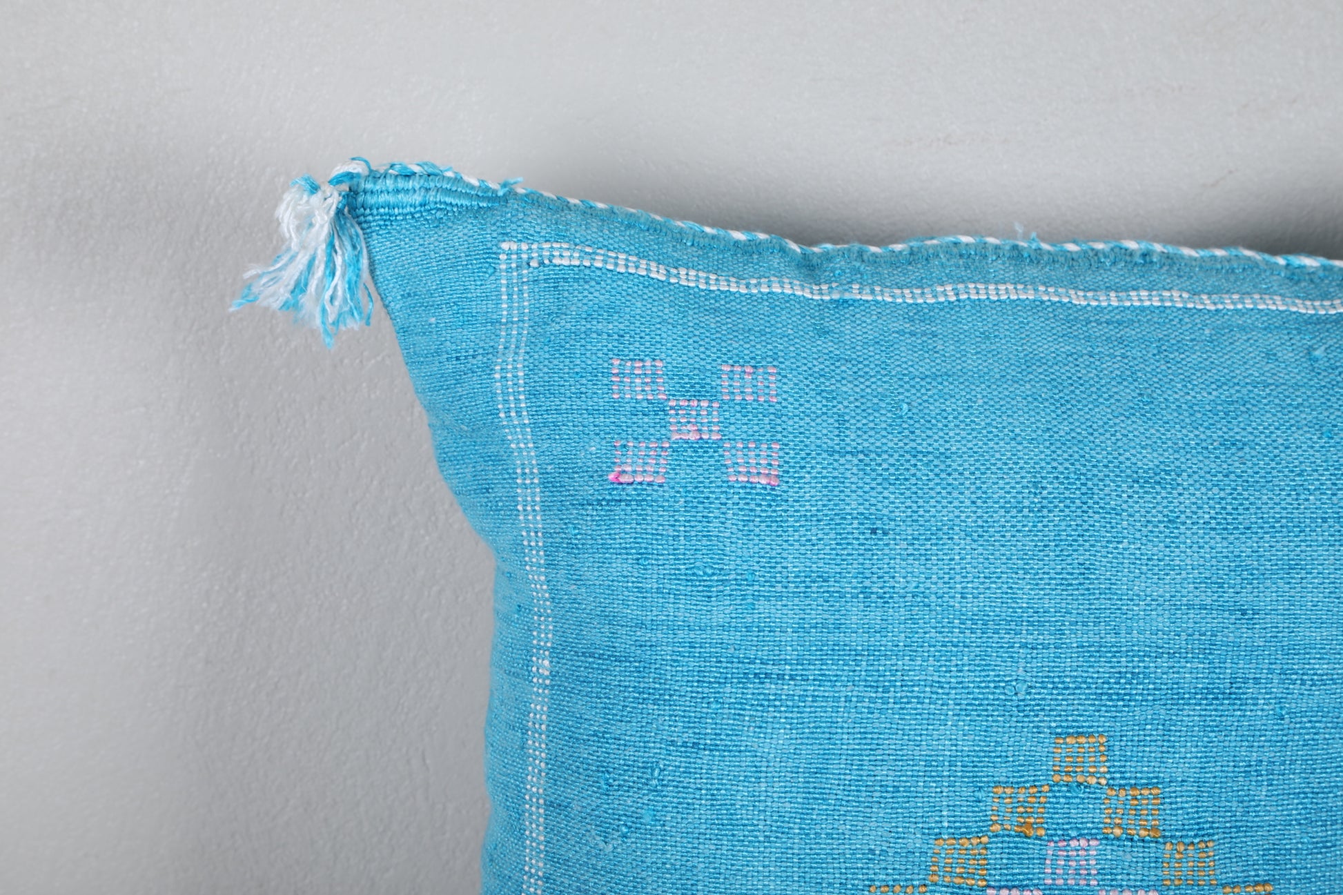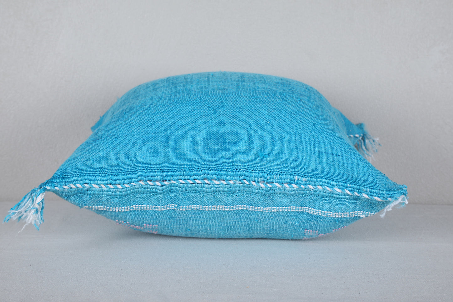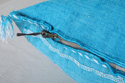 Add a bold pop of color and handcrafted artistry to your home with this handwoven Kilim Moroccan Pillow, sized at 18.5 x 18.5 inches (47 CM x 47 CM). Showcasing bright turquoise hues with delicate Berber embroidery, this pillow blends authentic Moroccan craftsmanship with eye-catching charm. Perfect for accenting your sofa, bed, or favorite reading nook, it brings a fresh global touch to any space.