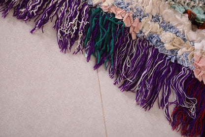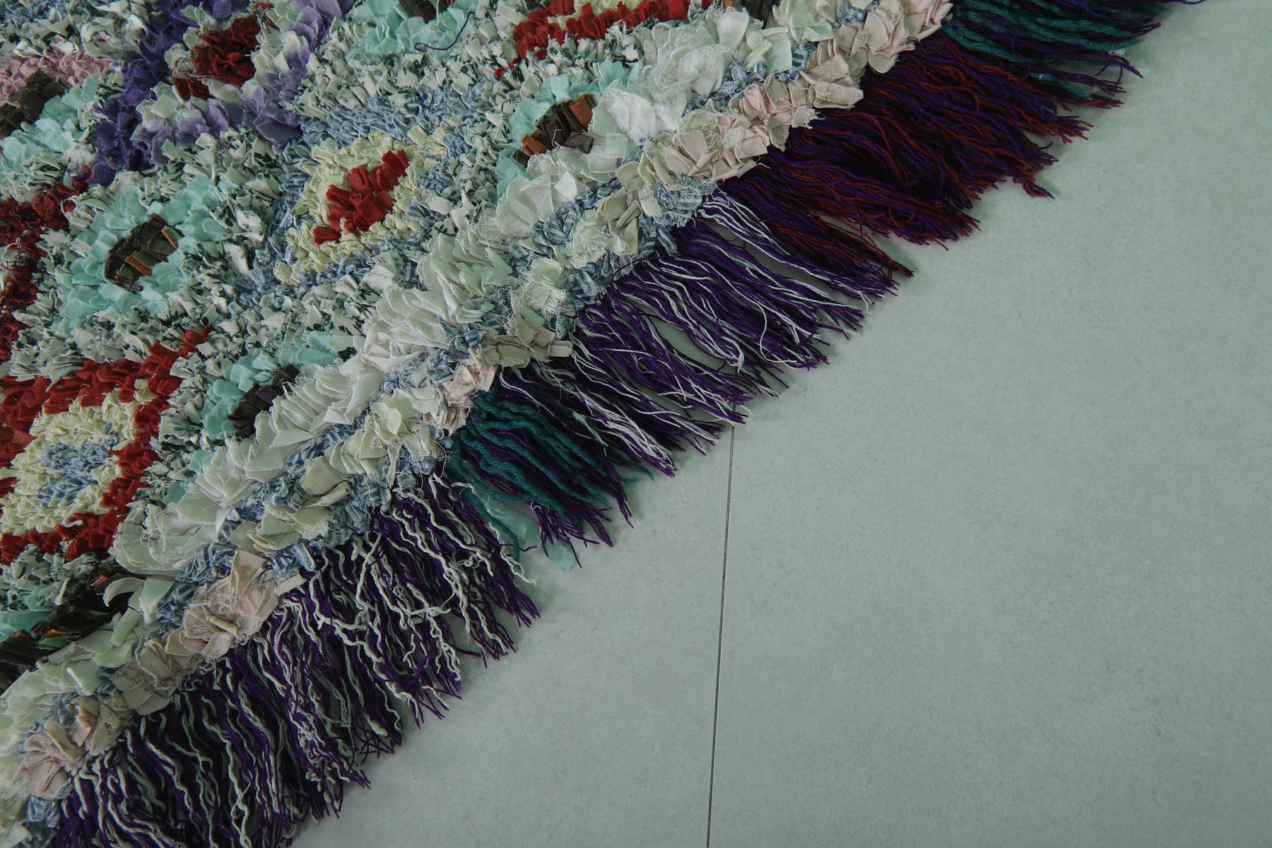The Dimensions of this Moroccan Boucherouite rug does not include tassels.
