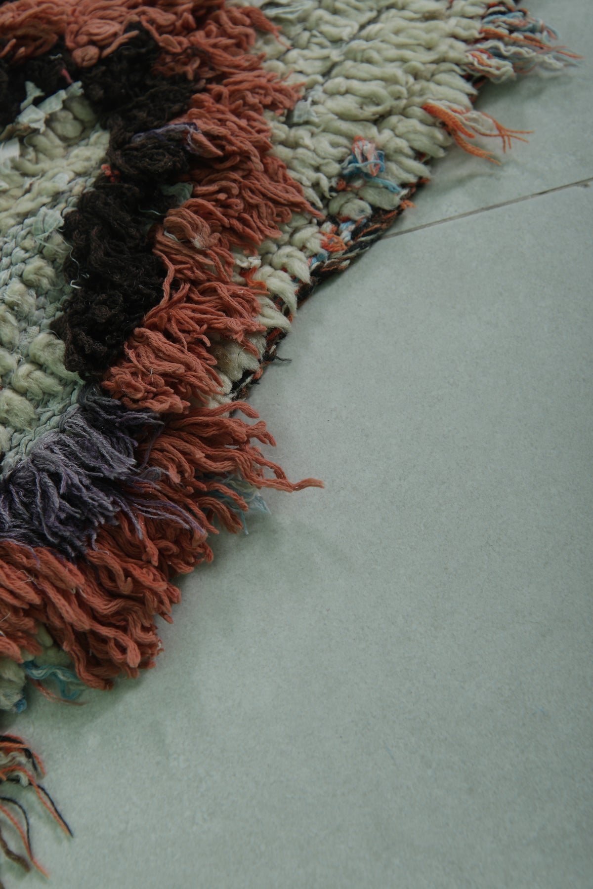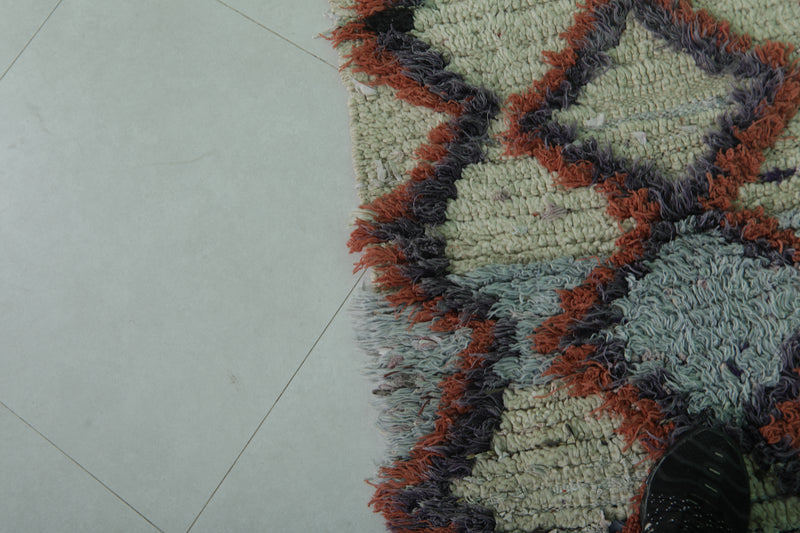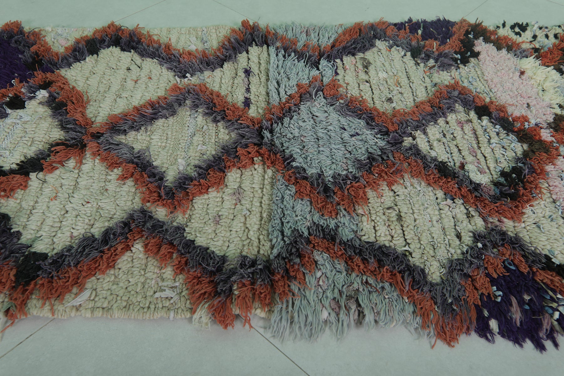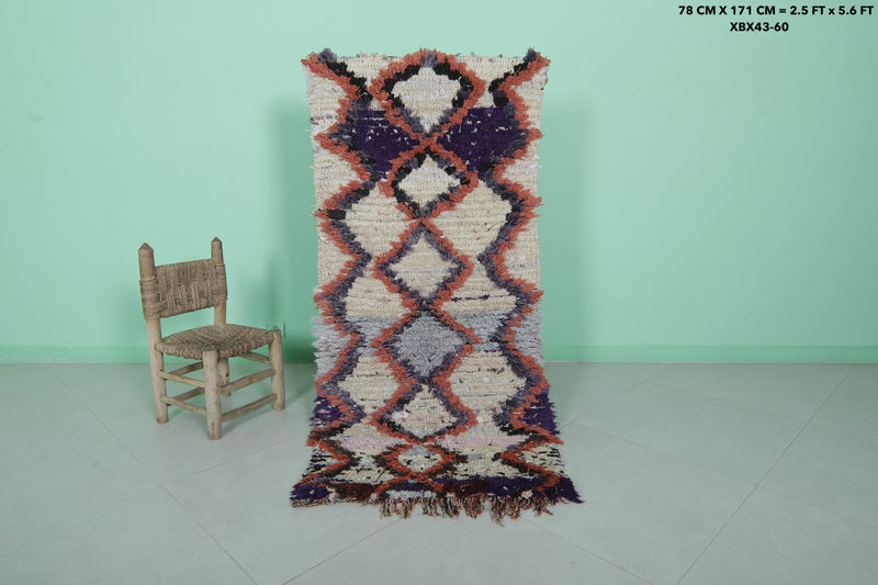 Elevate your space with this exquisite Moroccan Boucherouite rug, measuring 2.5 x 5.6 FT. Handwoven with vibrant geometric patterns and soft textures, this unique piece blends traditional artistry with modern appeal. Perfect as a centerpiece in your living room, hallway, or bedroom, it offers durability and charm. Crafted using recycled fabrics, it is eco-friendly and one of a kind.