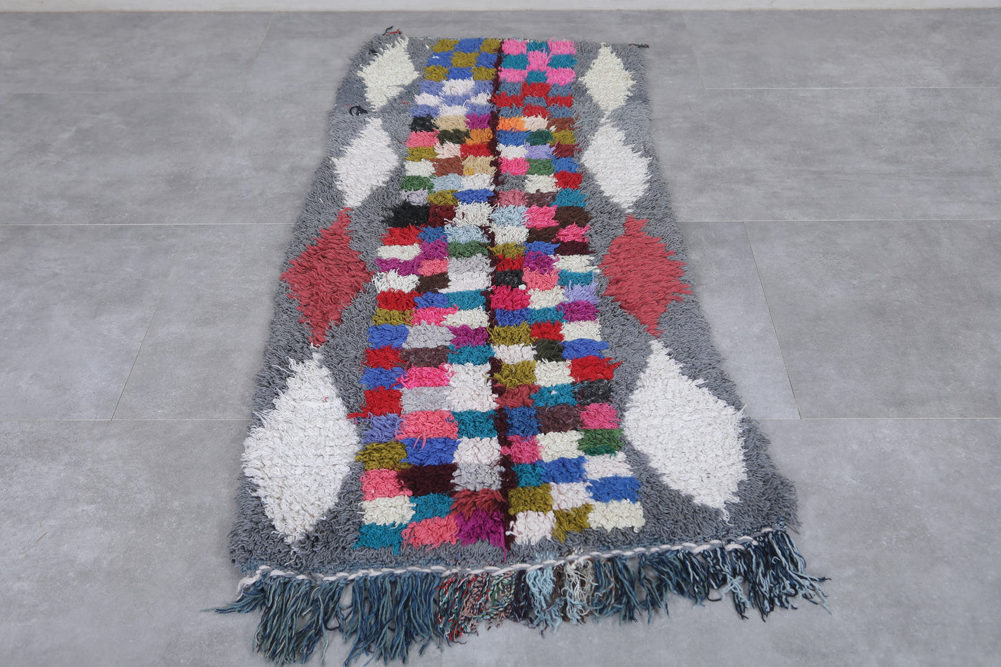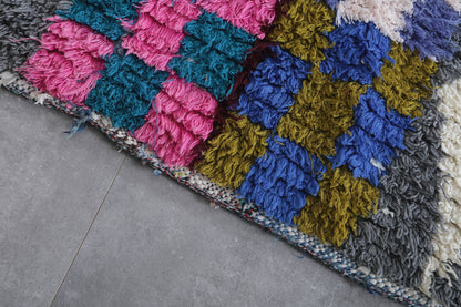 Moroccan Boucherouite Runner Rug 2.5 x 5.9 Feet - Handmade Checkered Design - Boucherouite rug