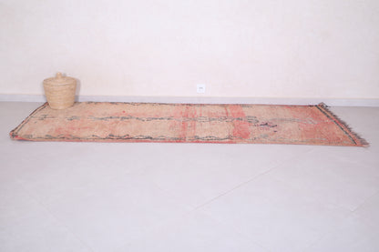 Add a touch of timeless elegance to your home with this Moroccan Hallway Rug, sized at 3.2 x 9.1 feet. This handmade vintage runner features a subtle tribal motif with a faded peach and earthy beige color palette, creating a vintage, rustic appeal. Perfect for hallways, entryways, or narrow spaces, its elongated design fits seamlessly into your home decor. Made from high-quality wool, this rug is soft, durable, and designed to last.
