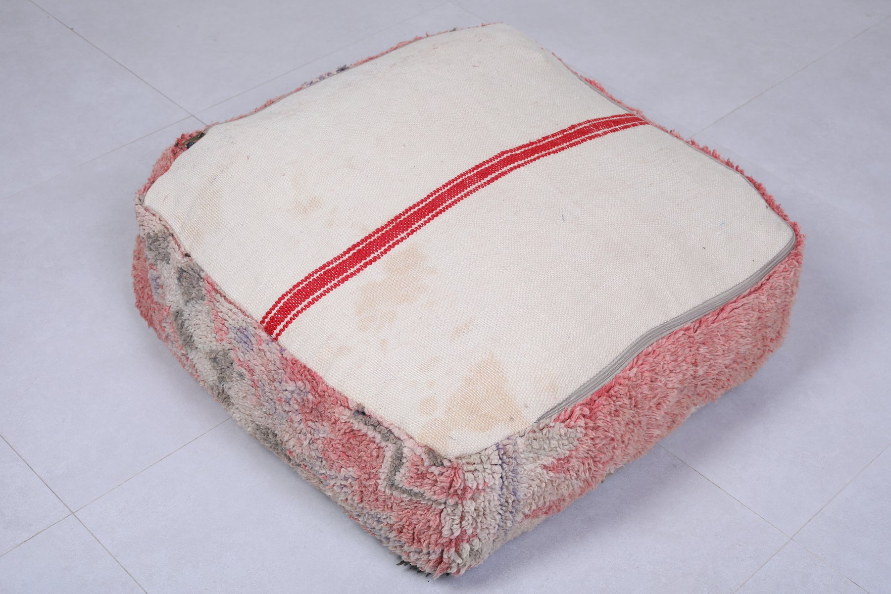 This Handmade Berber ottoman rug pouf is made by a Very Old Moroccan rug.